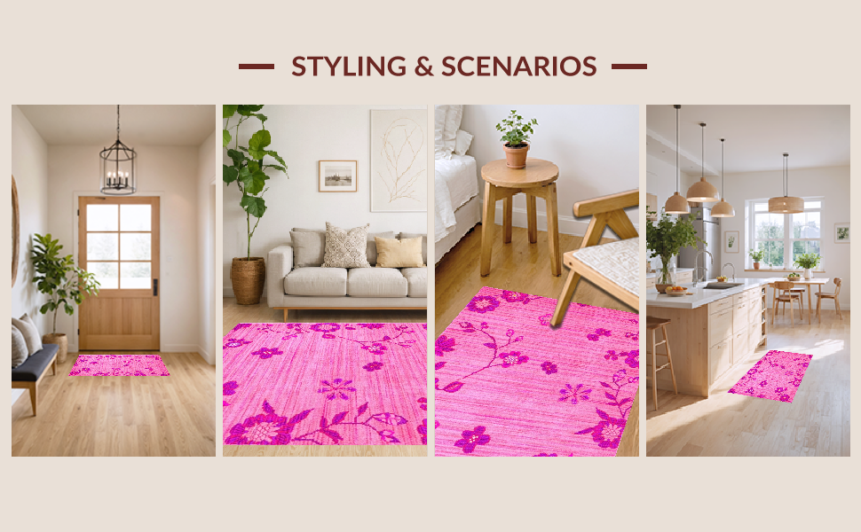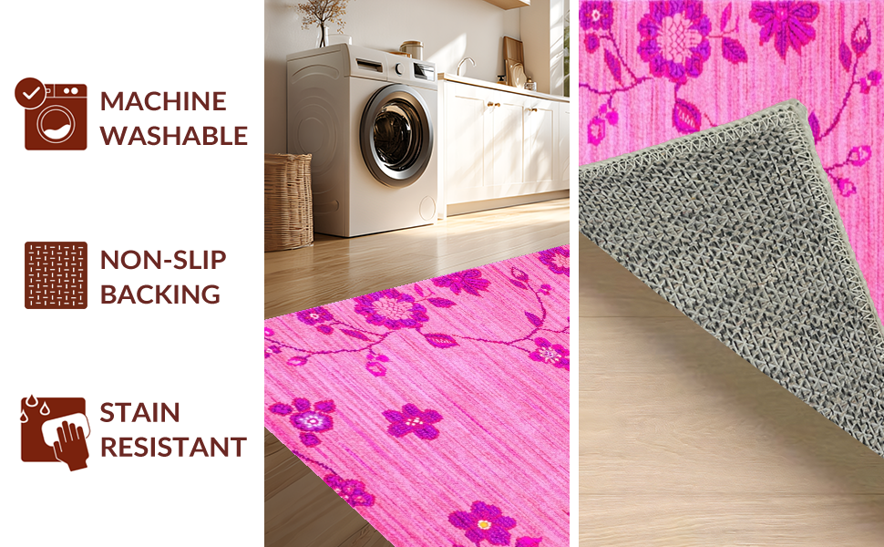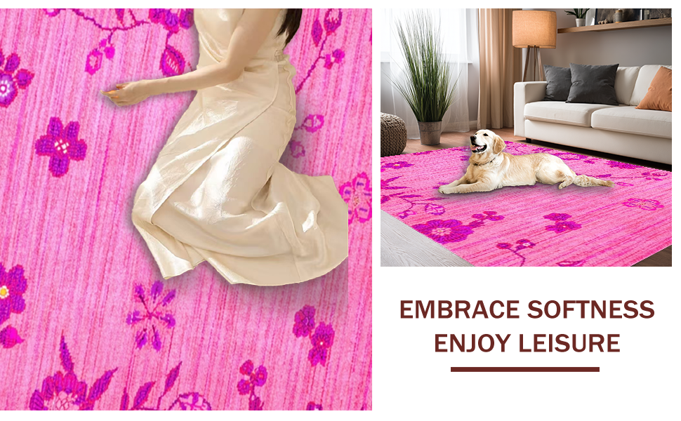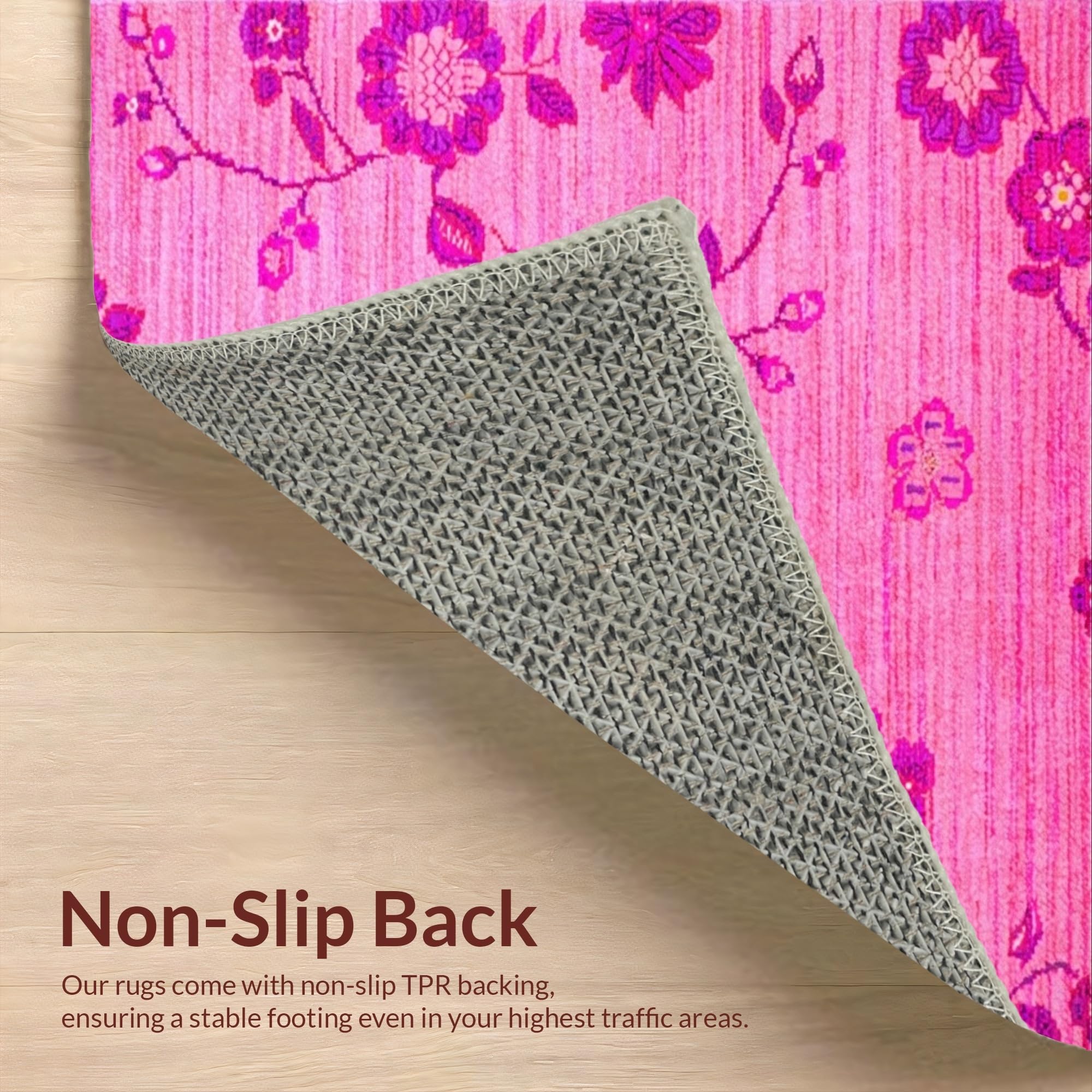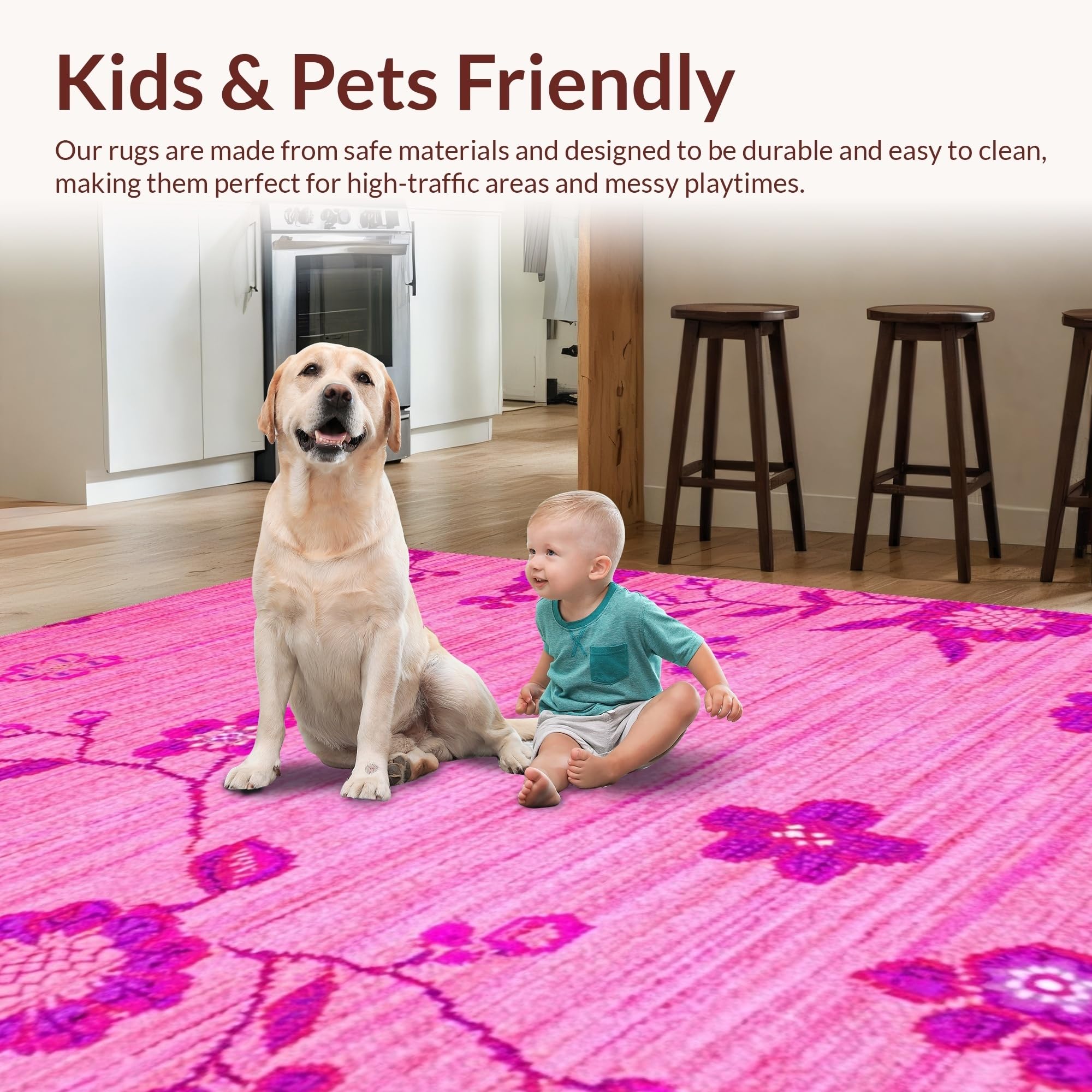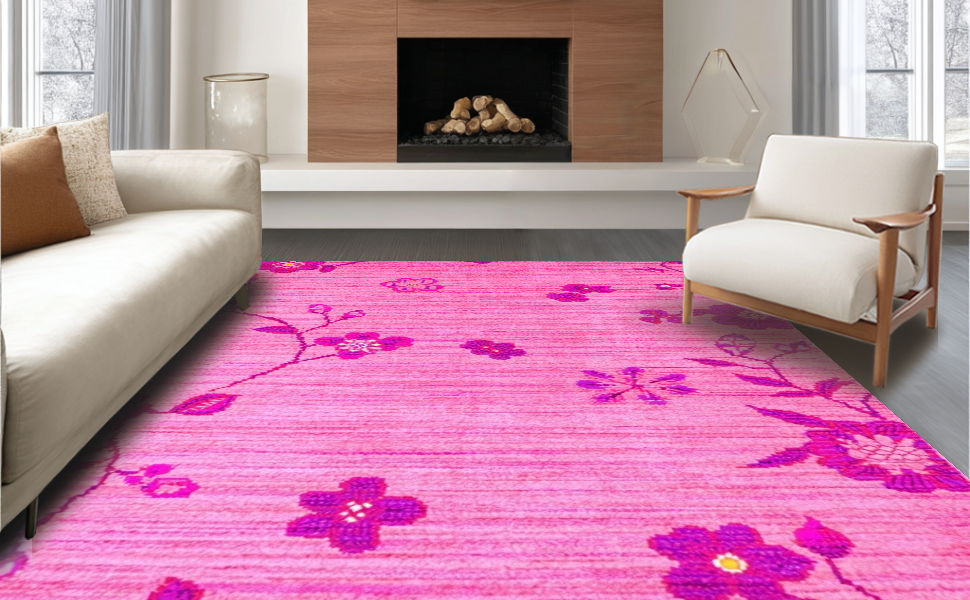 Ultra Soft Area Rug, Non Slip, Stain Resistant, Washable Area Rugs for Living Room, Bedroom, Delightful Fun Blossom Composition(Pink) Overview: