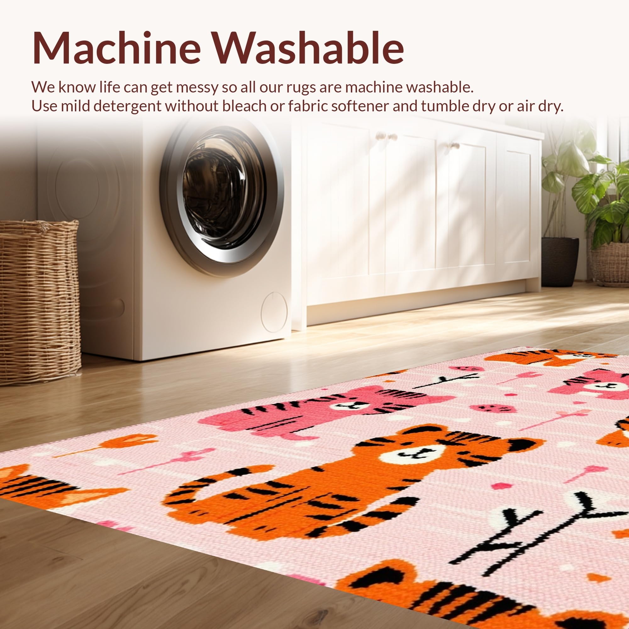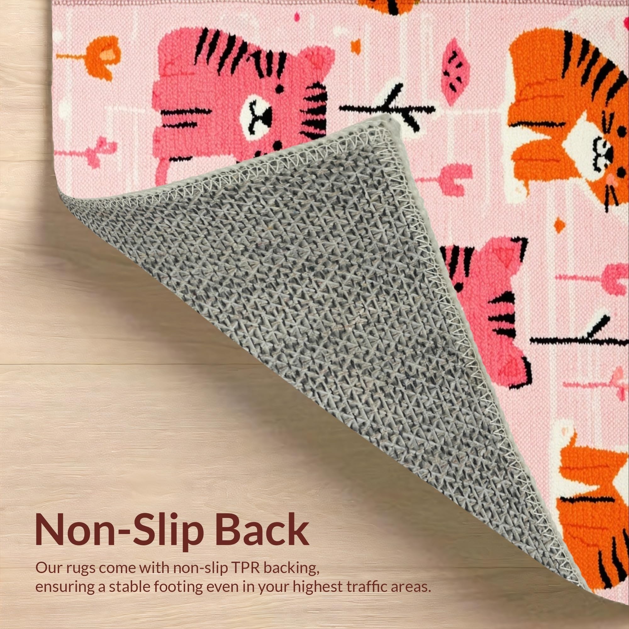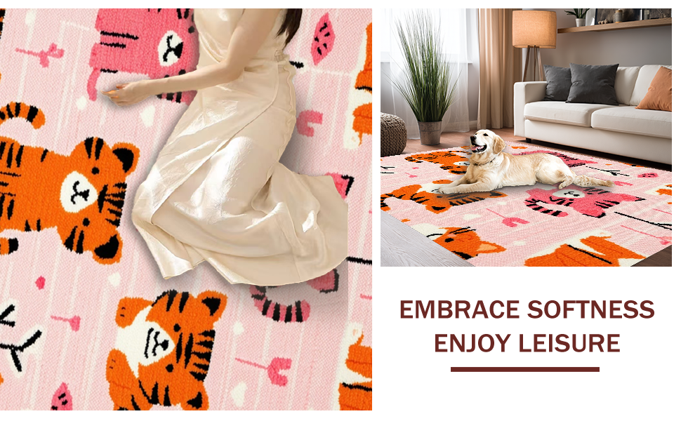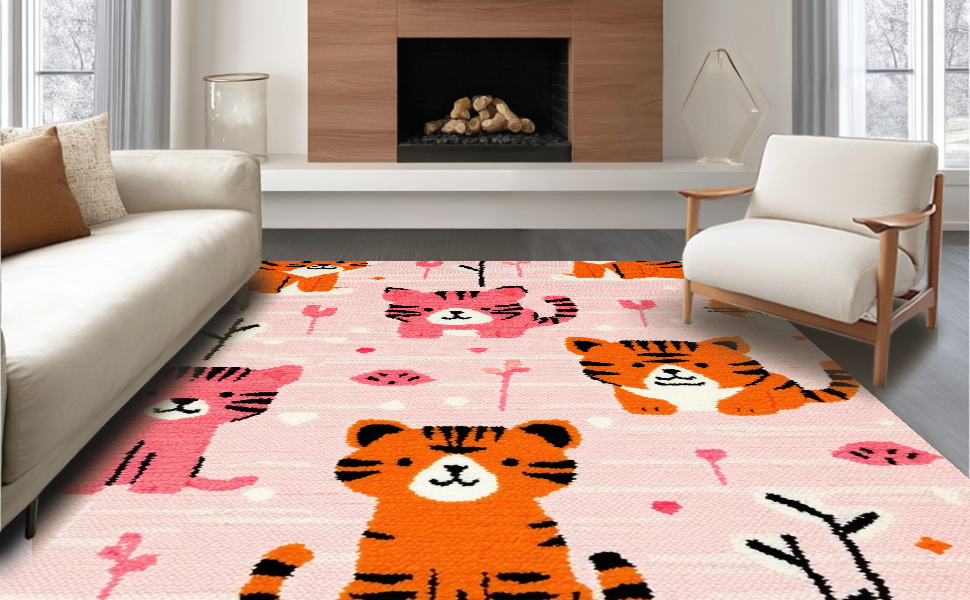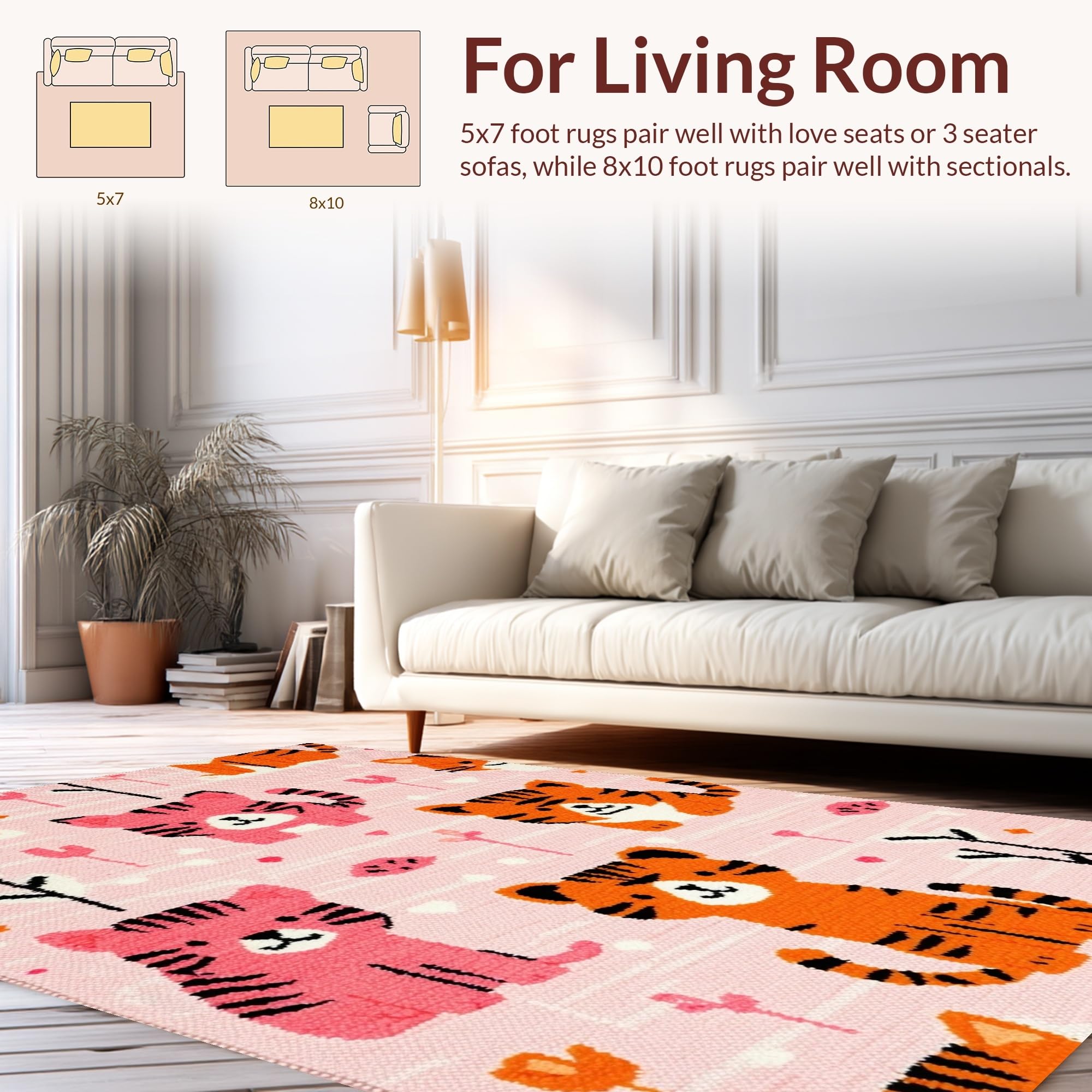 Ultra Soft Area Rug, Non Slip, Stain Resistant, Washable Area Rugs for Living Room, Bedroom, Delightful Kawaii Tiger Visual Appeal(Pink) Overview: