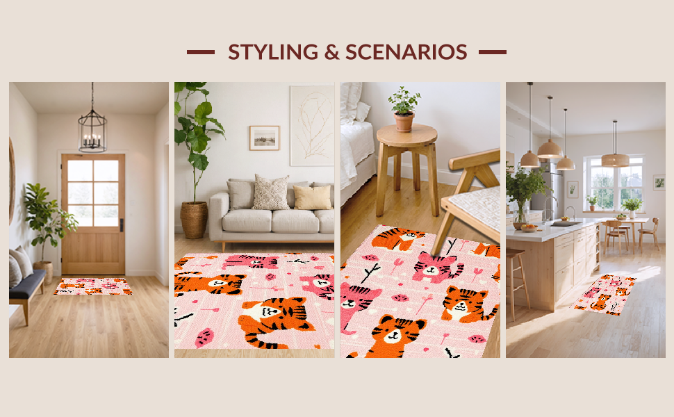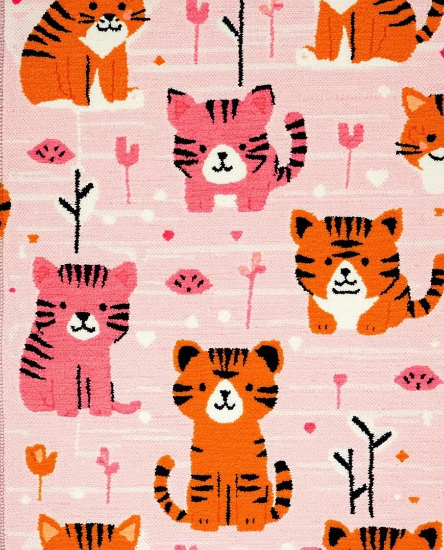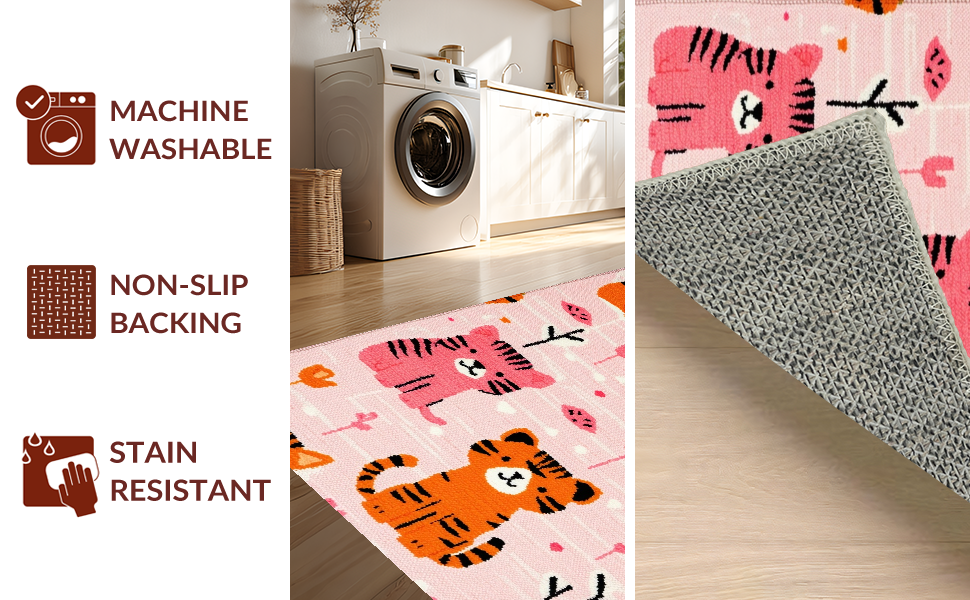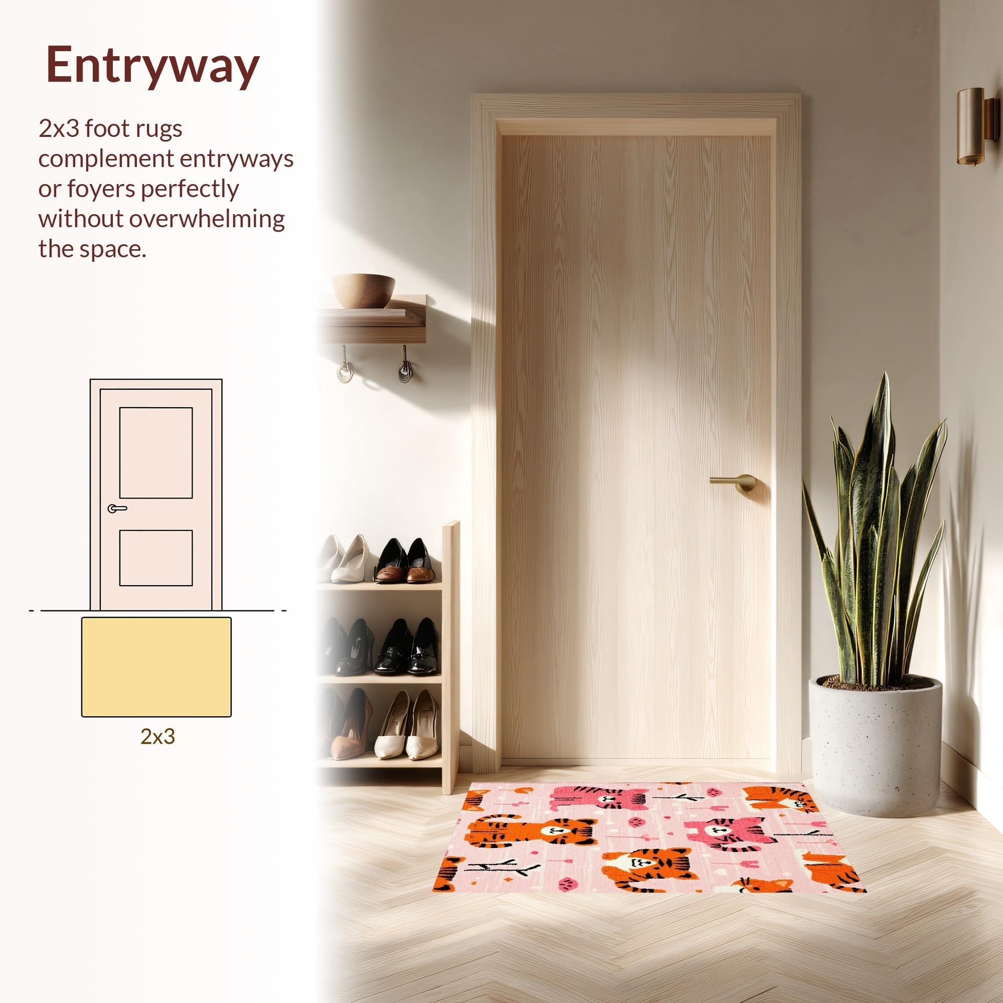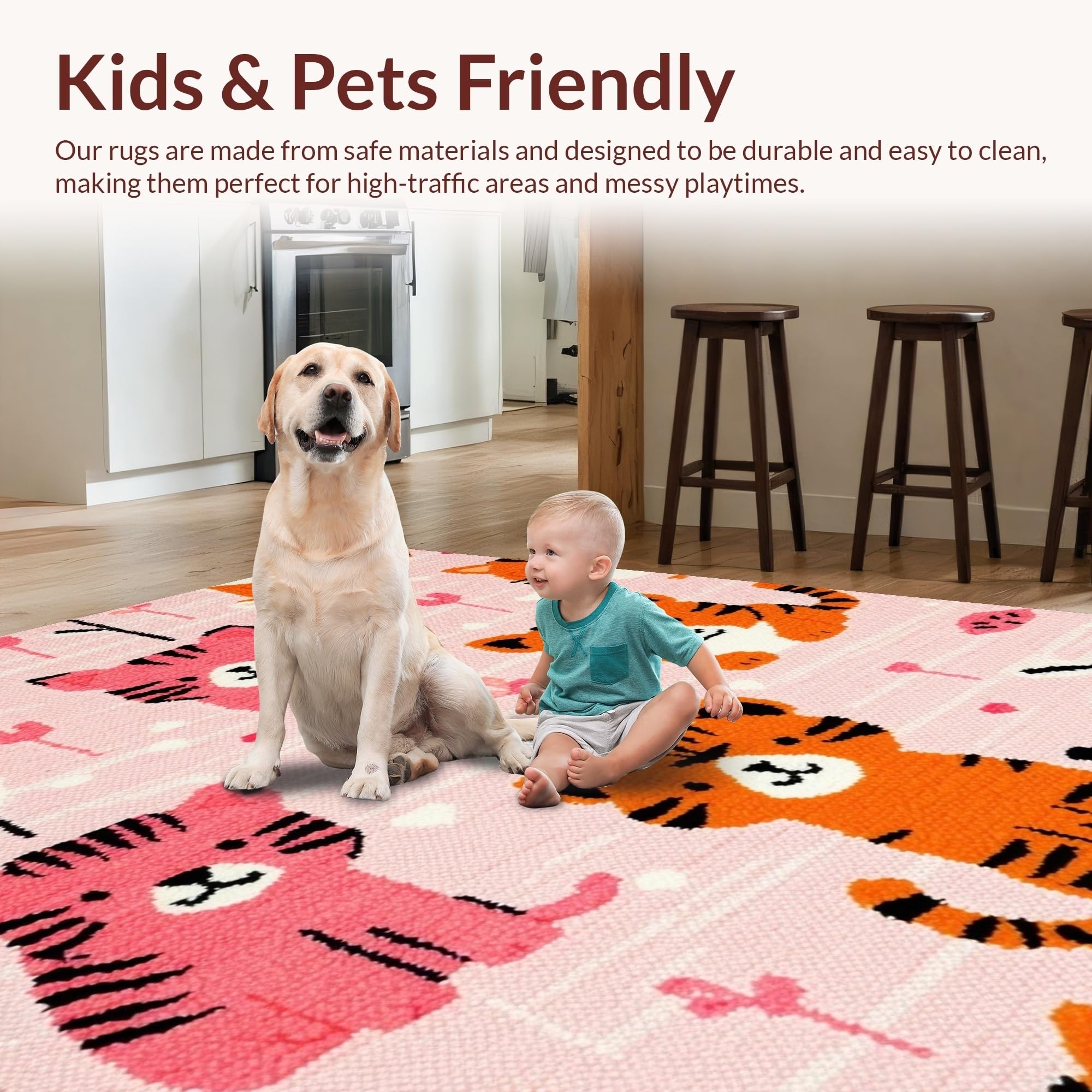 Ultra Soft Area Rug, Non Slip, Stain Resistant, Washable Area Rugs for Living Room, Bedroom, Delightful Kawaii Tiger Visual Appeal(Pink) Overview: