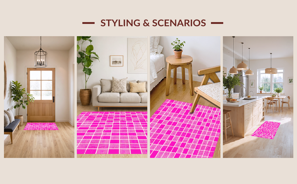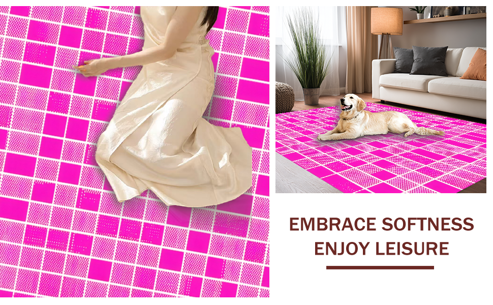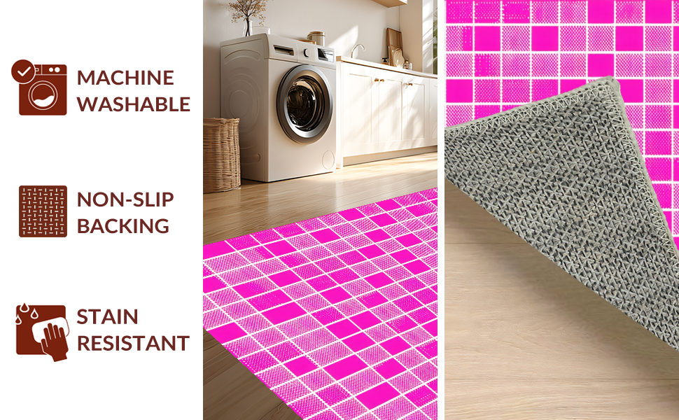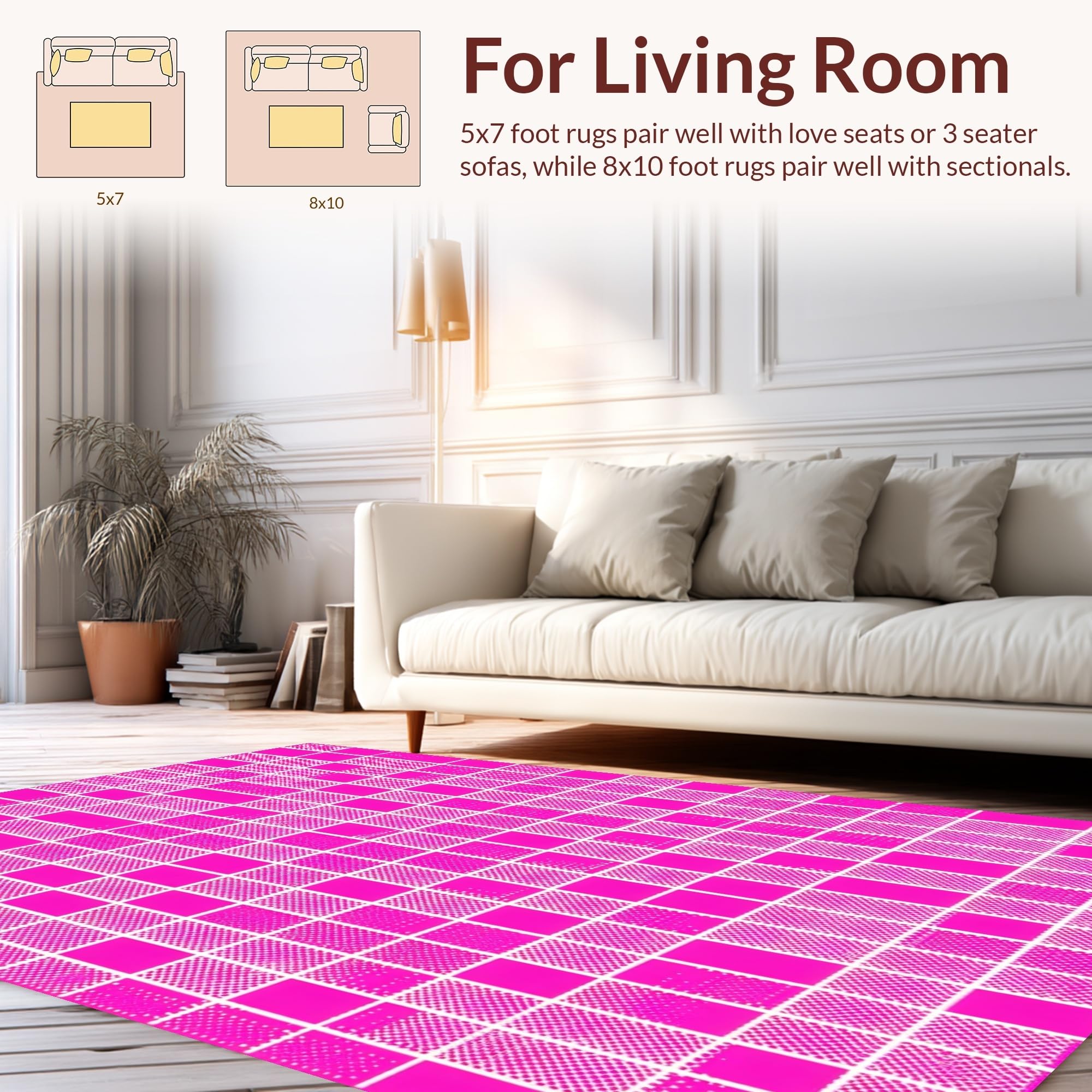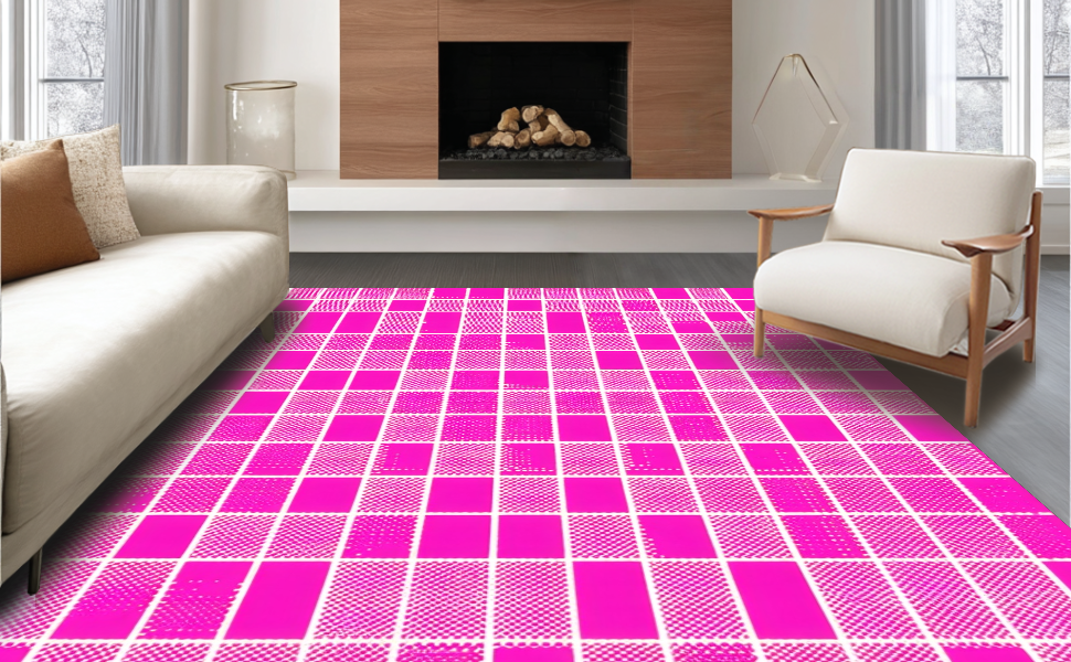 Ultra Soft Area Rug, Non Slip, Stain Resistant, Washable Area Rugs for Living Room, Bedroom, Delightful Modern Pattern Fusion(Pink) Overview: