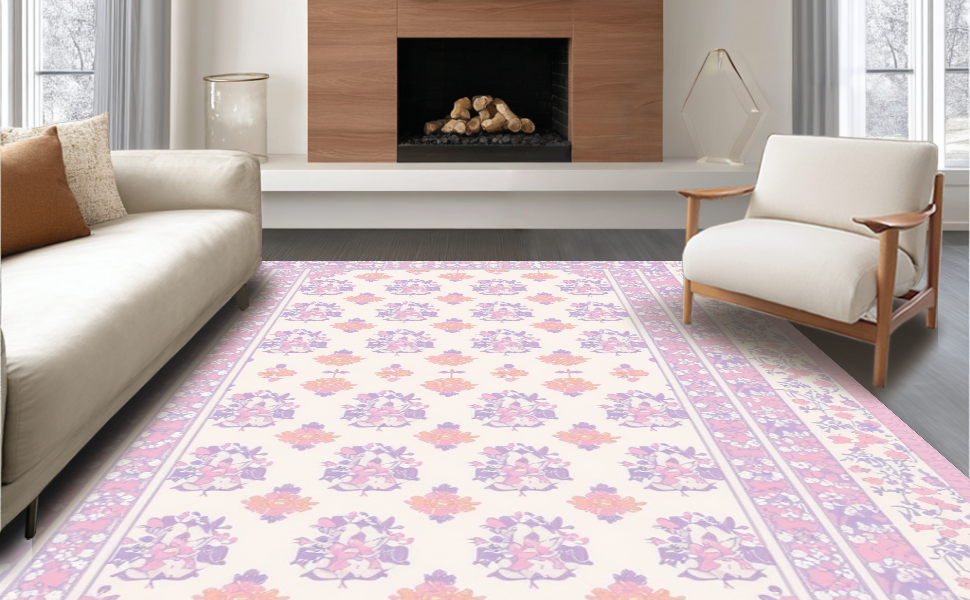 Ultra Soft Area Rug, Non Slip, Stain Resistant, Washable Area Rugs for Living Room, Bedroom, Delightful Nature Inspired Decor(Ivory) Overview: