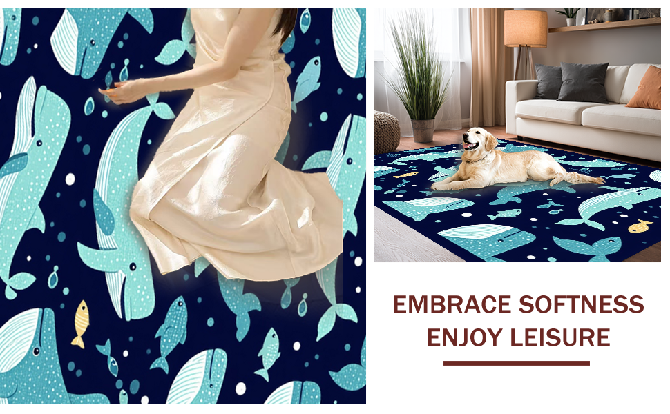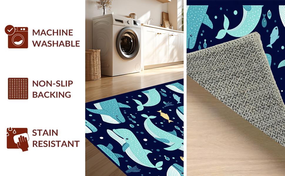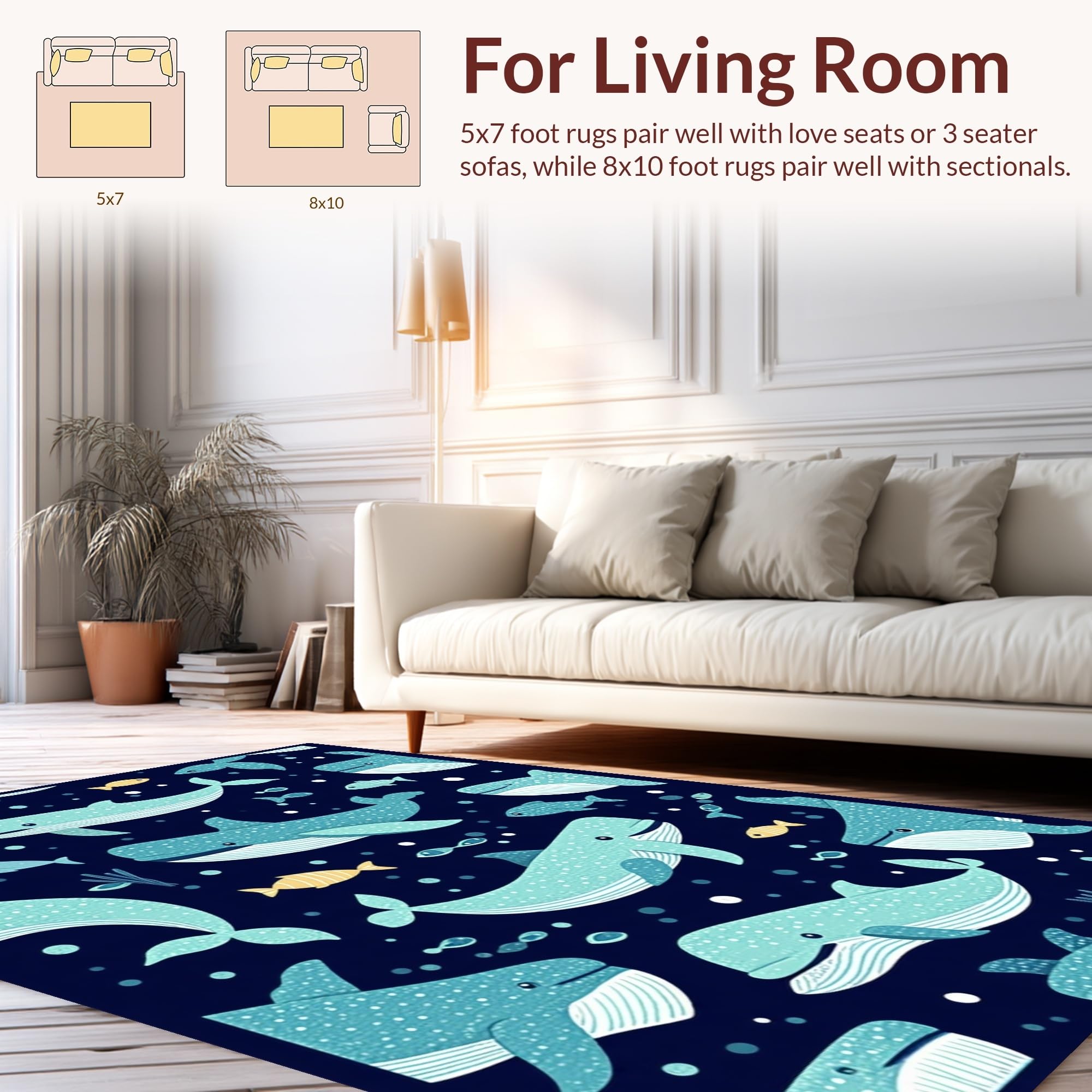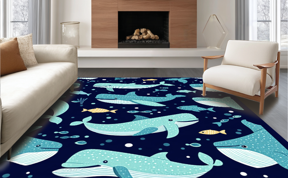 Ultra Soft Area Rug, Non Slip, Stain Resistant, Washable Area Rugs for Living Room, Bedroom, Delightful Oceanic Alphabetic Composition(Blue) Overview: