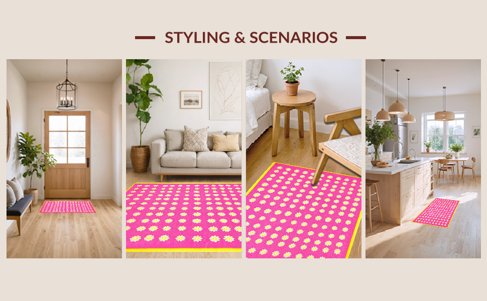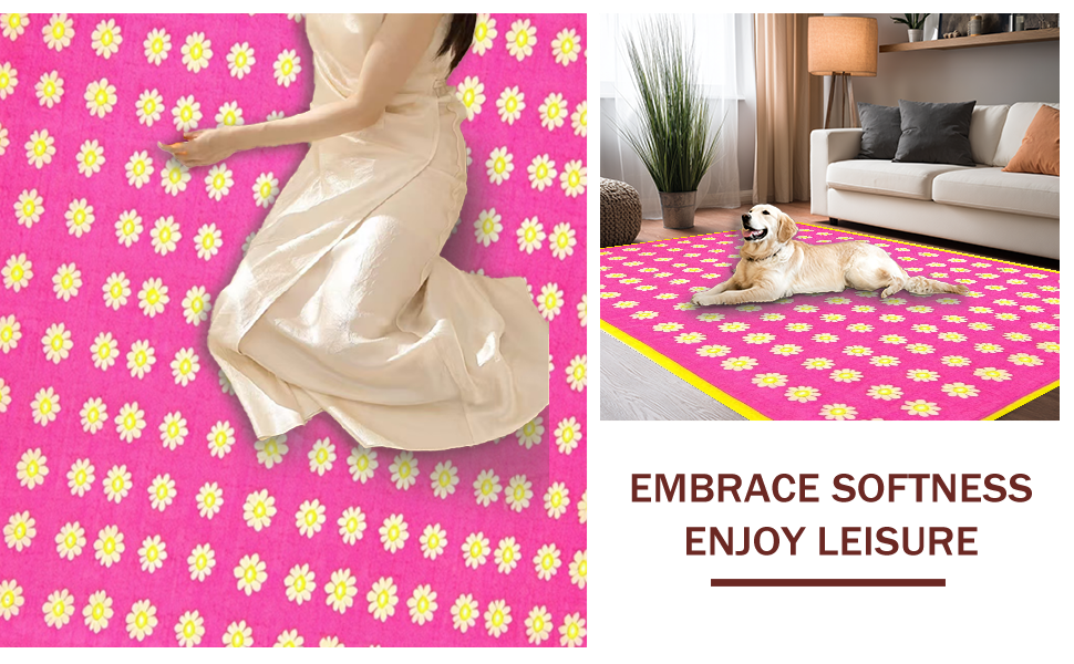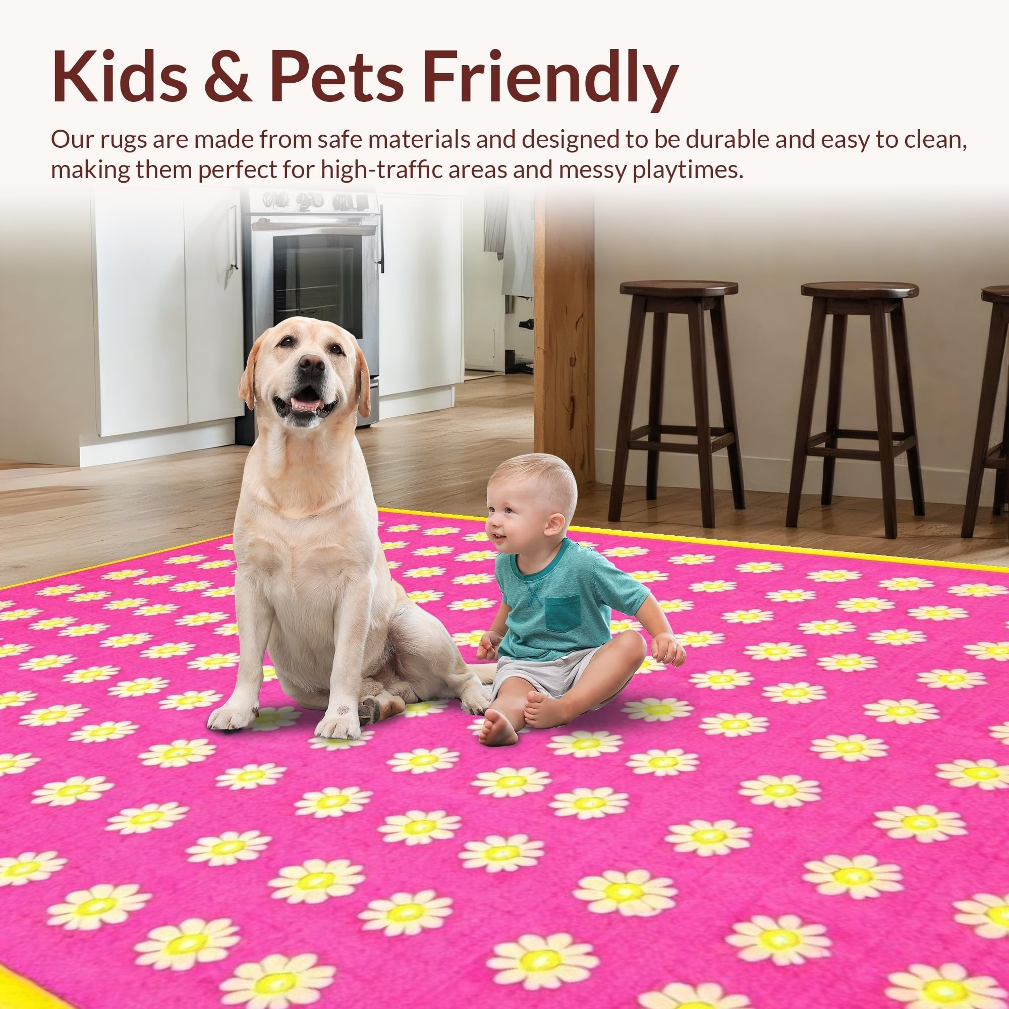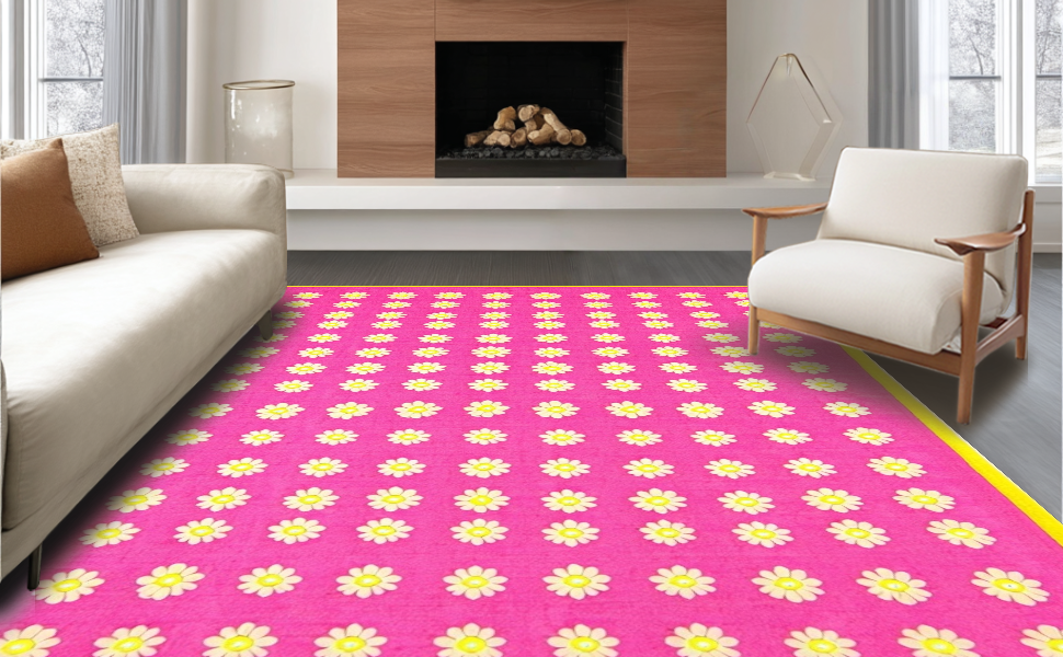 Ultra Soft Area Rug, Non Slip, Stain Resistant, Washable Area Rugs for Living Room, Bedroom, Delightful Pink and Yellow Palette(Pink) Overview: