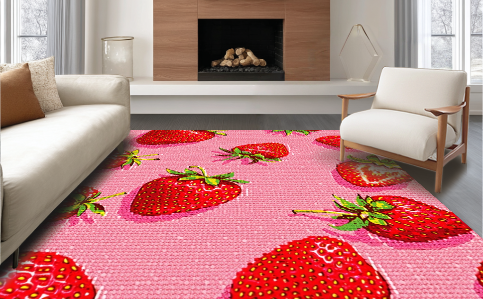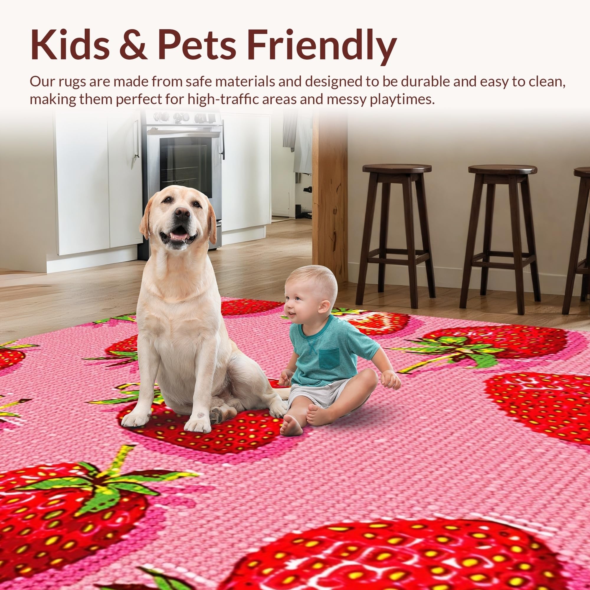 Ultra Soft Area Rug, Non Slip, Stain Resistant, Washable Area Rugs for Living Room, Bedroom, Delightful Pink Whimsy Design(Pink) Overview: