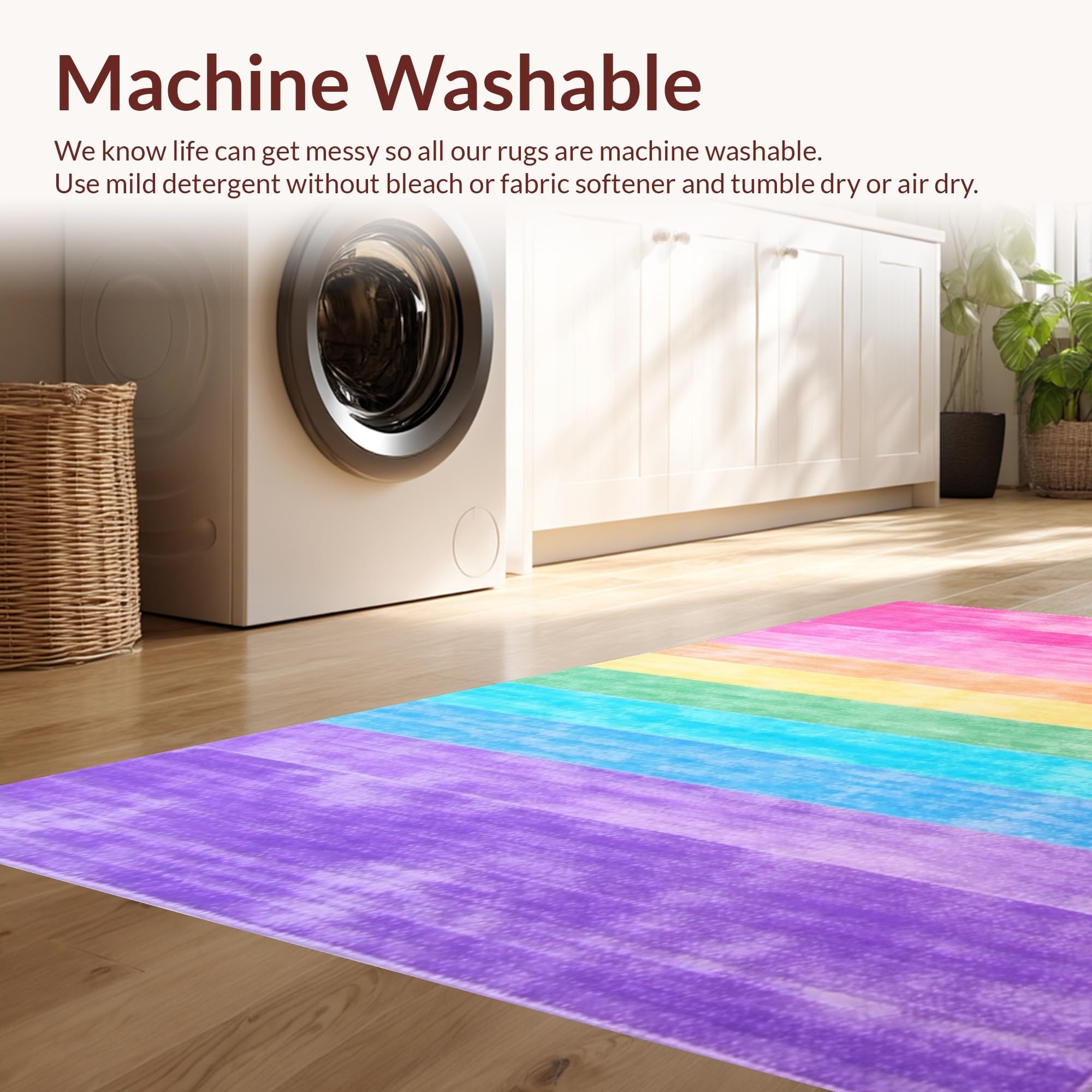- Machine Washable: Our rugs can be easily thrown in the wash machine.