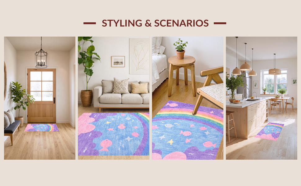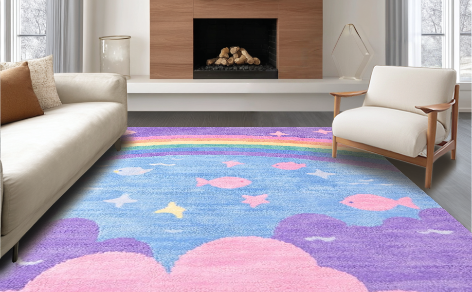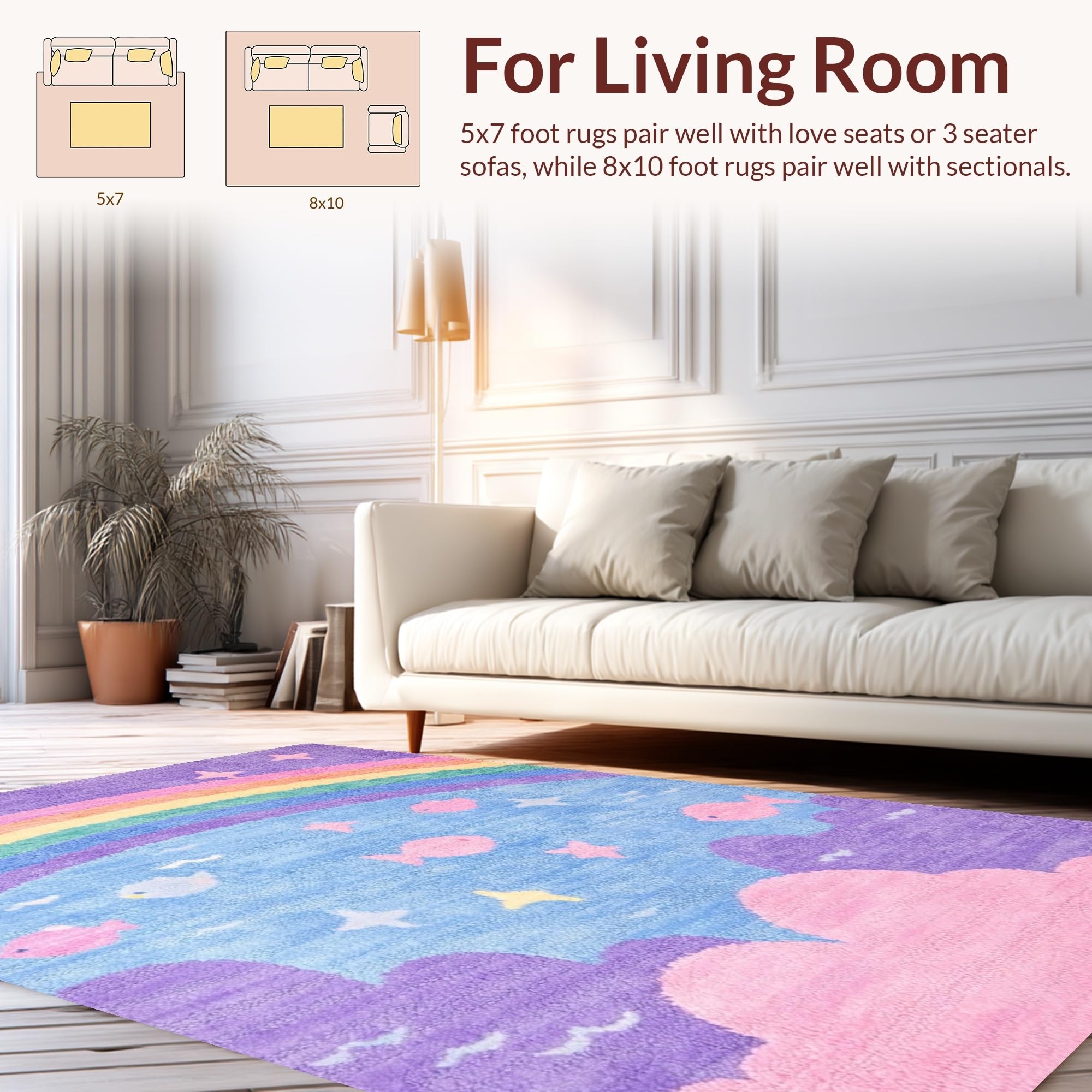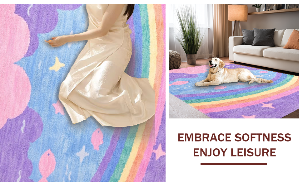 Ultra Soft Area Rug, Non Slip, Stain Resistant, Washable Area Rugs for Living Room, Bedroom, Delightful Plush Colorful Waves(Purple) Overview: