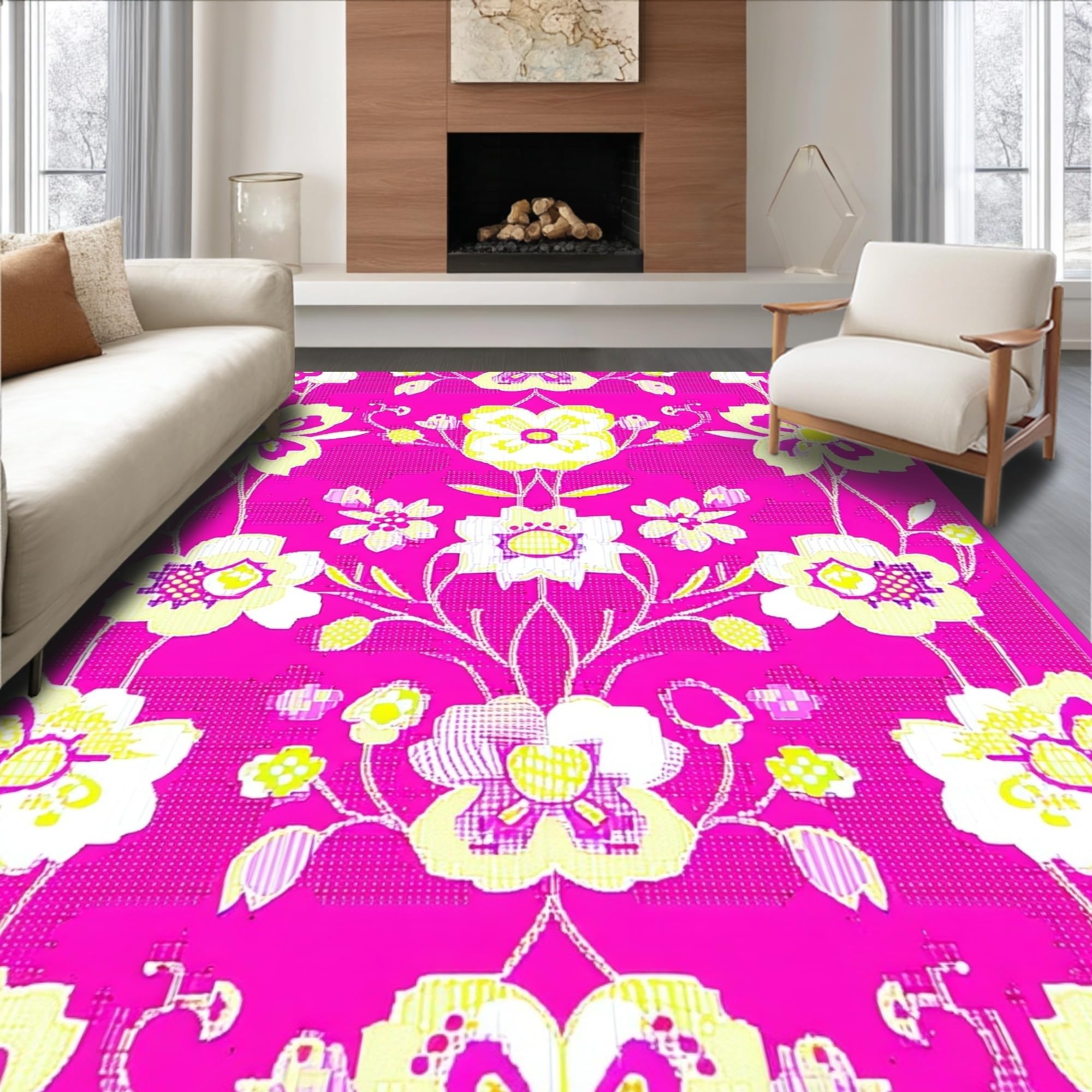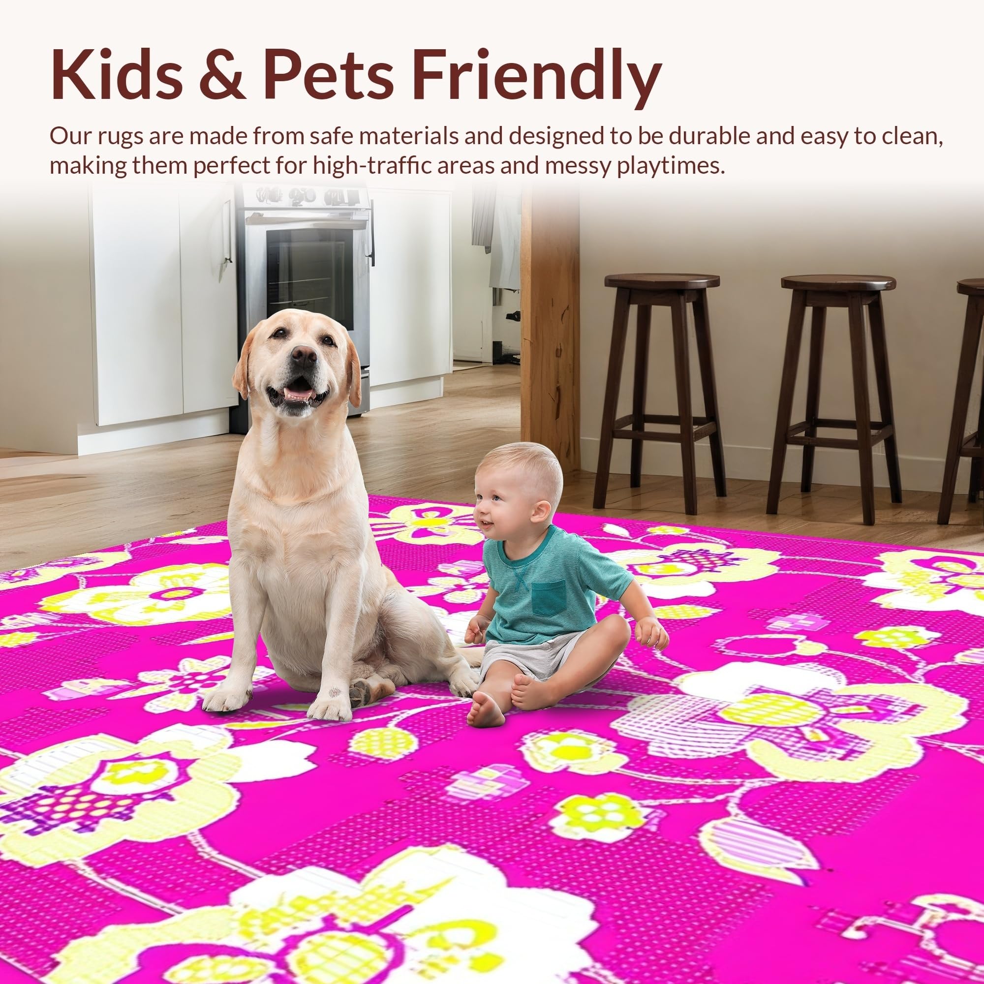 Ultra Soft Area Rug, Non Slip, Stain Resistant, Washable Area Rugs for Living Room, Bedroom, Delightful Round Plush Pastel Charm(Pink) Overview: