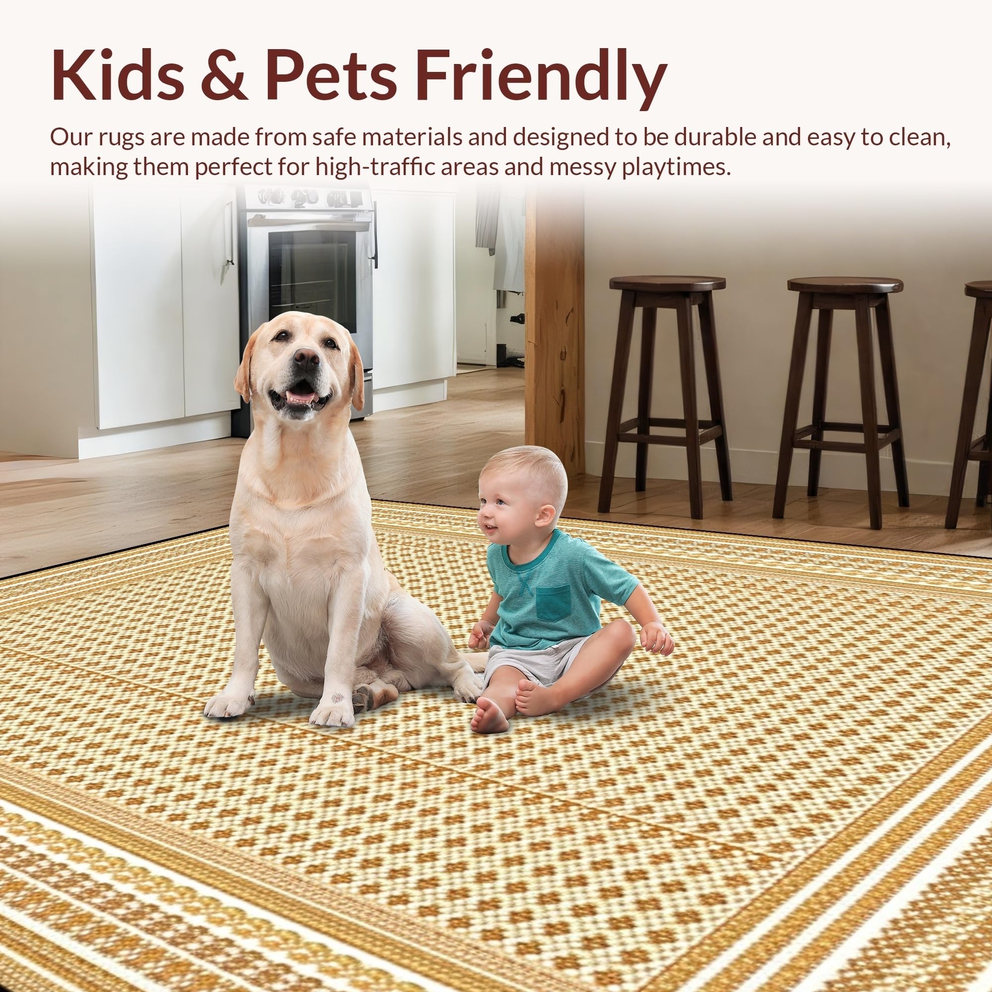 Ultra Soft Area Rug, Non Slip, Stain Resistant, Washable Area Rugs for Living Room, Bedroom, Delightful Rustic Cookie Theme(Beige) Overview: