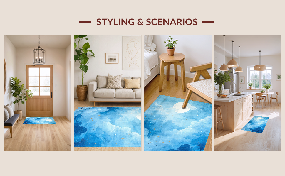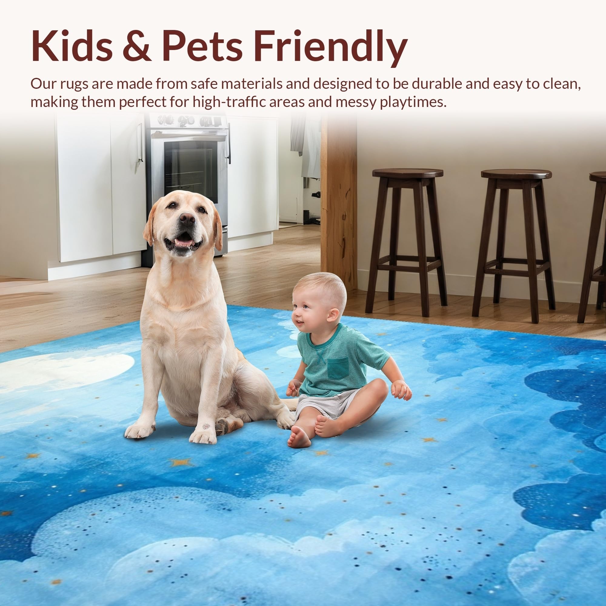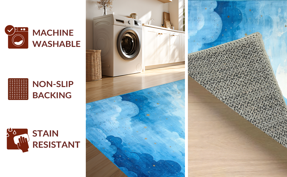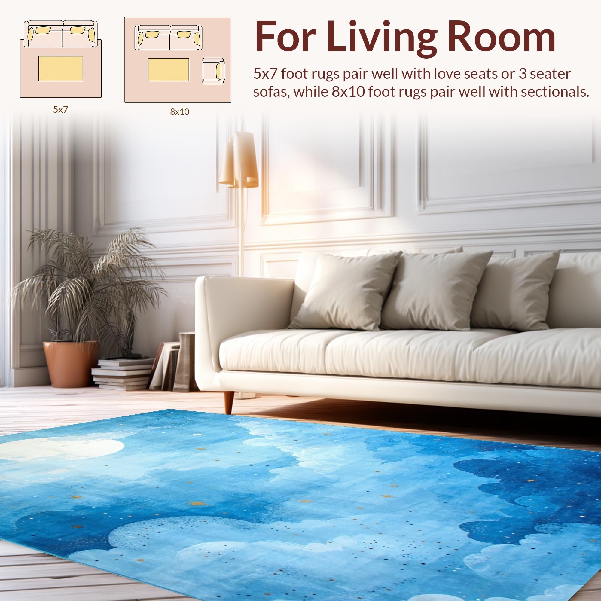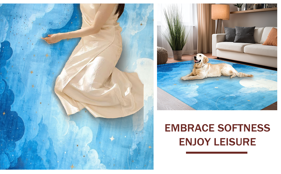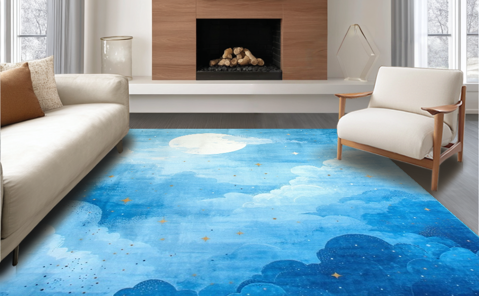 Ultra Soft Area Rug, Non Slip, Stain Resistant, Washable Area Rugs for Living Room, Bedroom, Delightful Shaggy Dreamy Aesthetic(Blue) Overview: