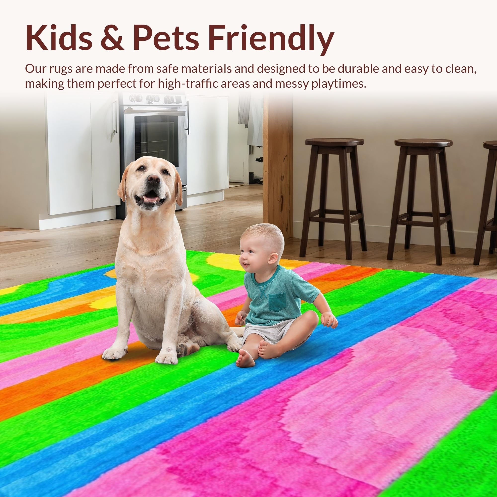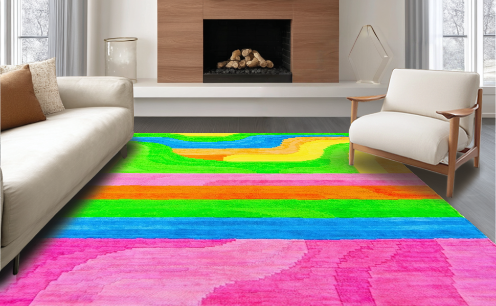 Ultra Soft Area Rug, Non Slip, Stain Resistant, Washable Area Rugs for Living Room, Bedroom, Delightful Soft Spectrum Arrangement(Green) Overview:
