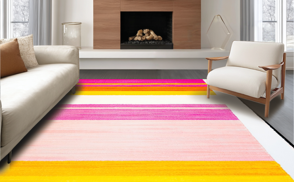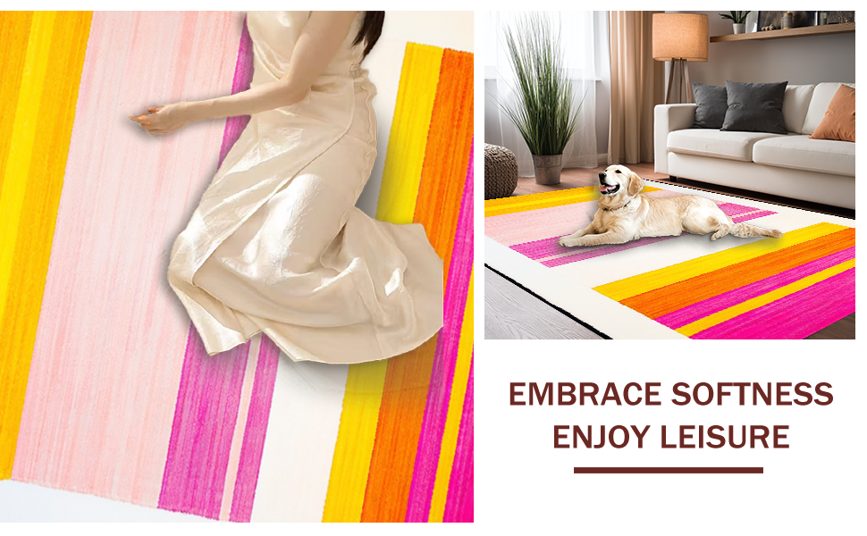 Ultra Soft Area Rug, Non Slip, Stain Resistant, Washable Area Rugs for Living Room, Bedroom, Delightful Soft Textured Rainbow Style(Pink) Overview: