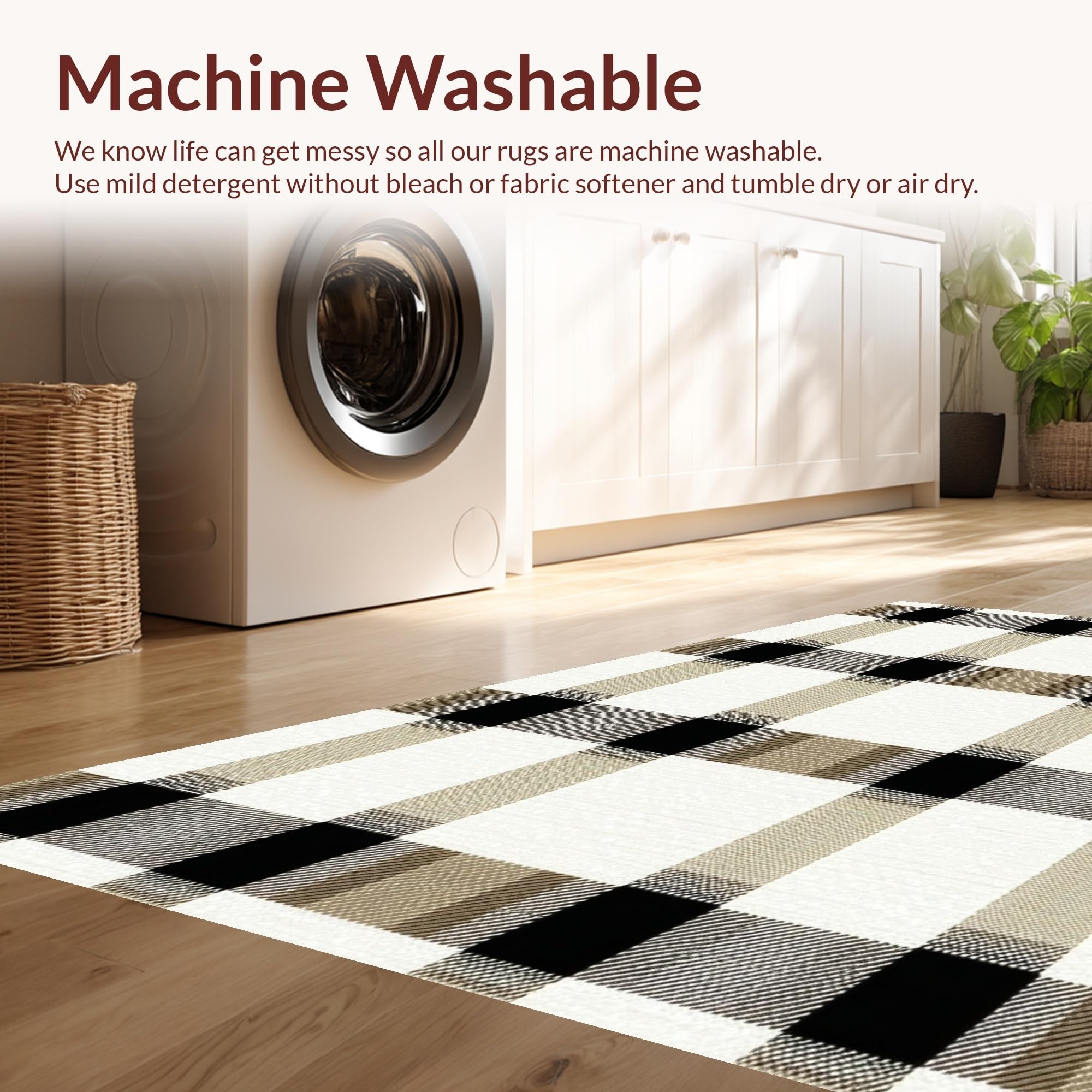 - Machine Washable: Our rugs can be easily thrown in the wash machine.