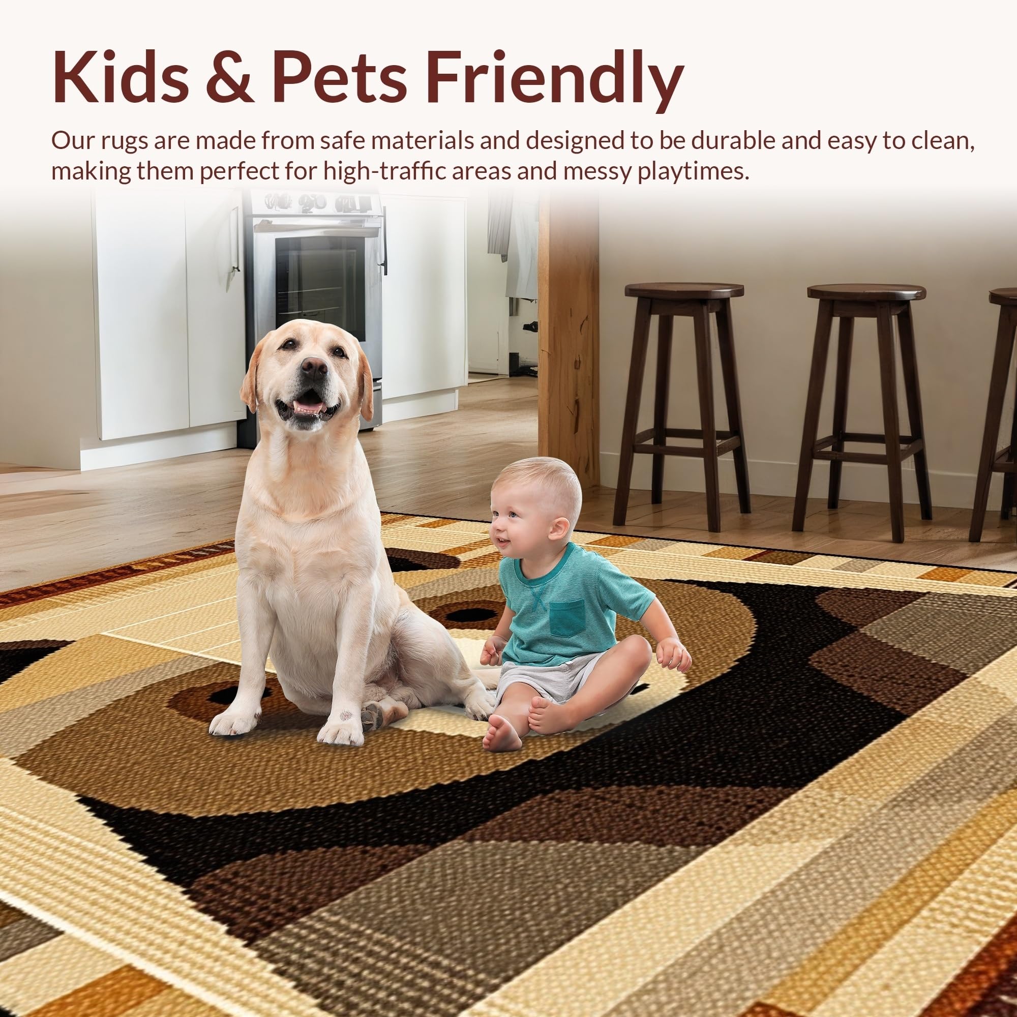Ultra Soft Area Rug, Non Slip, Stain Resistant, Washable Area Rugs for Living Room, Bedroom, Delightful Textured Nature Theme(Beige) Overview:
