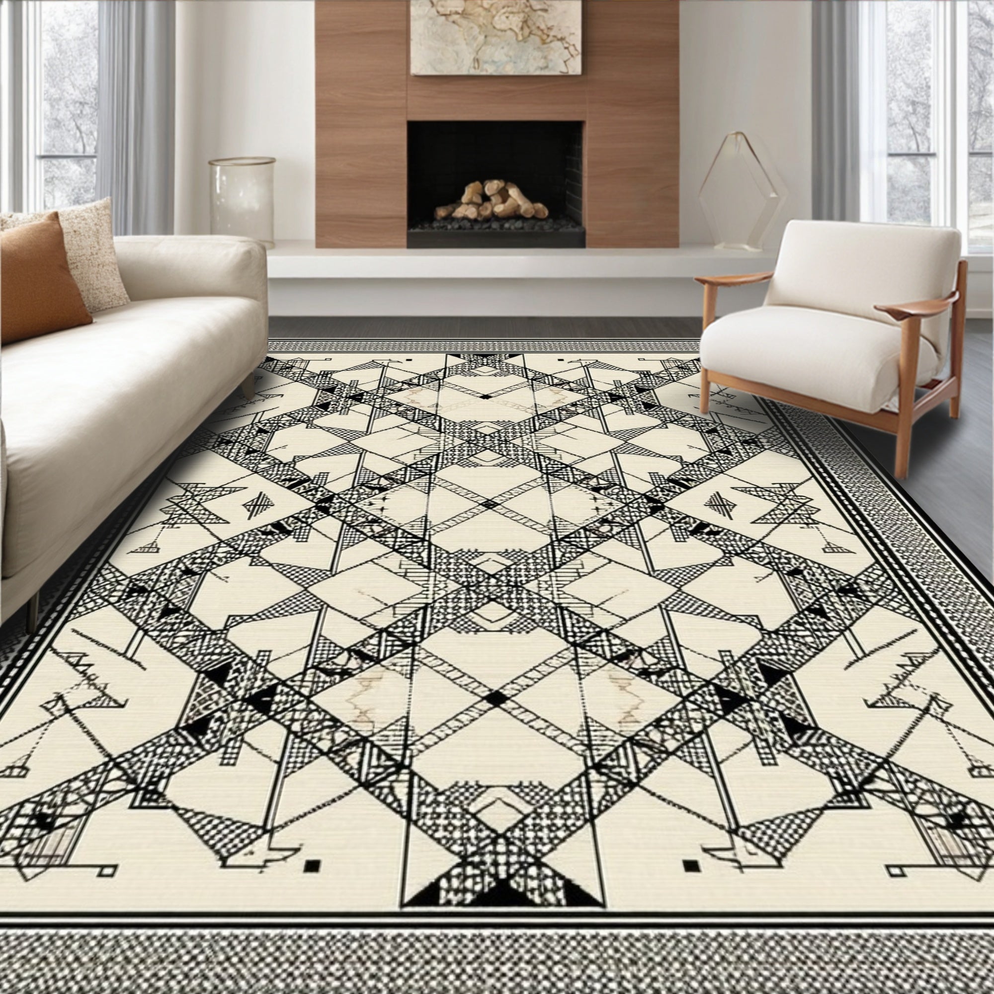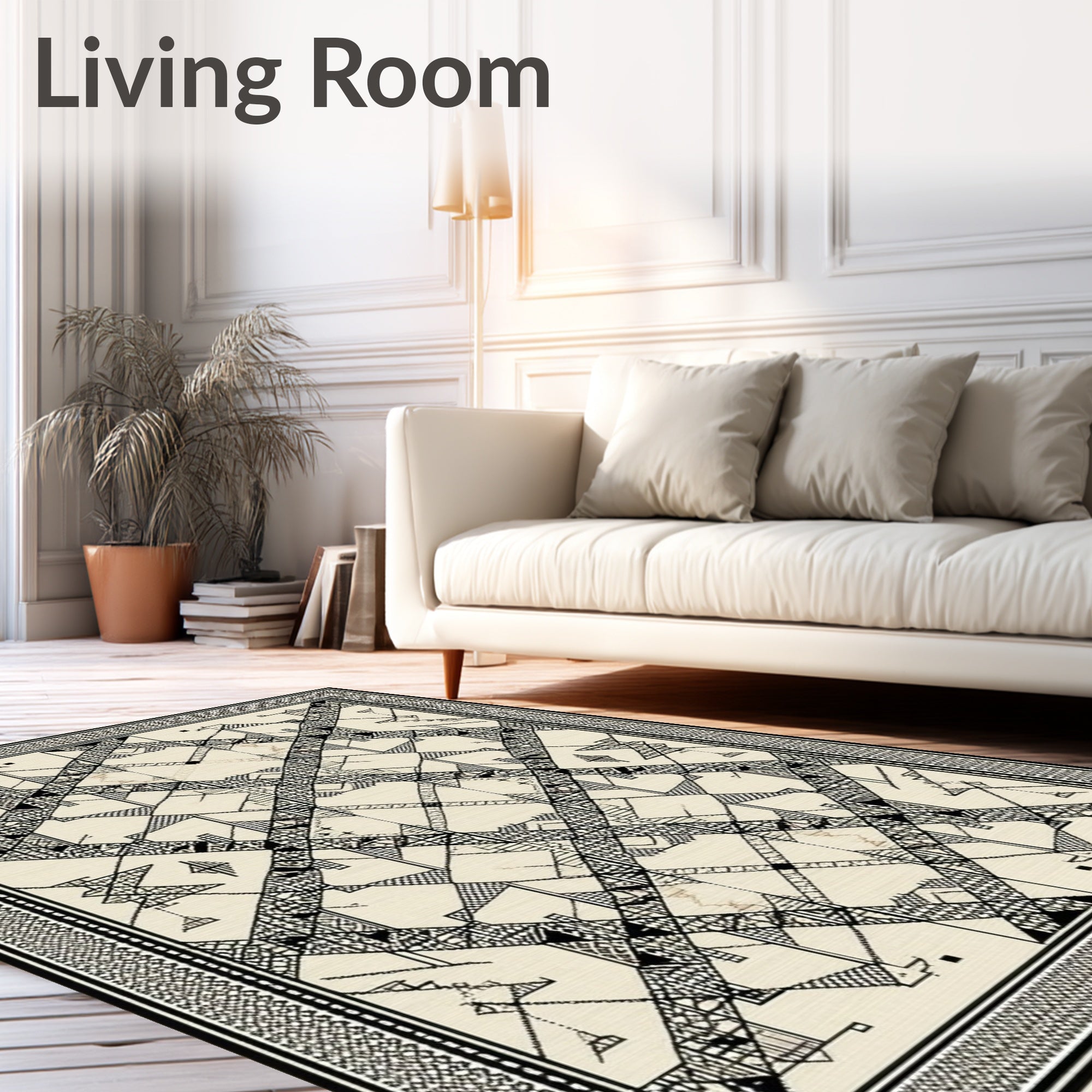 Ultra Soft Area Rug, Non Slip, Stain Resistant, Washable Area Rugs for Living Room, Bedroom, Deren Artisan Crafted Boho Chic Area with Geometric Diamond(Beige) Overview: