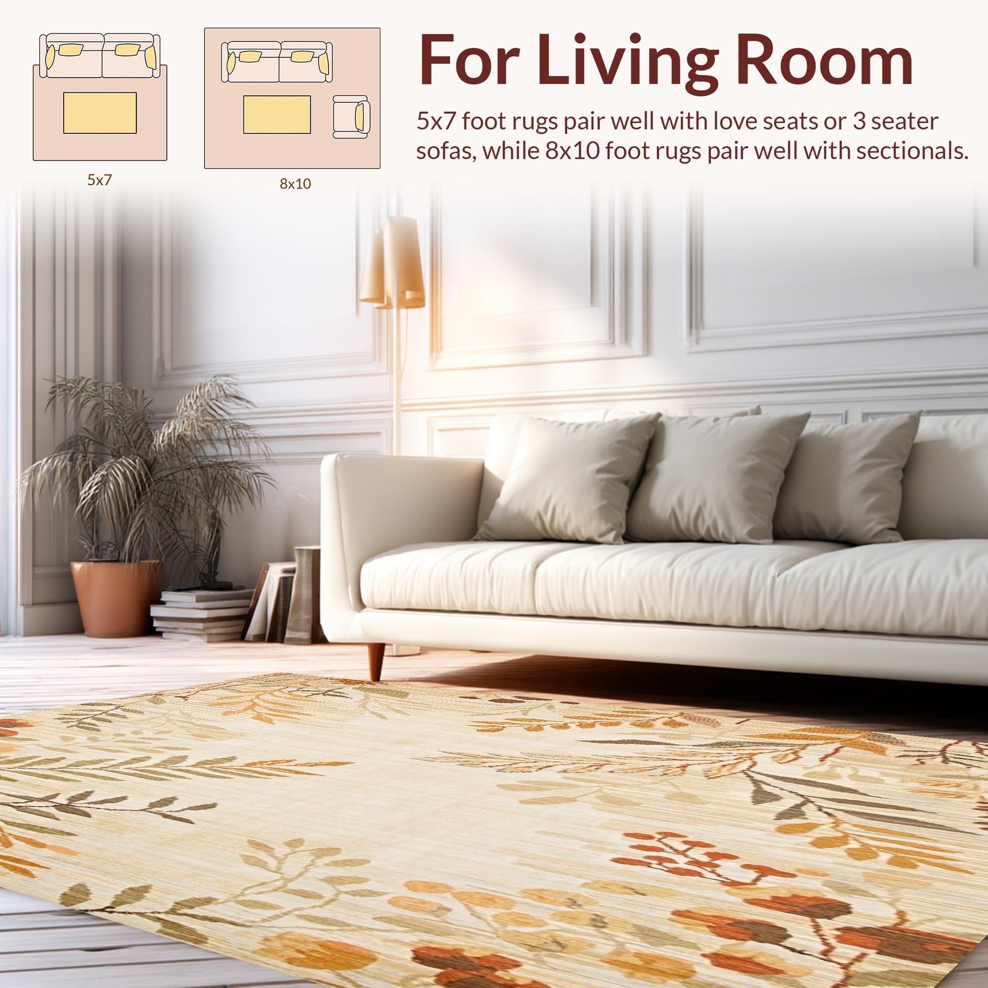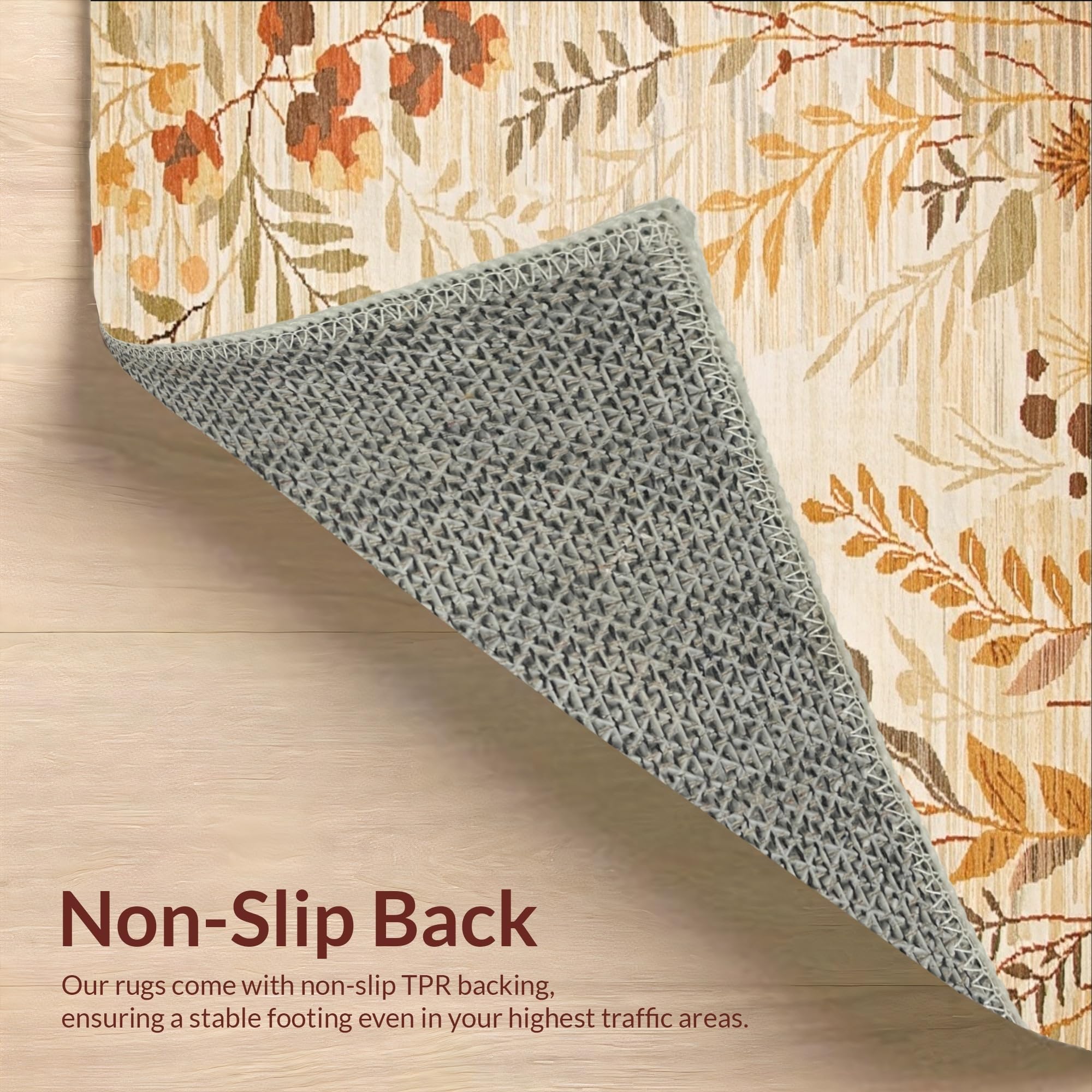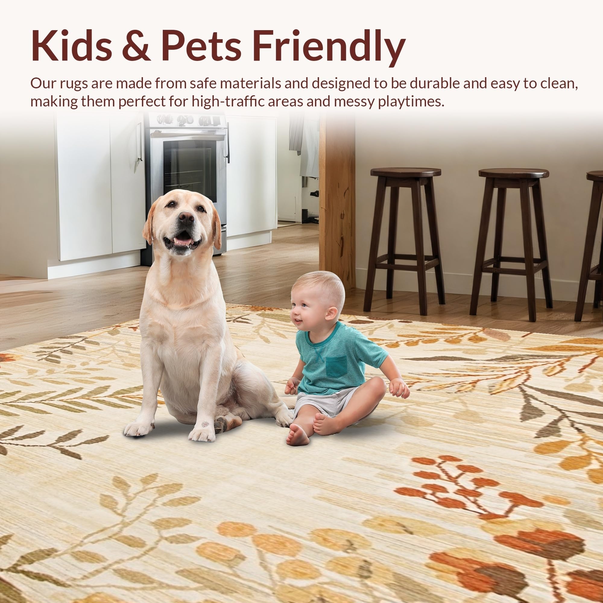 Ultra Soft Area Rug, Non Slip, Stain Resistant, Washable Area Rugs for Living Room, Bedroom, Desert Bloom Beige Area Contemporary Floral Motif(Beige) Overview: