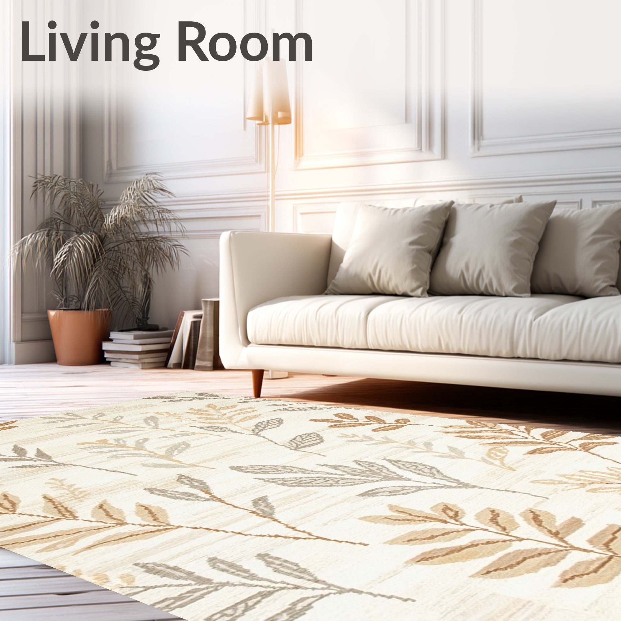 Ultra Soft Area Rug, Non Slip, Stain Resistant, Washable Area Rugs for Living Room, Bedroom, Desert Bloom Collection Area Beige Cream Botanical Motif Durable(Beige) Overview: