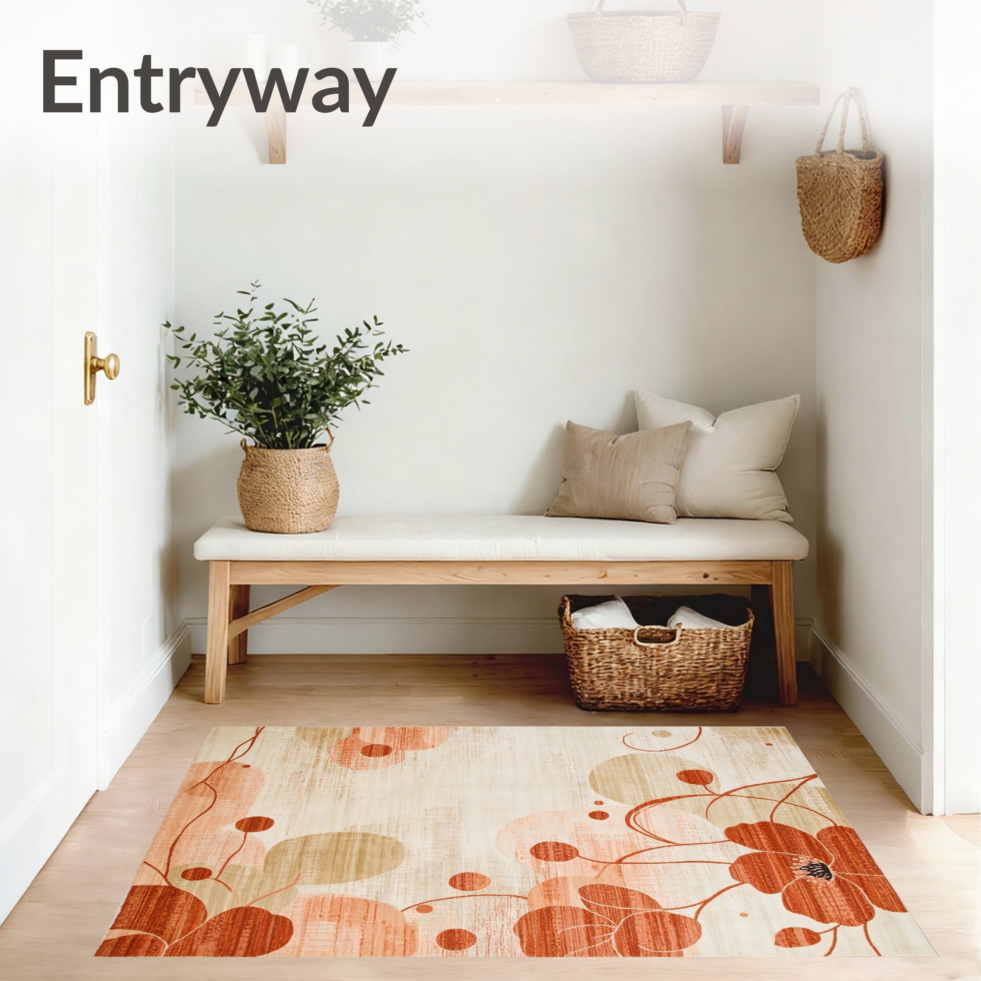 Ultra Soft Area Rug, Non Slip, Stain Resistant, Washable Area Rugs for Living Room, Bedroom, Desert Bloom Indoor Area Earthy Tones(Beige) Overview: