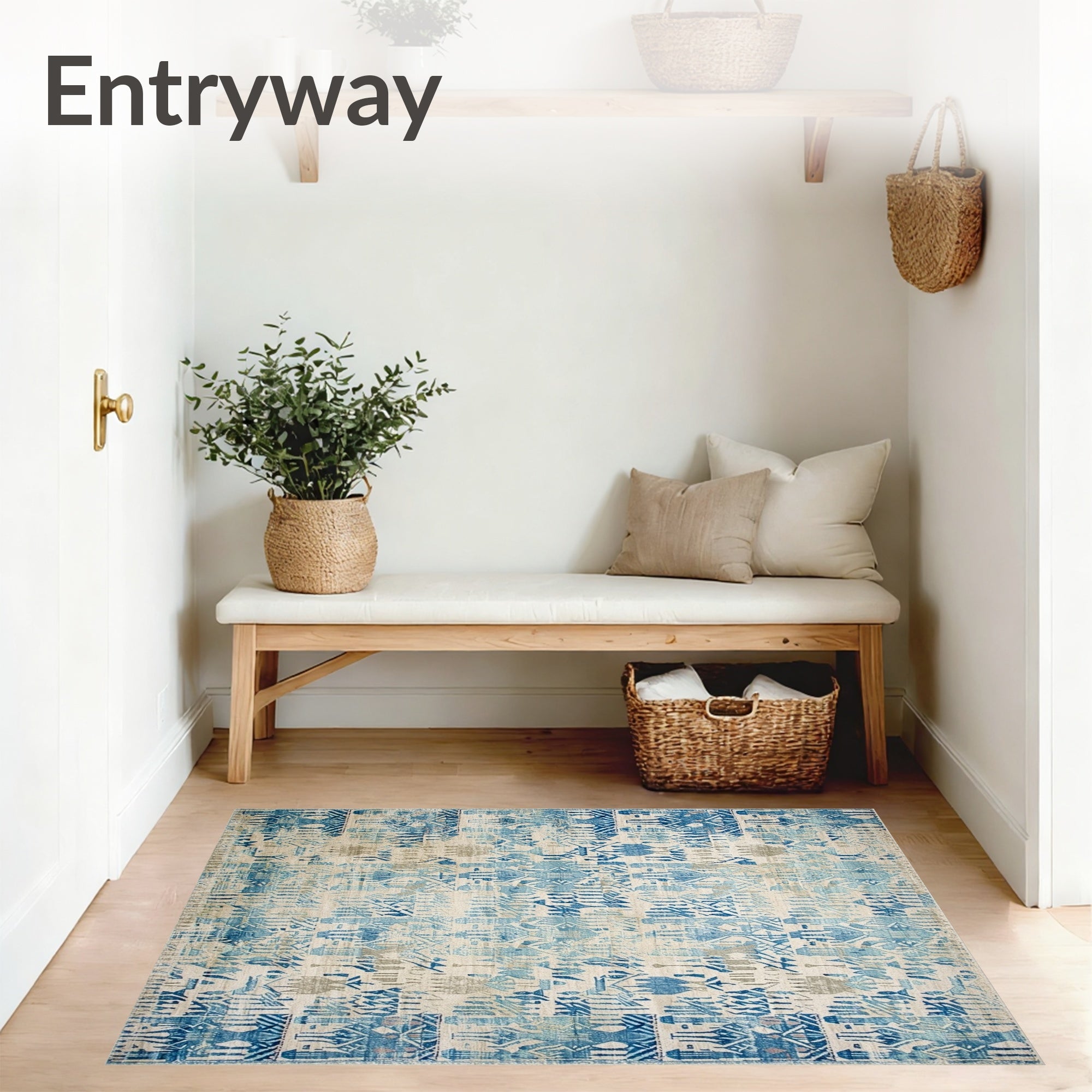 Ultra Soft Area Rug, Non Slip, Stain Resistant, Washable Area Rugs for Living Room, Bedroom, Desert Bloom Southwestern Area Boho Tribal Plant(Blue) Overview: