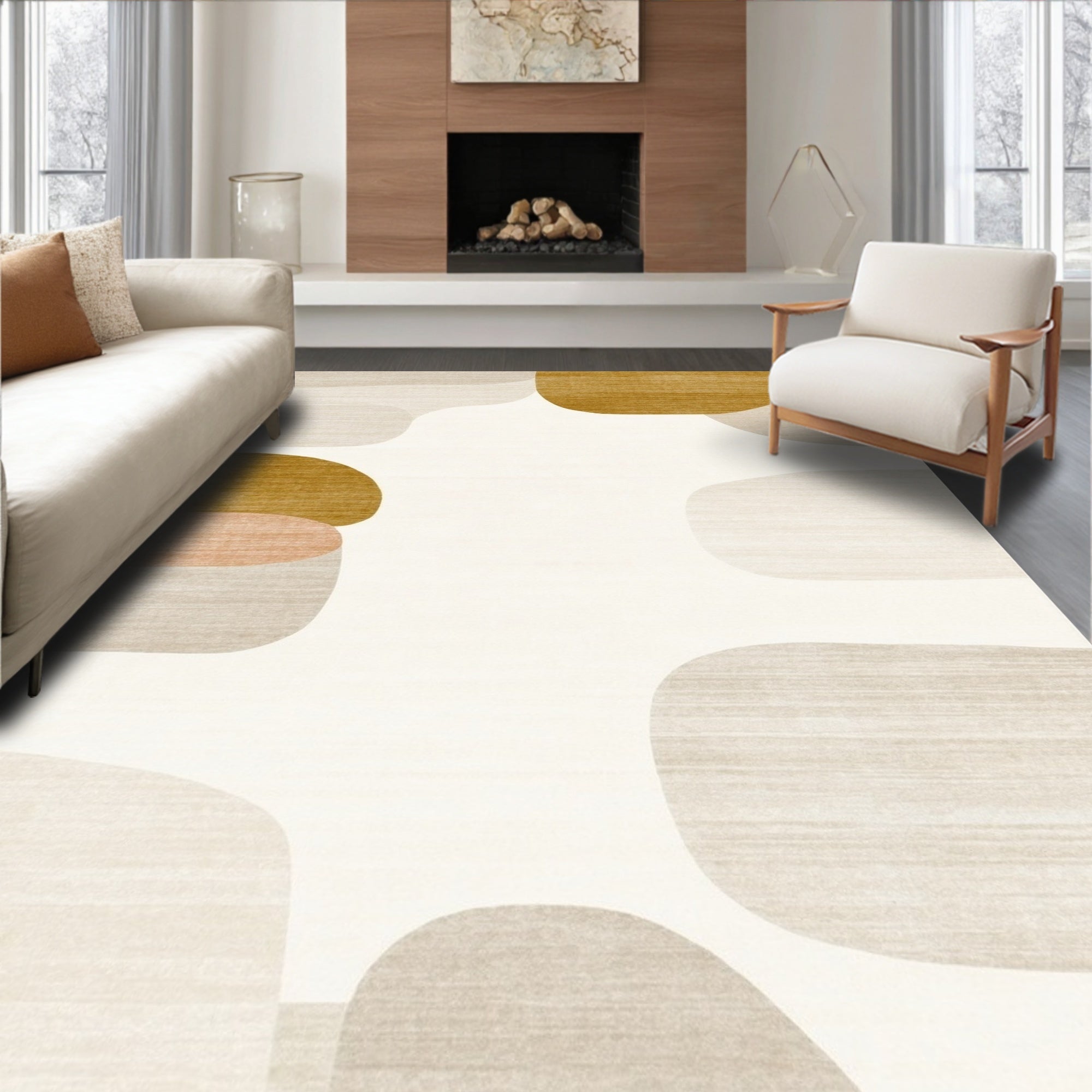 Ultra Soft Area Rug, Non Slip, Stain Resistant, Washable Area Rugs for Living Room, Bedroom, Desert Sand Area with Minimalist Abstract Design Elements(Beige) Overview: