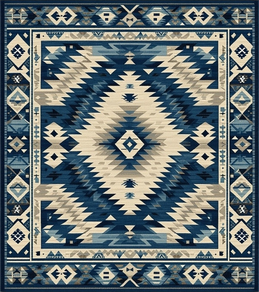 Desert Sky Oasis Dark Blue Beige Southwestern Motif(Blue)