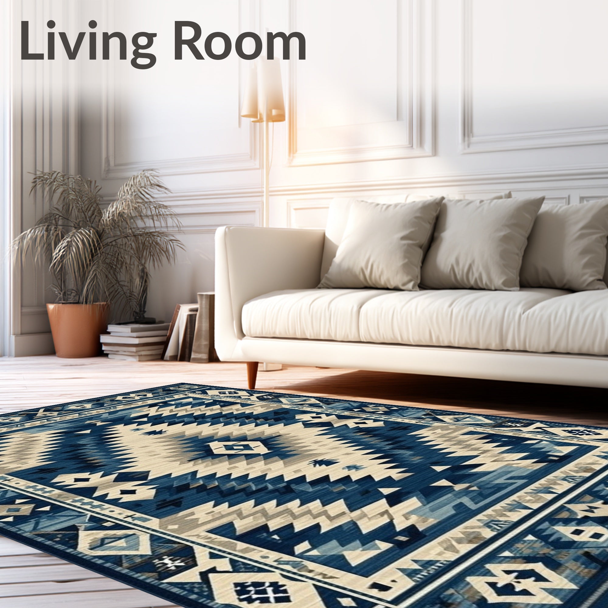 Ultra Soft Area Rug, Non Slip, Stain Resistant, Washable Area Rugs for Living Room, Bedroom, Desert Sky Oasis Dark Blue Beige Southwestern Motif(Blue) Overview: