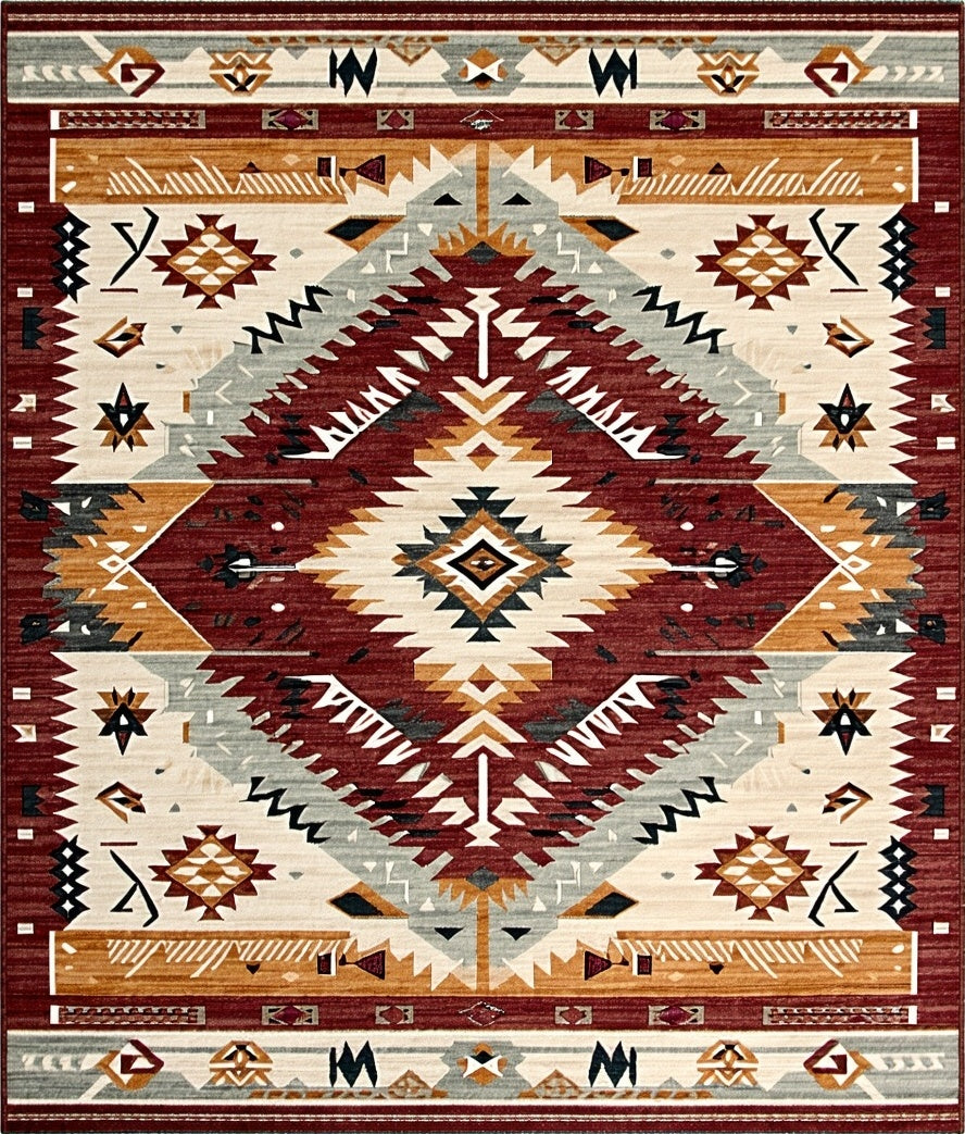 Desert Sunset Medallion Area with Tribal Geometric(Brown)