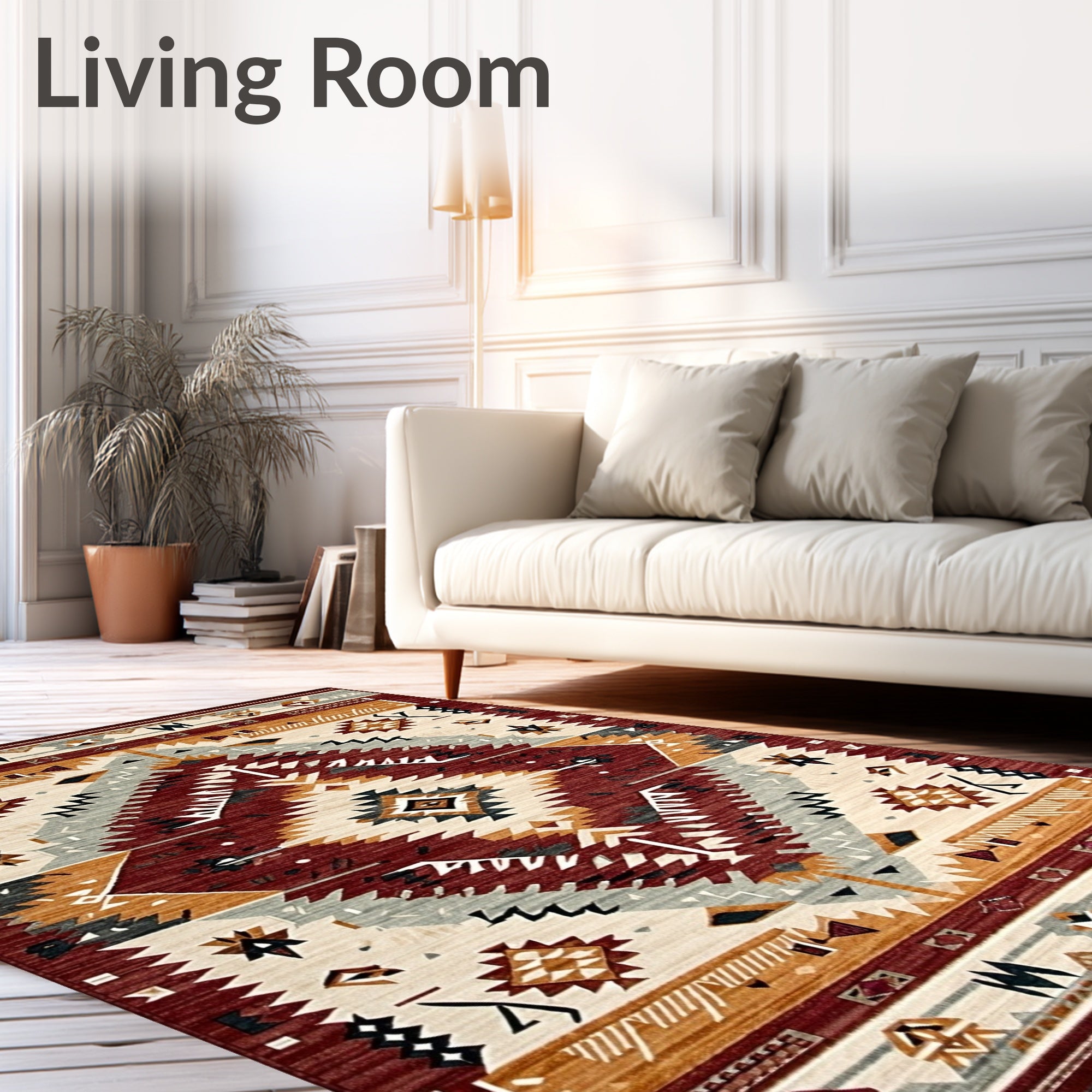 Ultra Soft Area Rug, Non Slip, Stain Resistant, Washable Area Rugs for Living Room, Bedroom, Desert Sunset Medallion Area with Tribal Geometric(Brown) Overview: