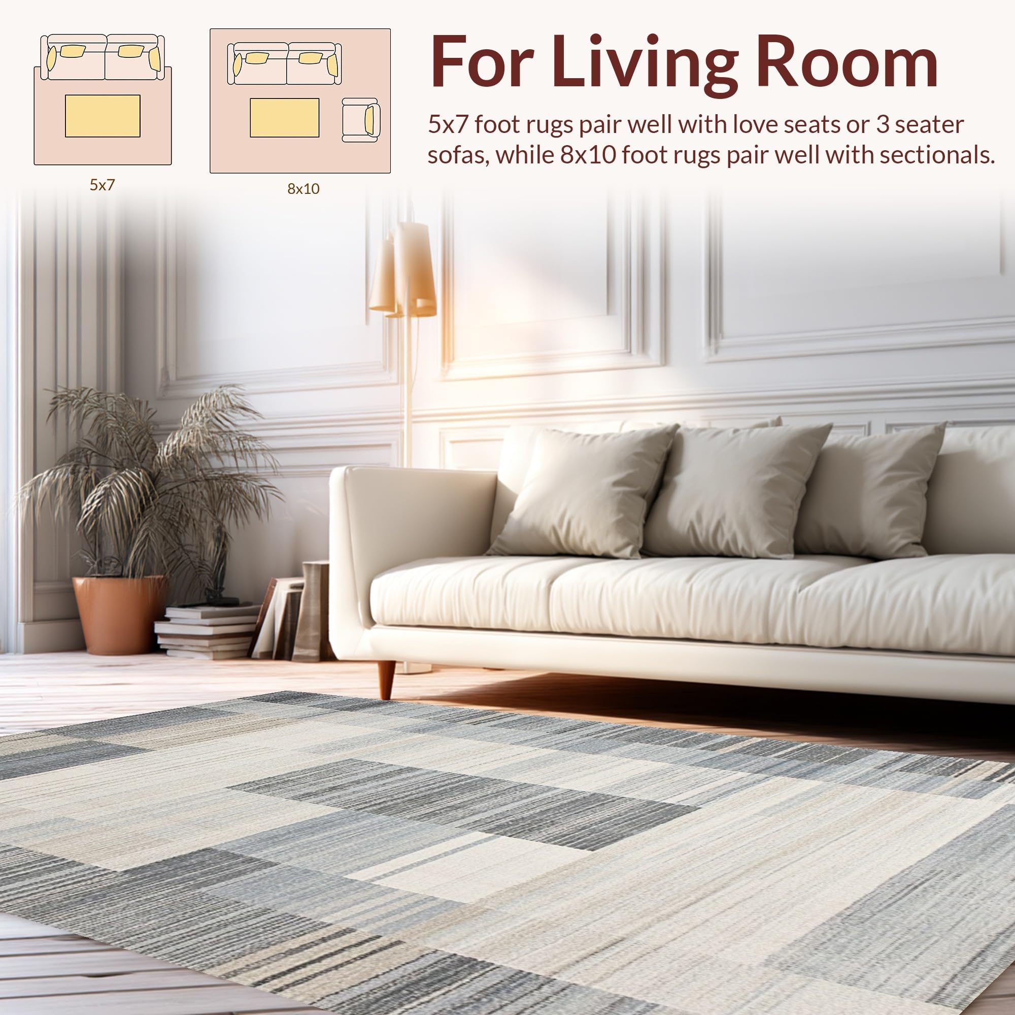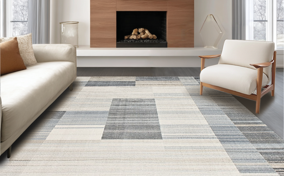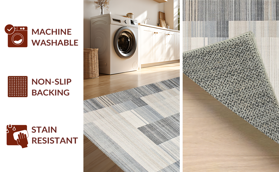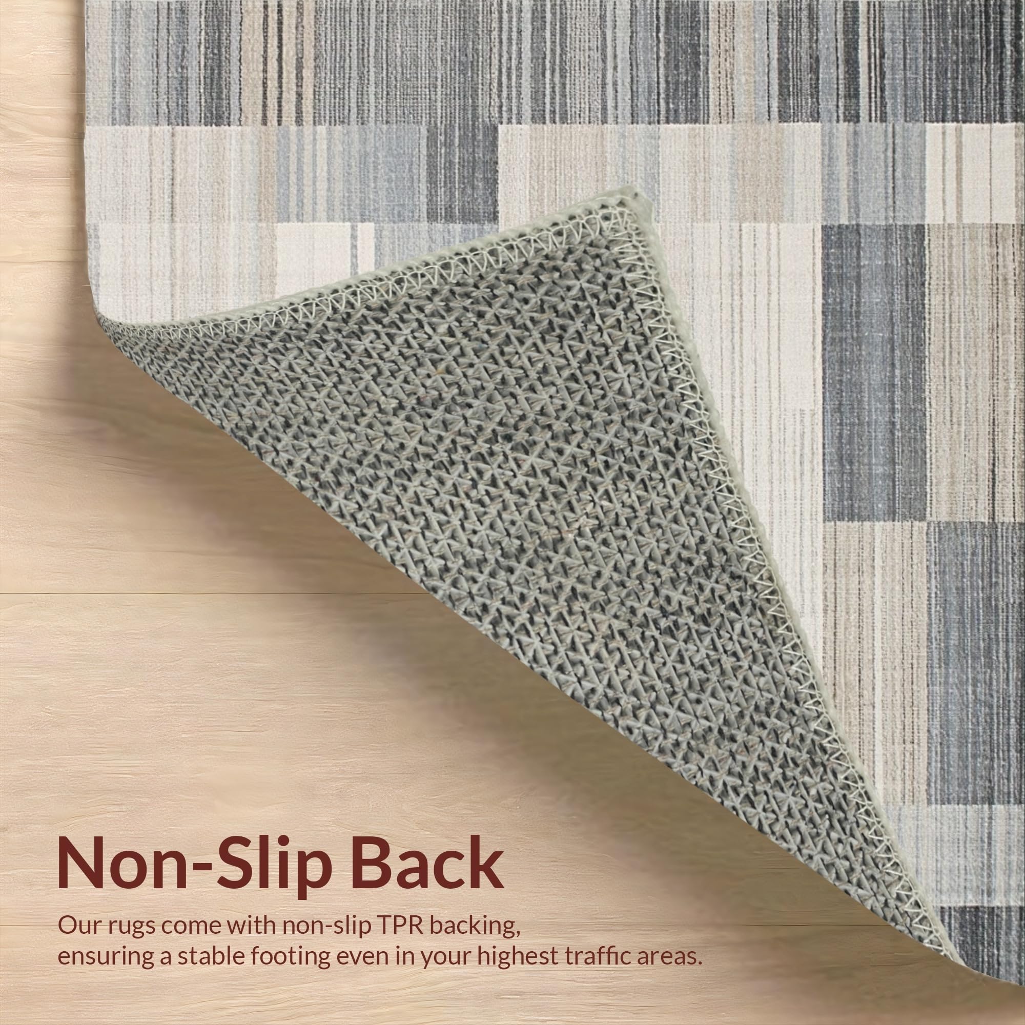 Ultra Soft Area Rug, Non Slip, Stain Resistant, Washable Area Rugs for Living Room, Bedroom, Designer Inspired Minimalist Symmetry(Gray) Overview: