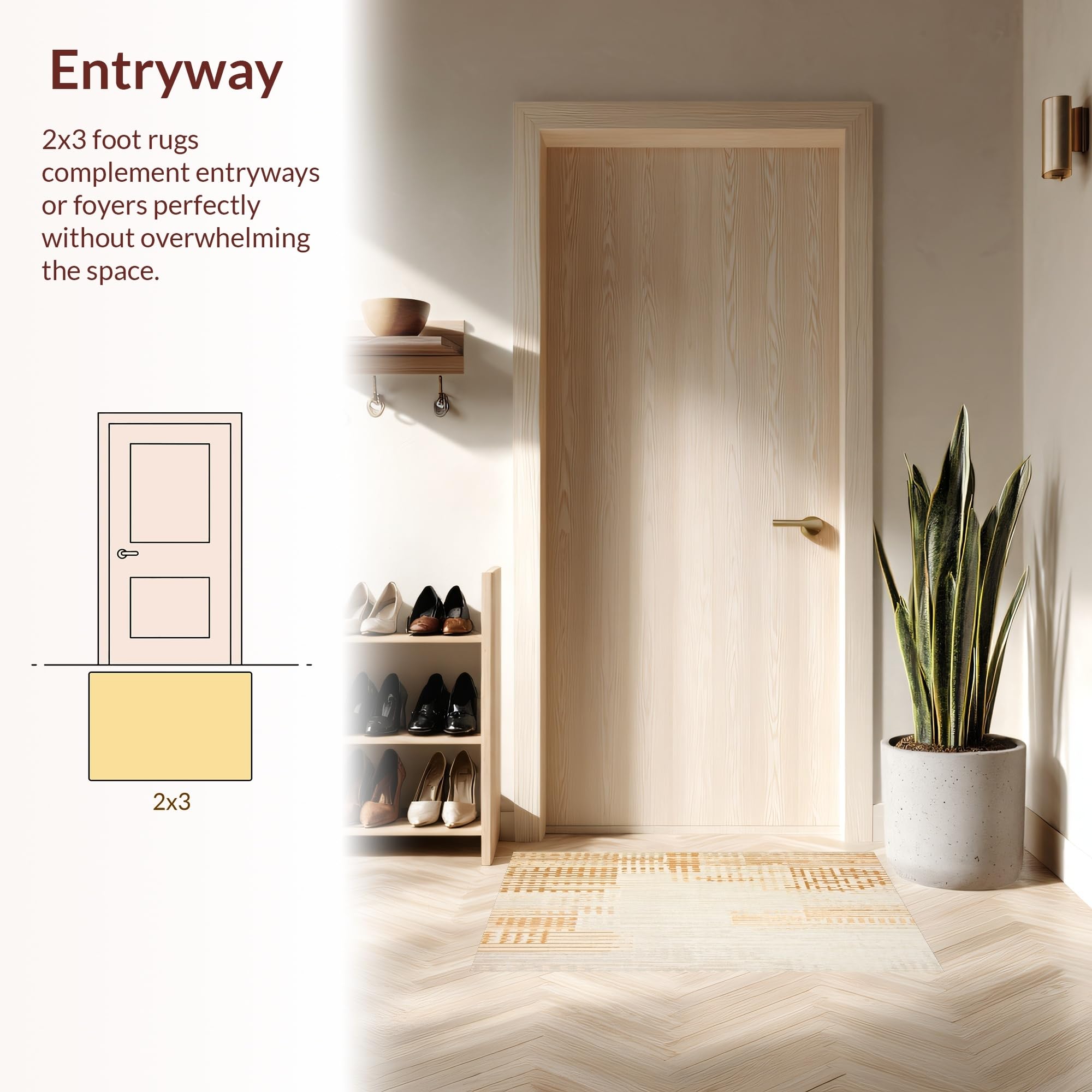 Ultra Soft Area Rug, Non Slip, Stain Resistant, Washable Area Rugs for Living Room, Bedroom, Designer Neutral Textured Geometric Contemporary(Beige) Overview: