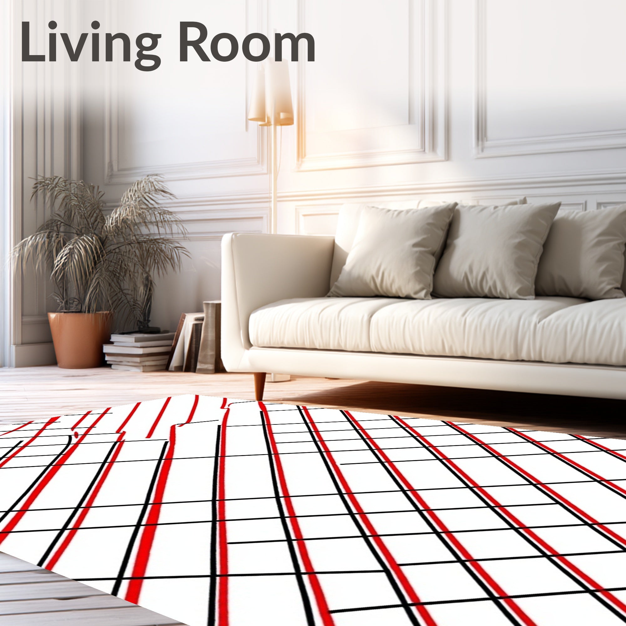 Ultra Soft Area Rug, Non Slip, Stain Resistant, Washable Area Rugs for Living Room, Bedroom, Diagonal Checkerboard Design with Crisp Contrasting Lines(Red) Overview: