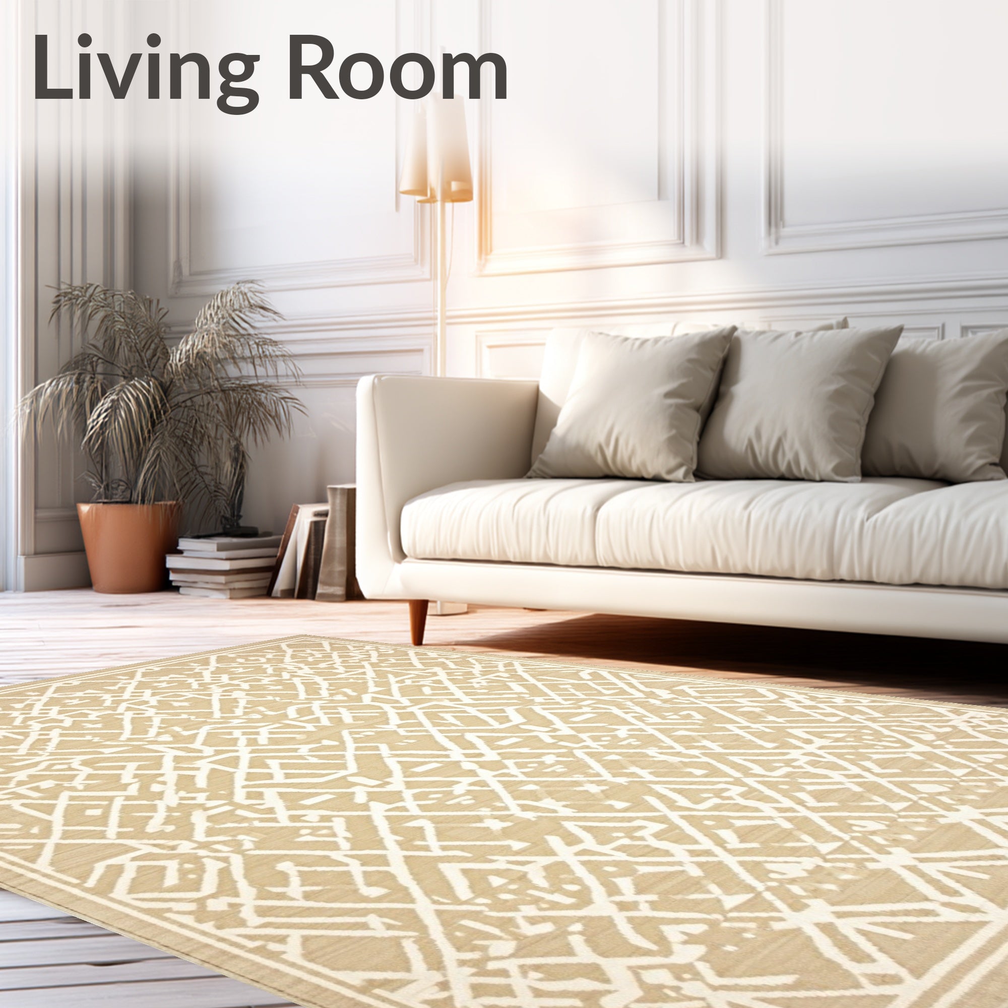 Ultra Soft Area Rug, Non Slip, Stain Resistant, Washable Area Rugs for Living Room, Bedroom, Diamond Trellis Indoor/ Area Boho Geometric Design(Beige) Overview: