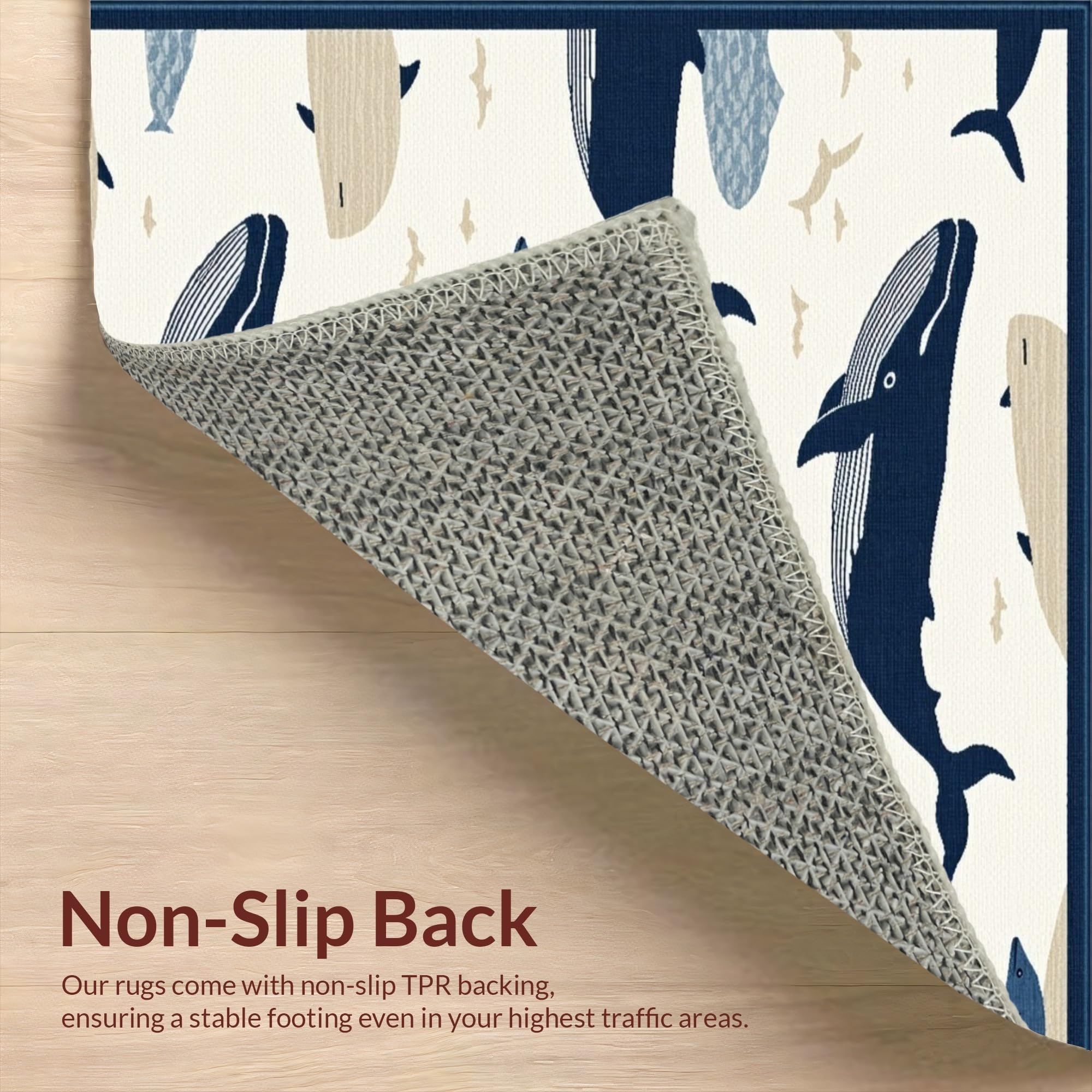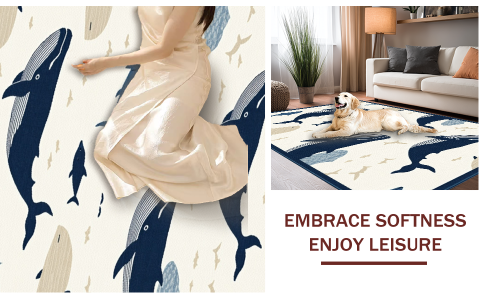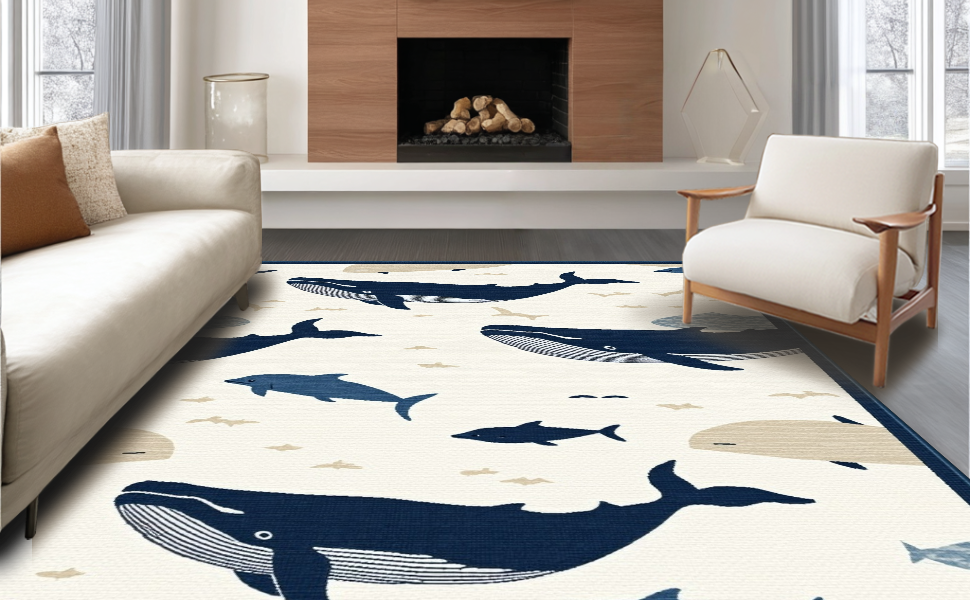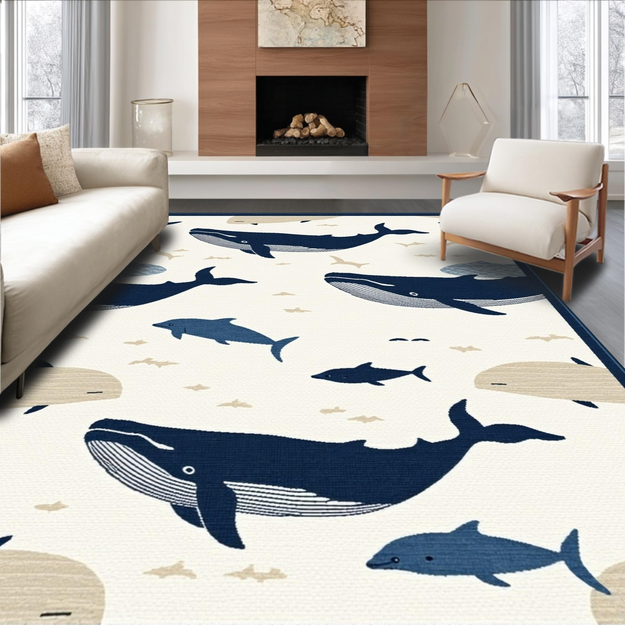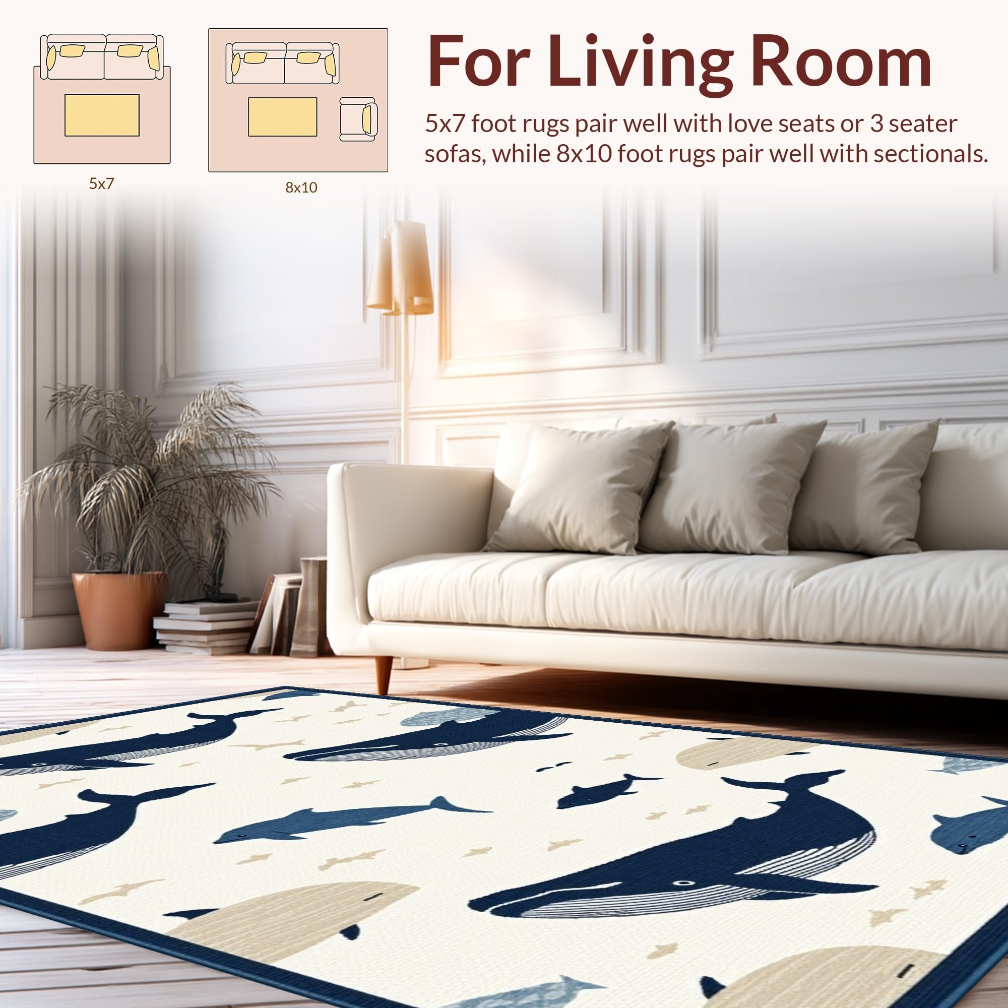 Ultra Soft Area Rug, Non Slip, Stain Resistant, Washable Area Rugs for Living Room, Bedroom, Distinctive Contemporary Whale Artwork(Beige) Overview: