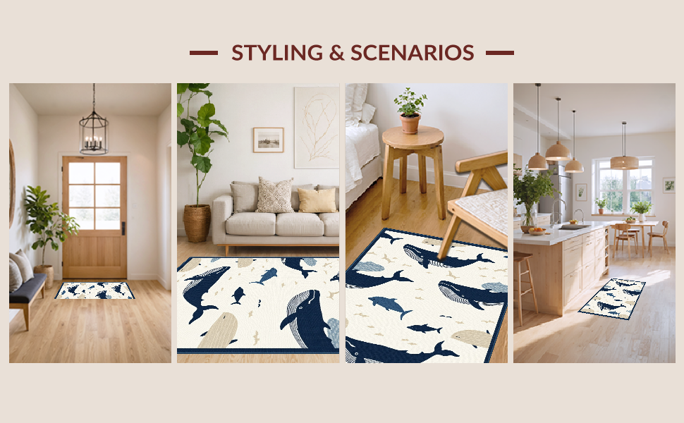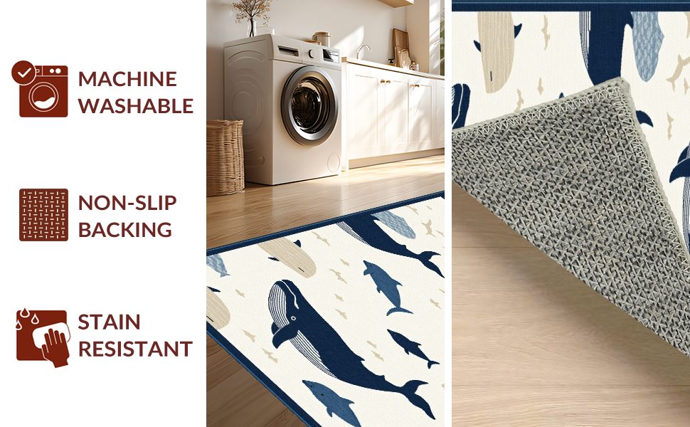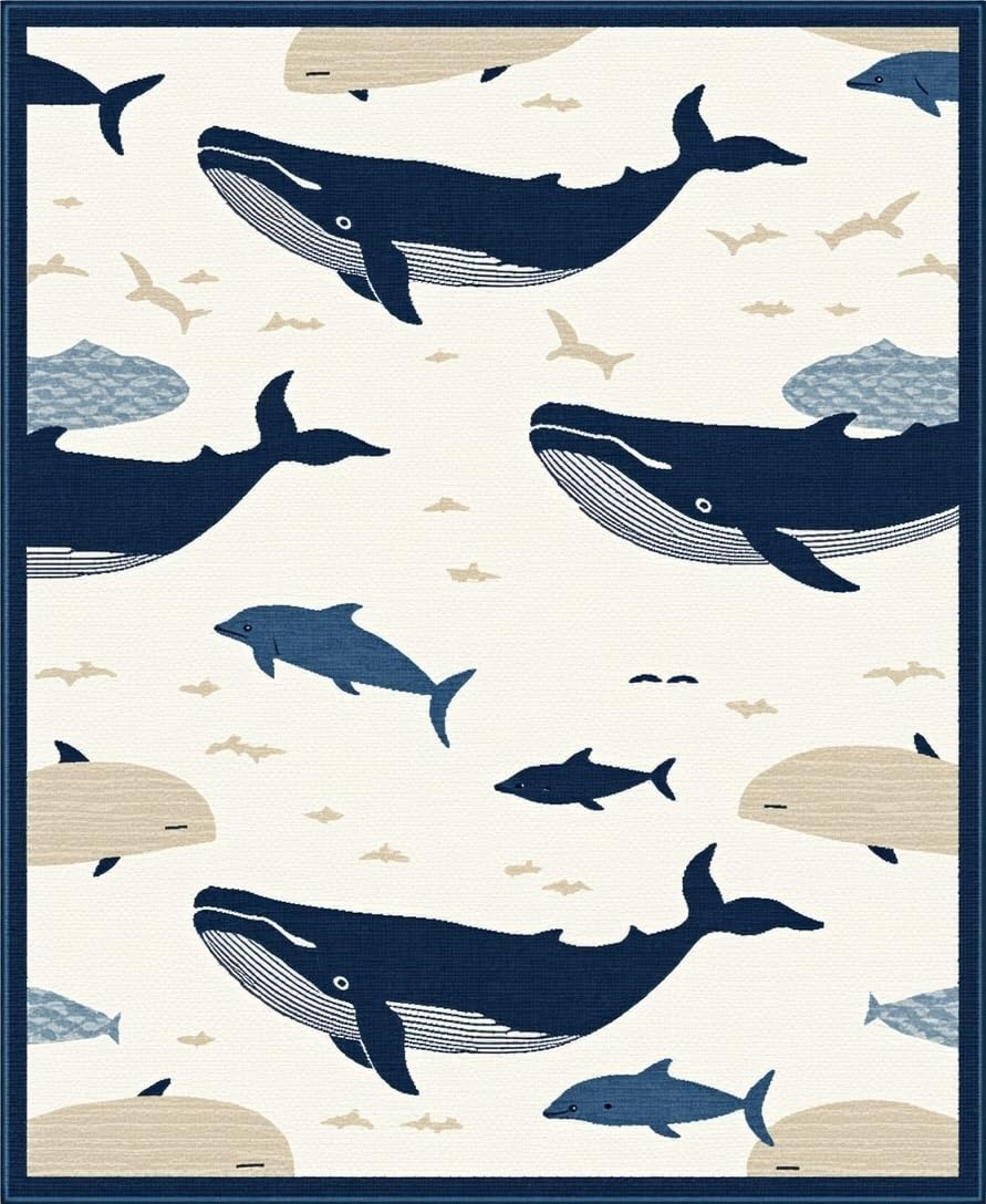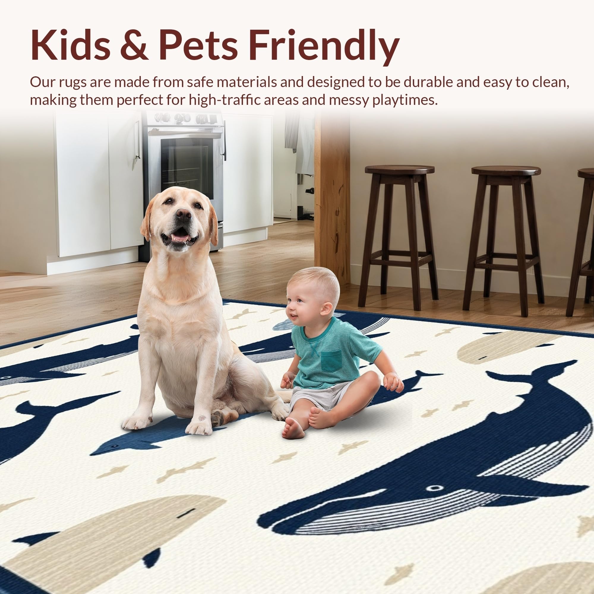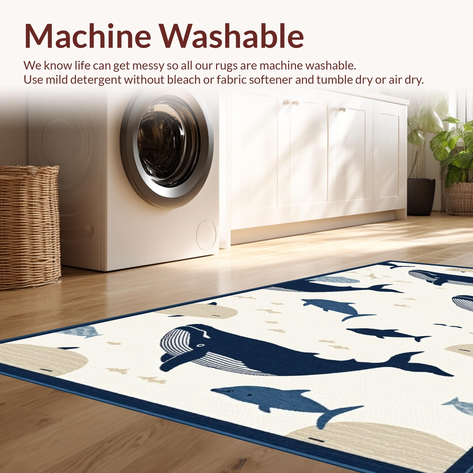 Ultra Soft Area Rug, Non Slip, Stain Resistant, Washable Area Rugs for Living Room, Bedroom, Distinctive Contemporary Whale Artwork(Beige) Overview:
