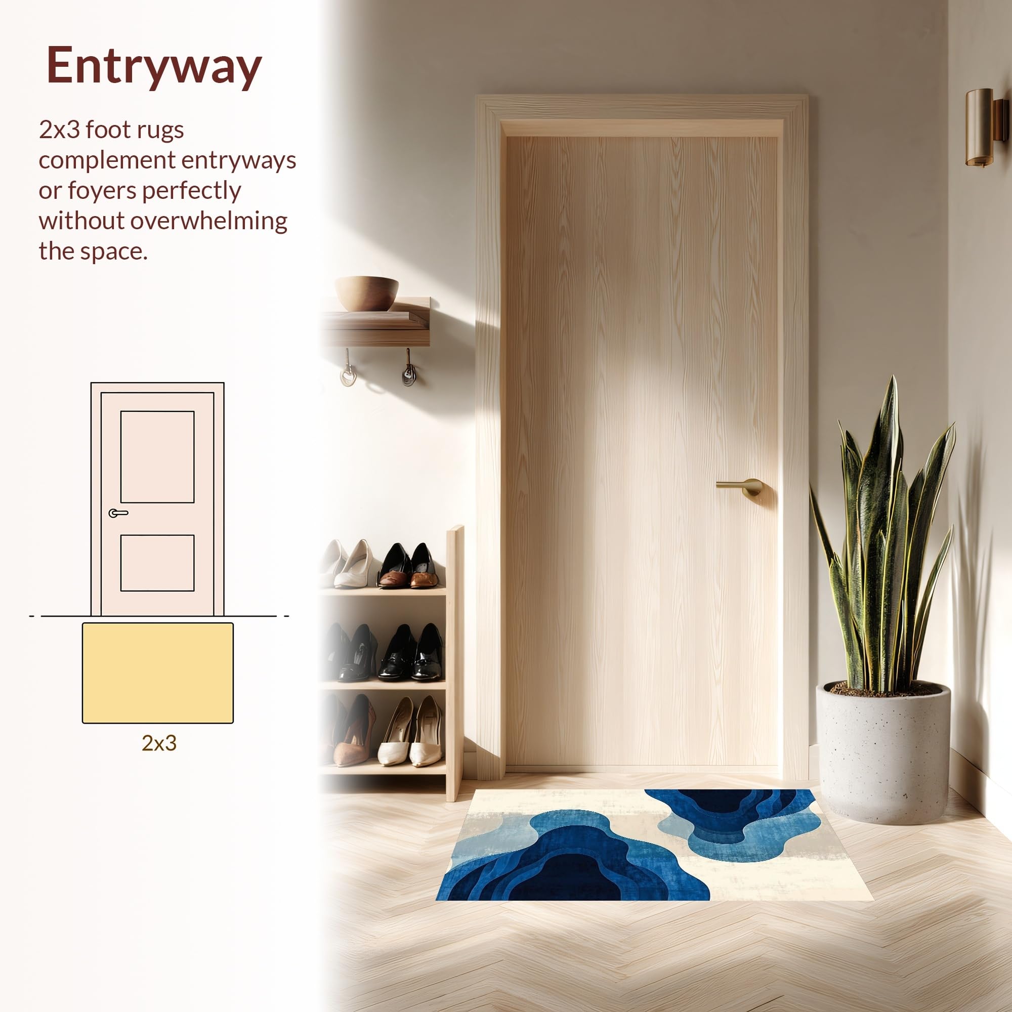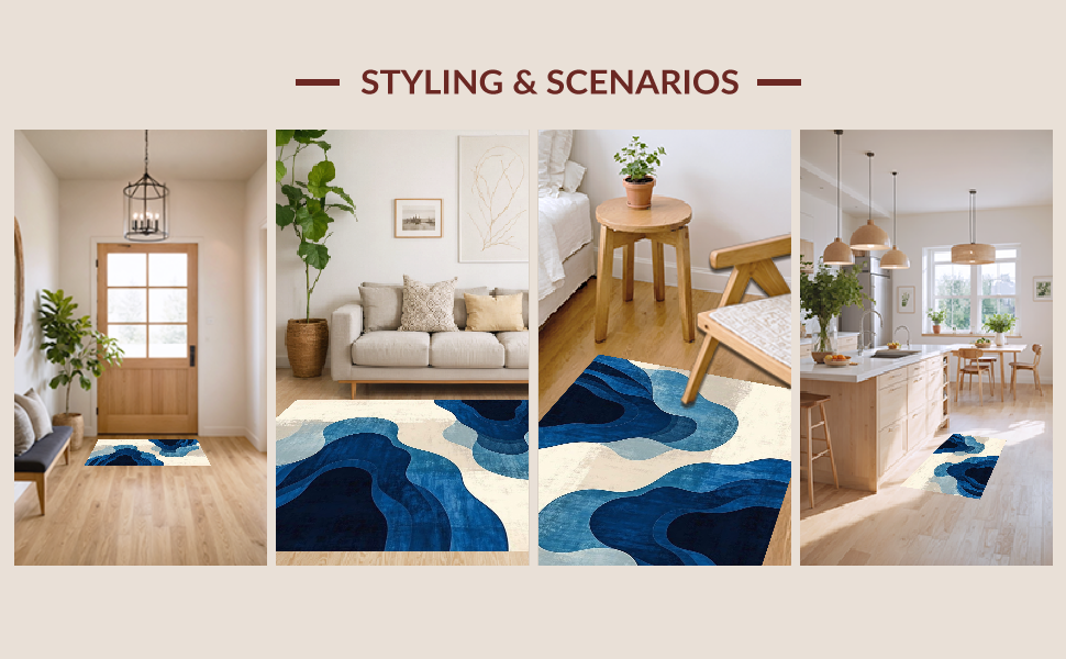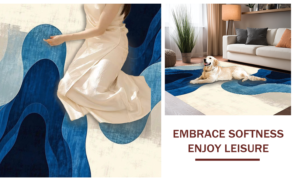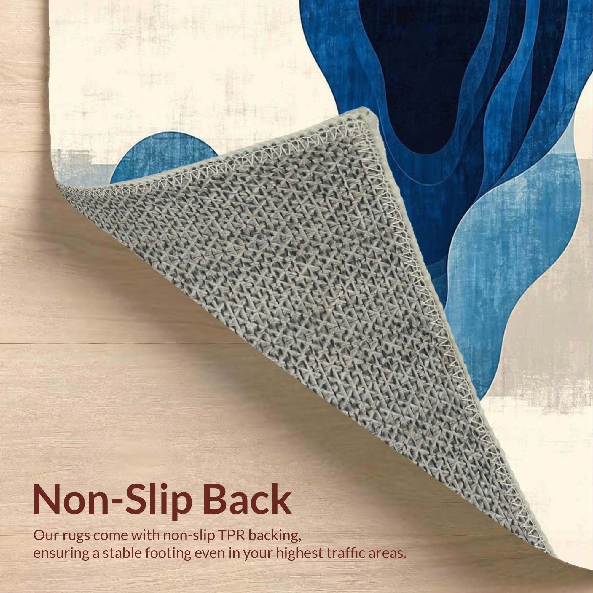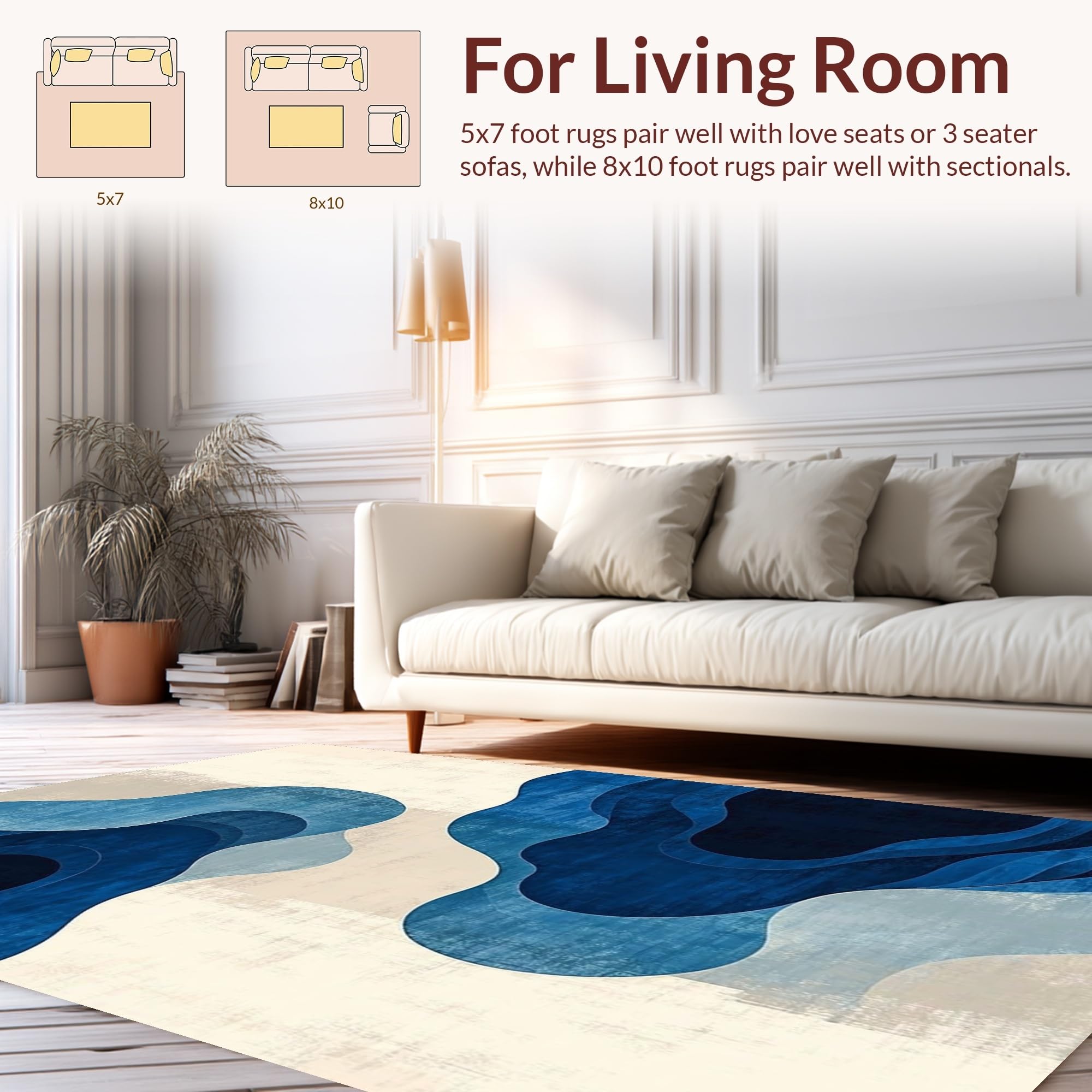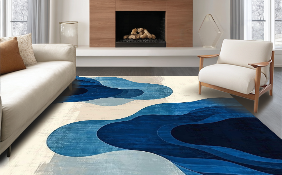 Ultra Soft Area Rug, Non Slip, Stain Resistant, Washable Area Rugs for Living Room, Bedroom, Distinctive Layered Ogee Style(Blue) Overview: