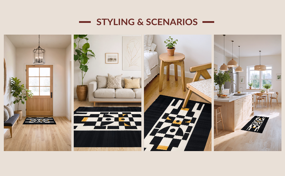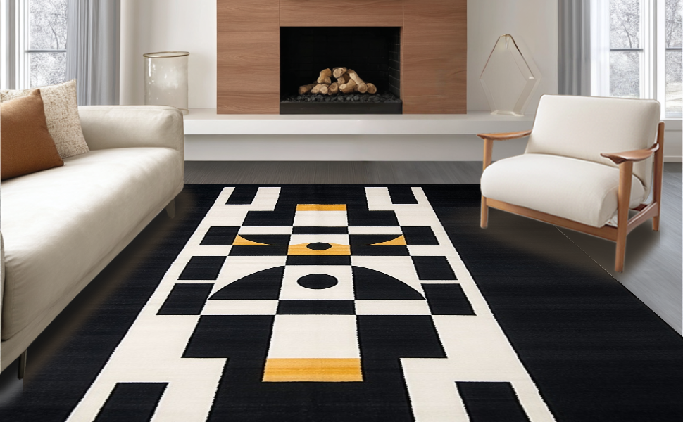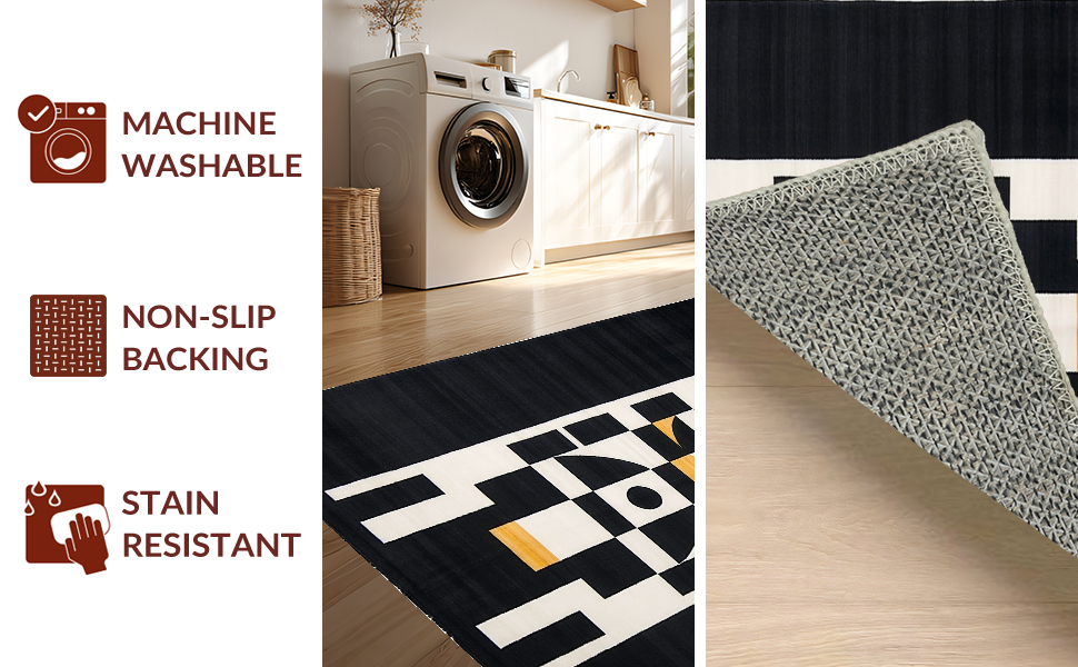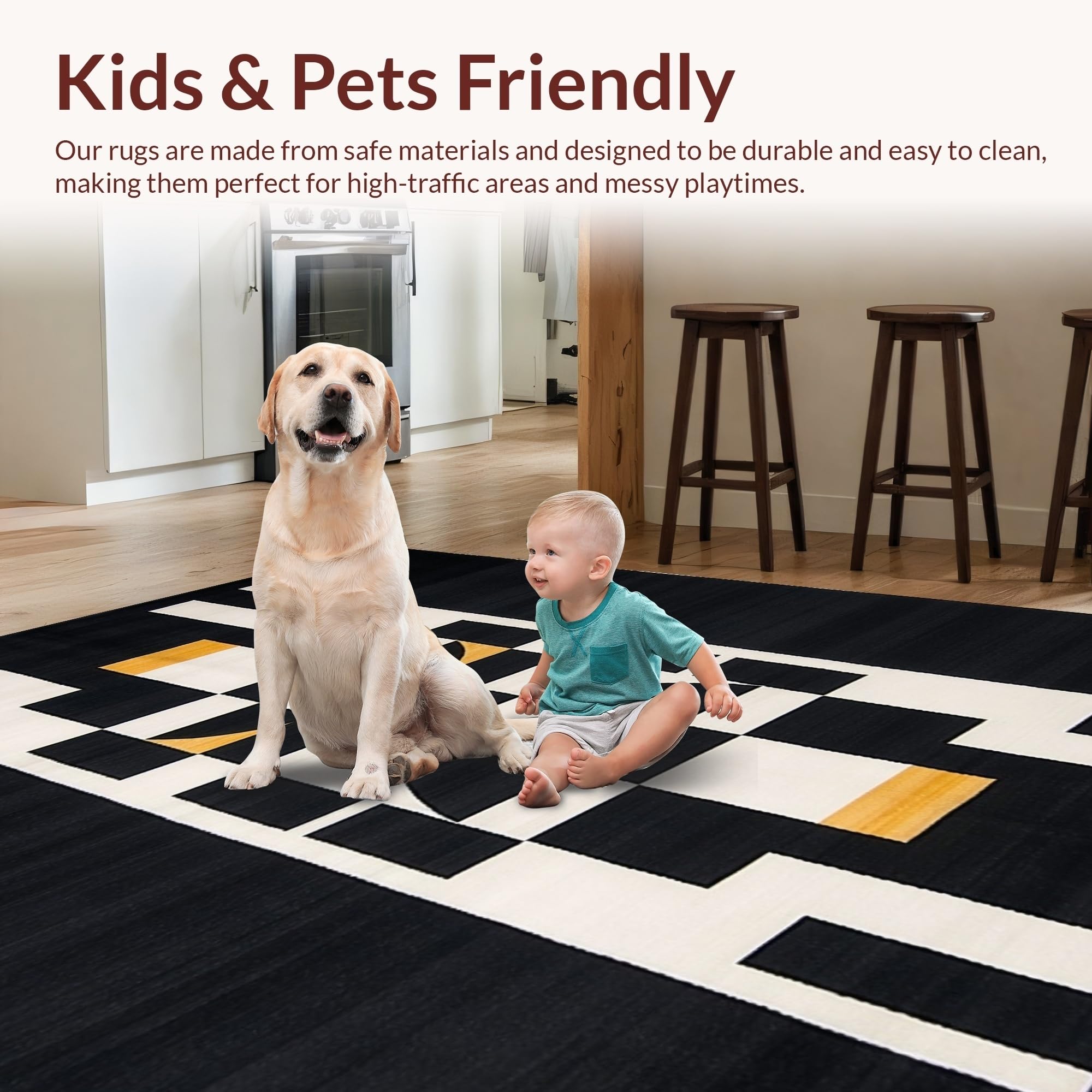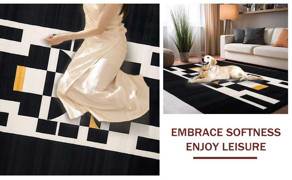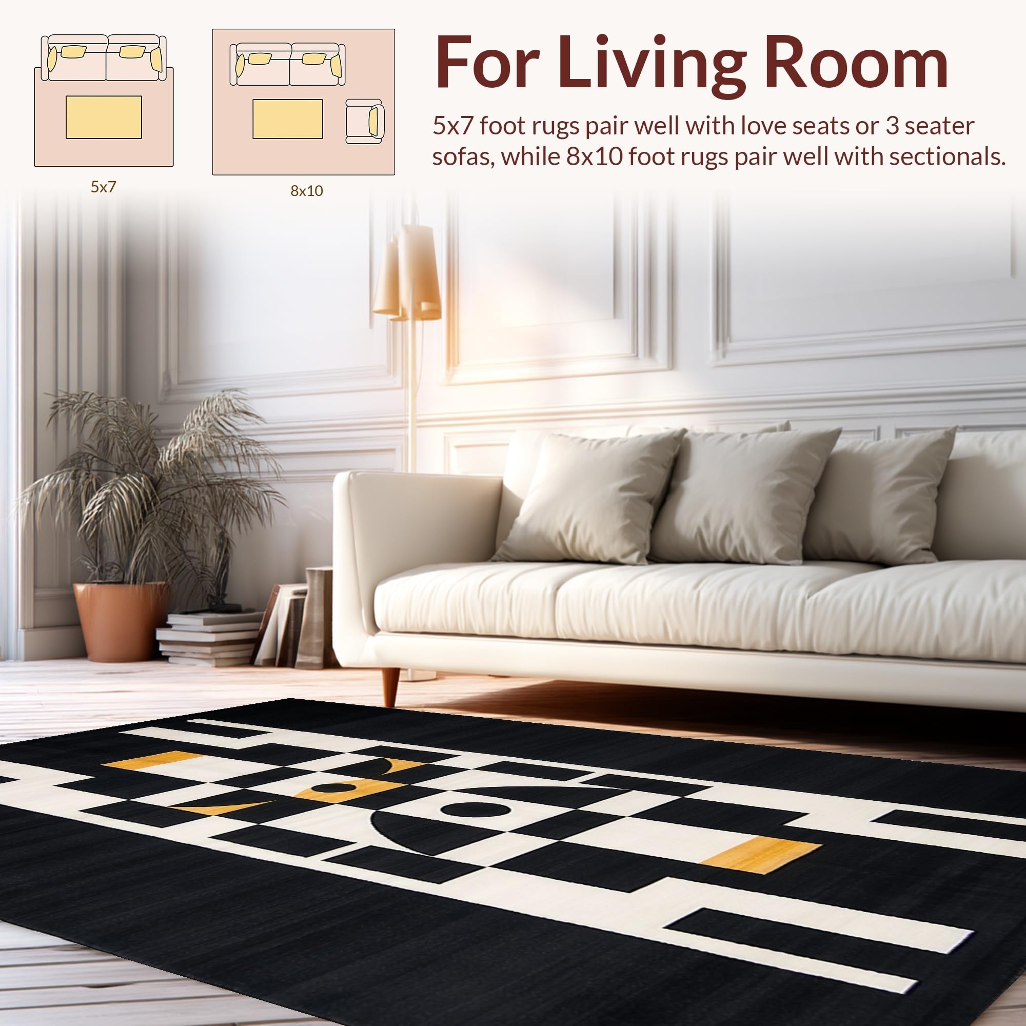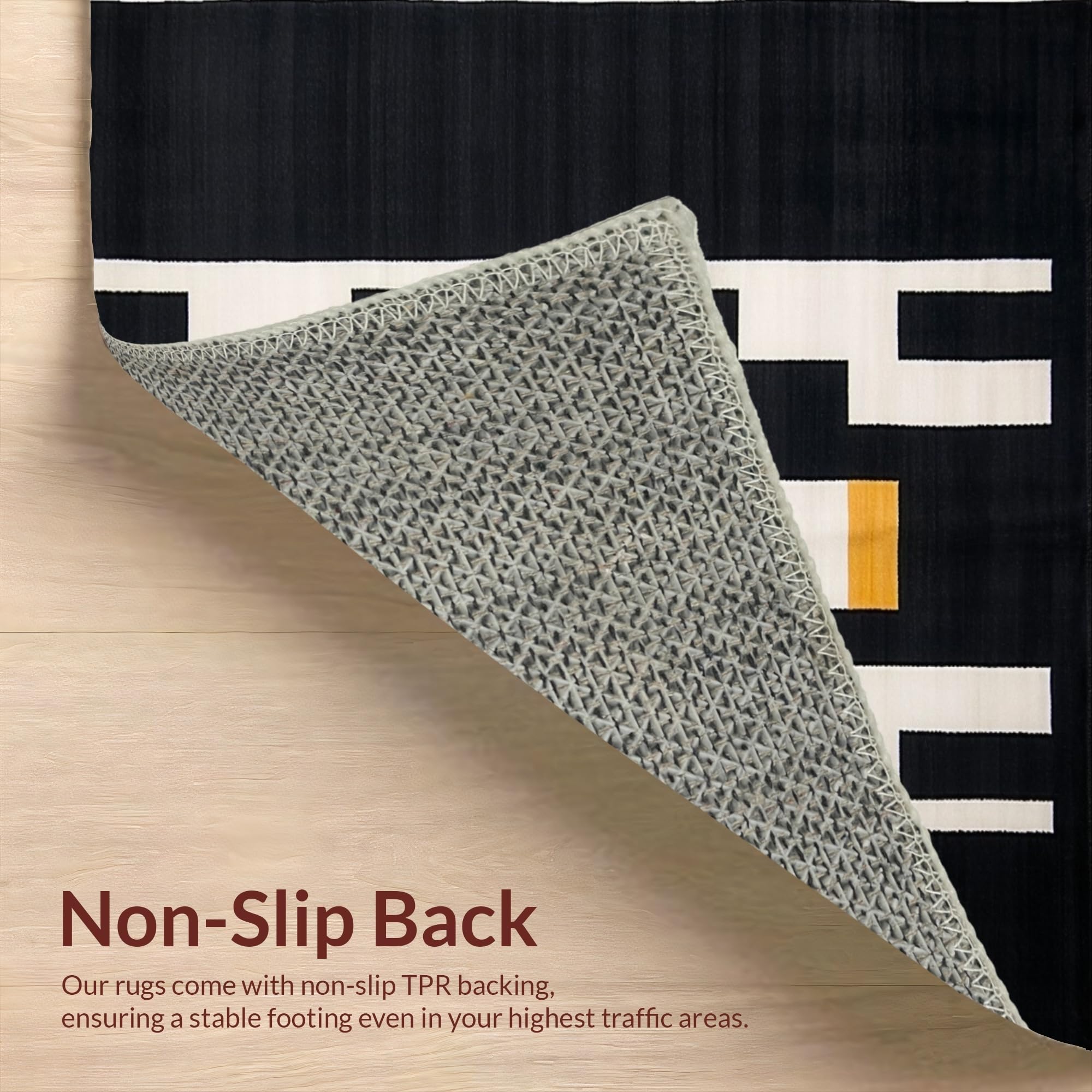 Ultra Soft Area Rug, Non Slip, Stain Resistant, Washable Area Rugs for Living Room, Bedroom, Distinctive Linear Abstract Pattern(Black) Overview: