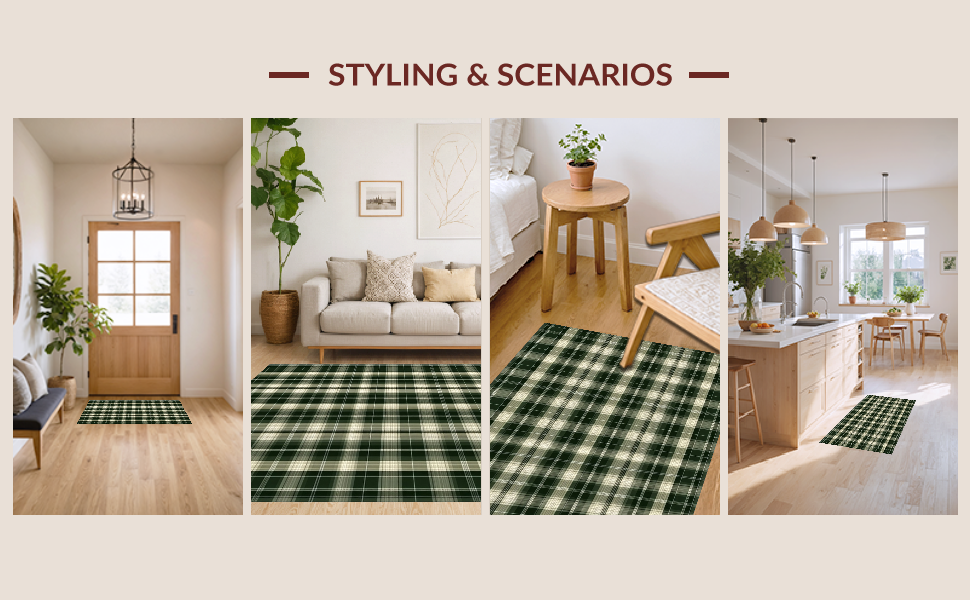 Ultra Soft Area Rug, Non Slip, Stain Resistant, Washable Area Rugs for Living Room, Bedroom, Distinctive Olive Geometry Designs(Black) Overview:
