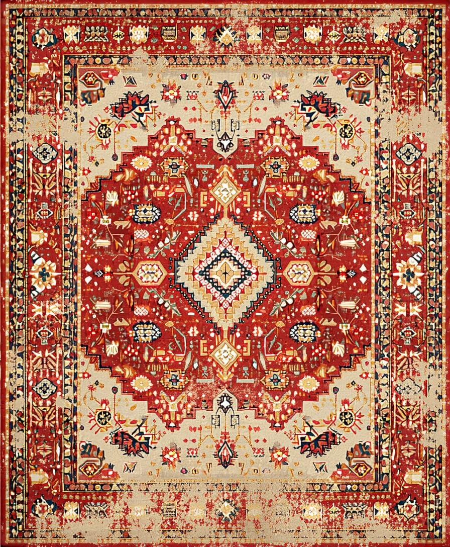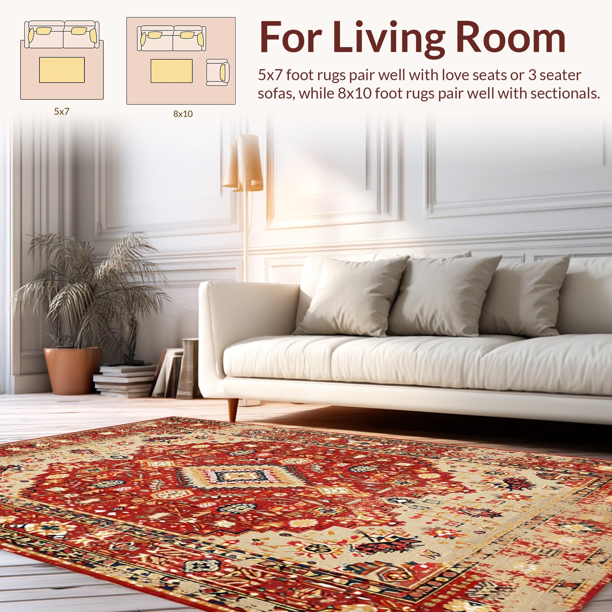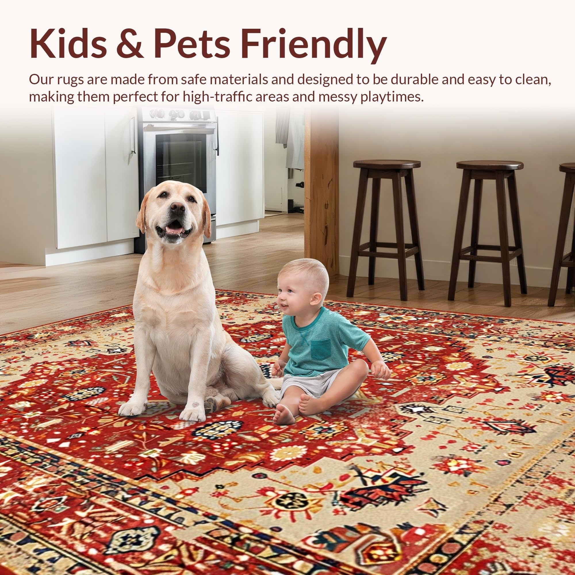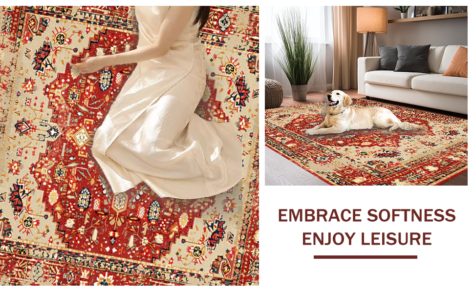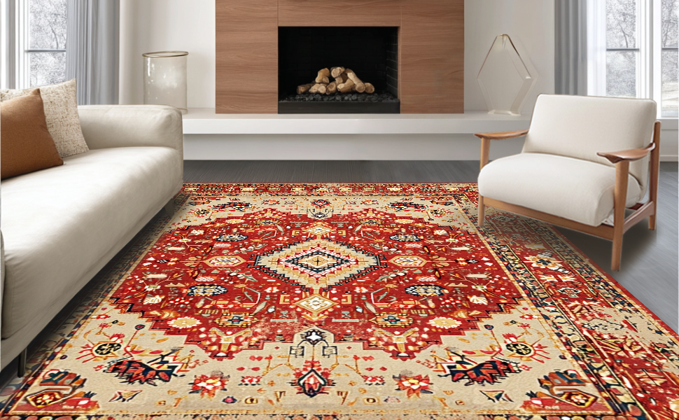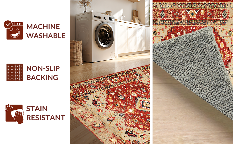 Ultra Soft Area Rug, Non Slip, Stain Resistant, Washable Area Rugs for Living Room, Bedroom, Distressed Abstract Colorful Design(Red) Overview: