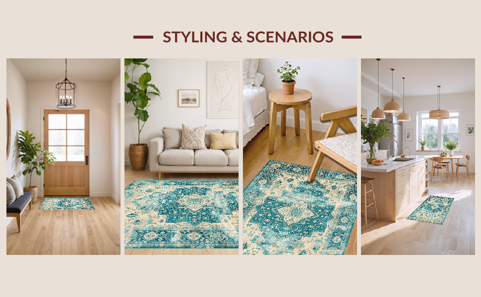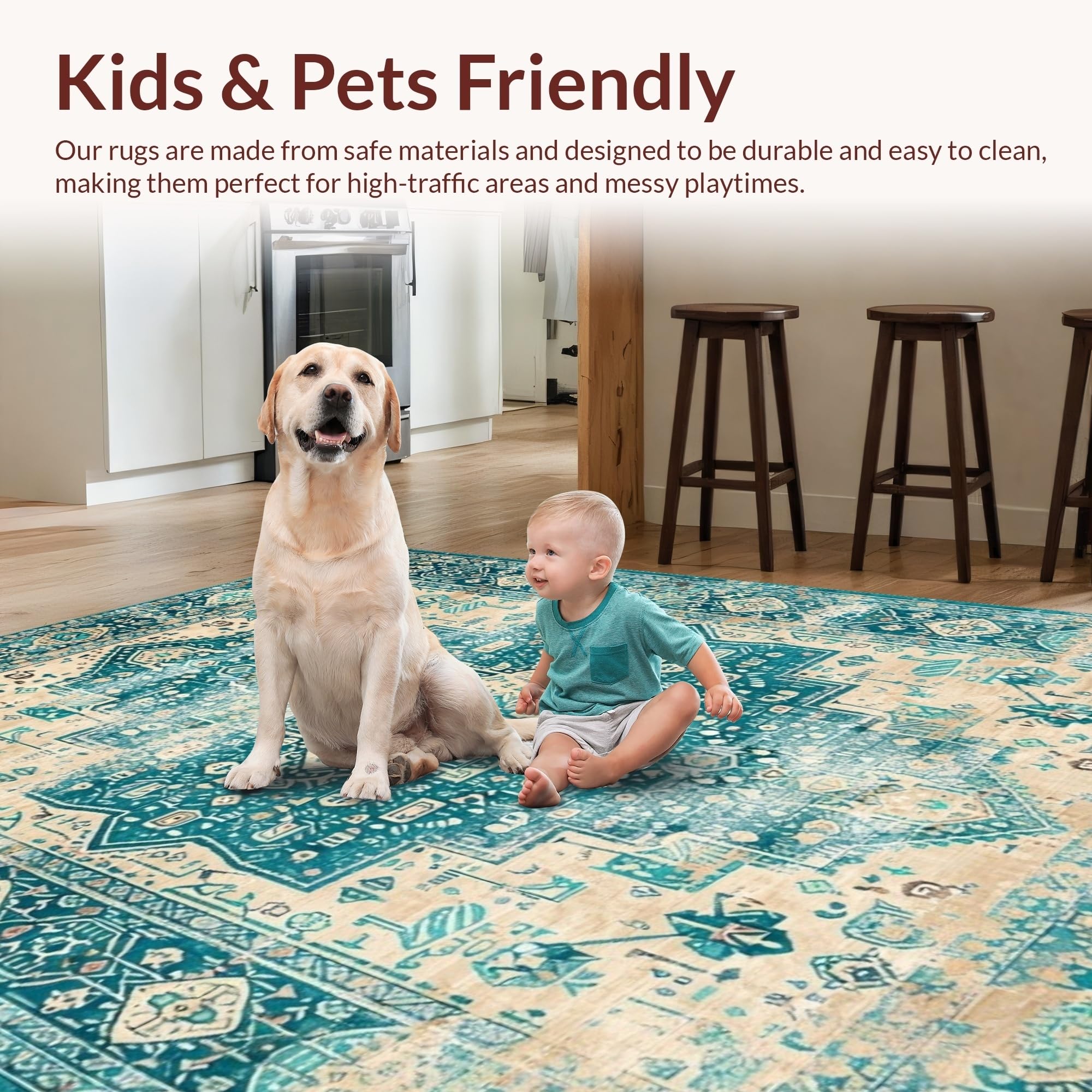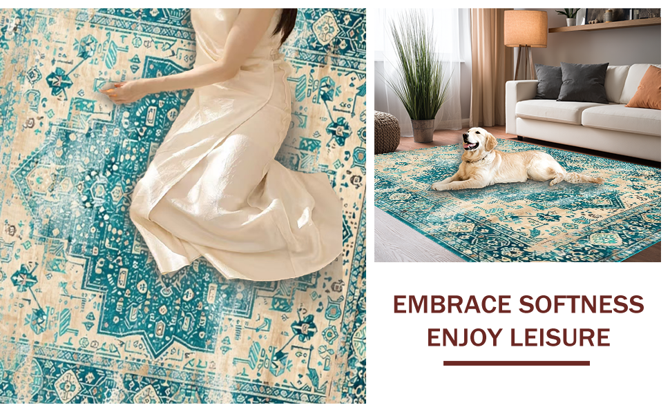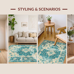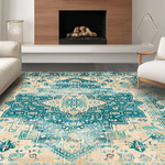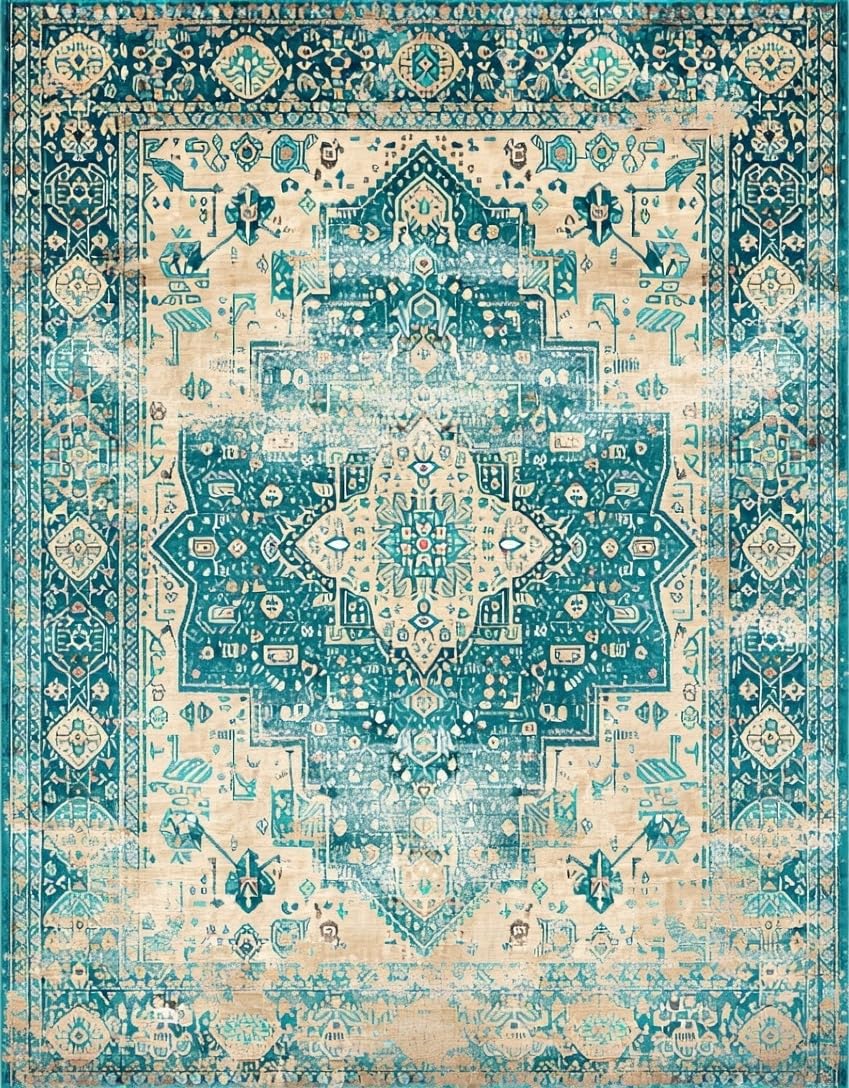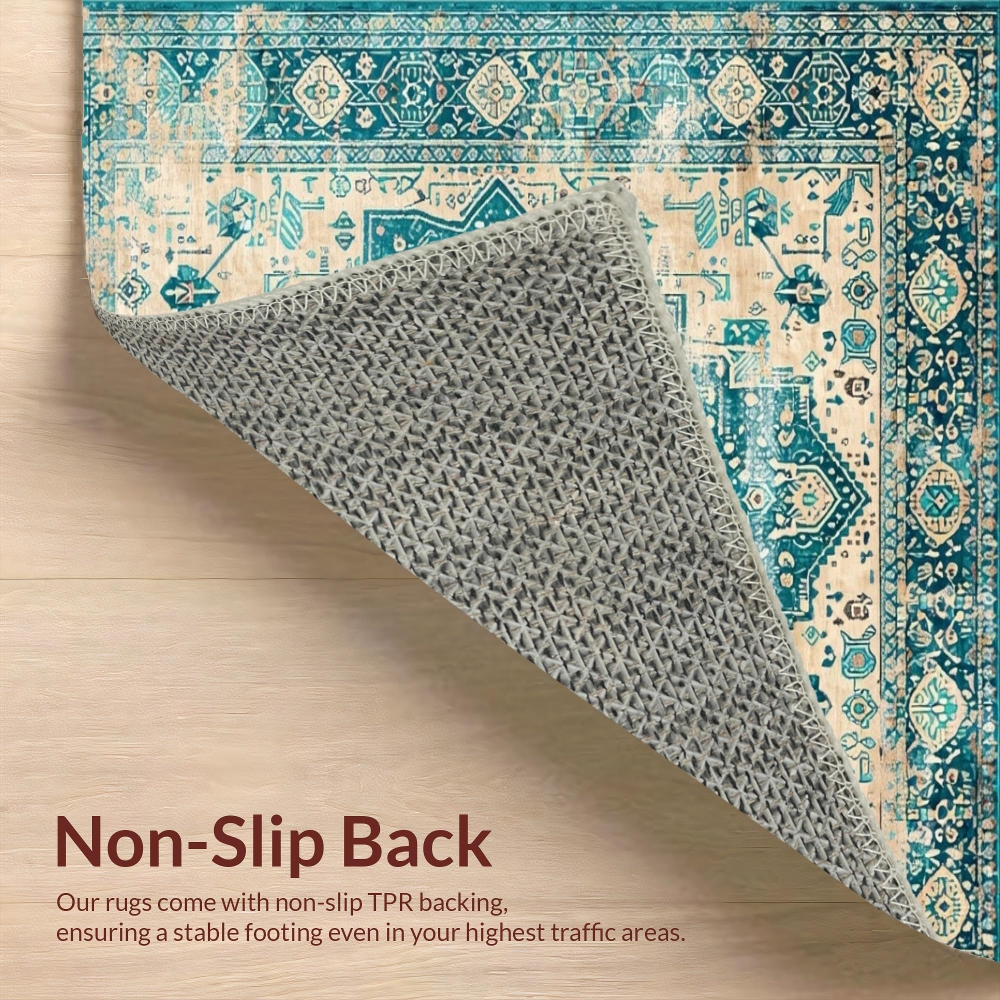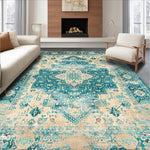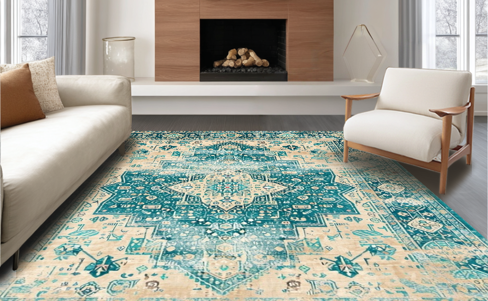 Ultra Soft Area Rug, Non Slip, Stain Resistant, Washable Area Rugs for Living Room, Bedroom, Distressed Aqua Geometric Elegance(Blue) Overview:
