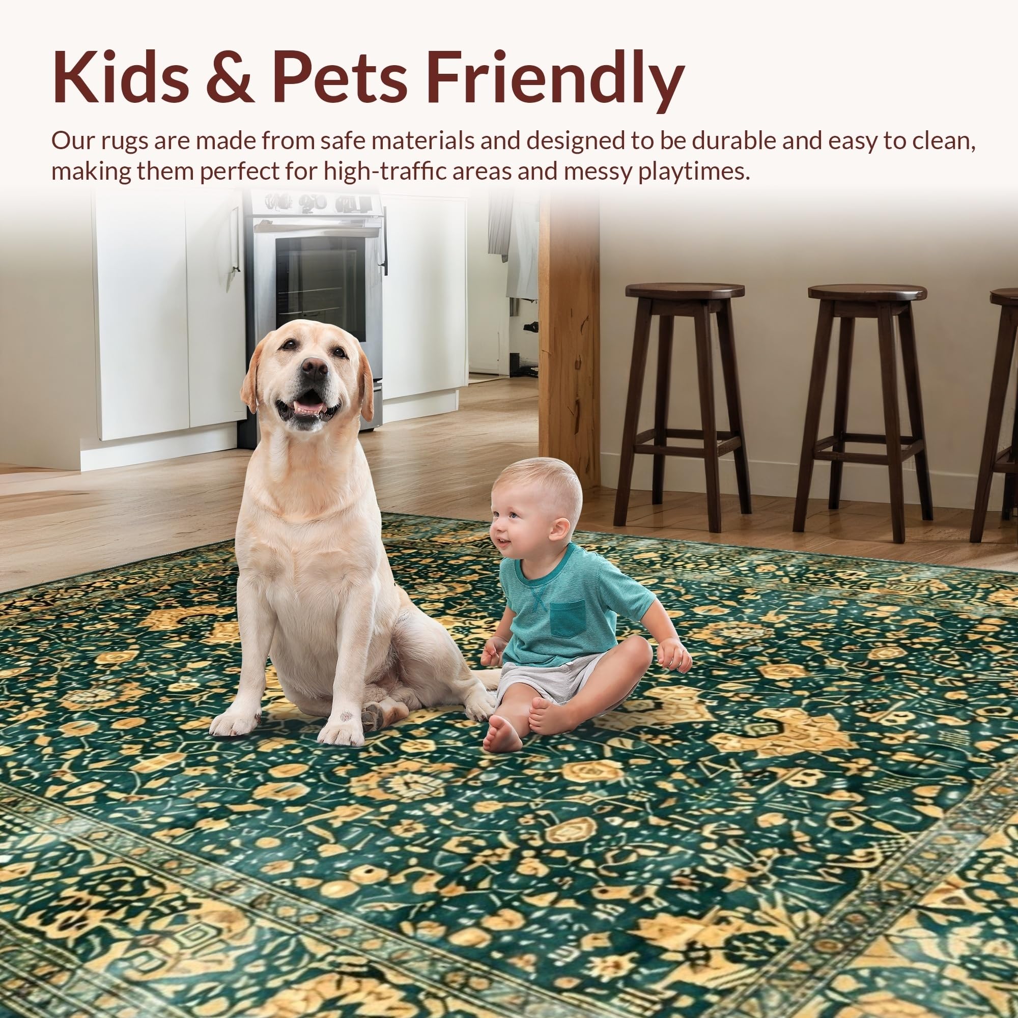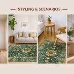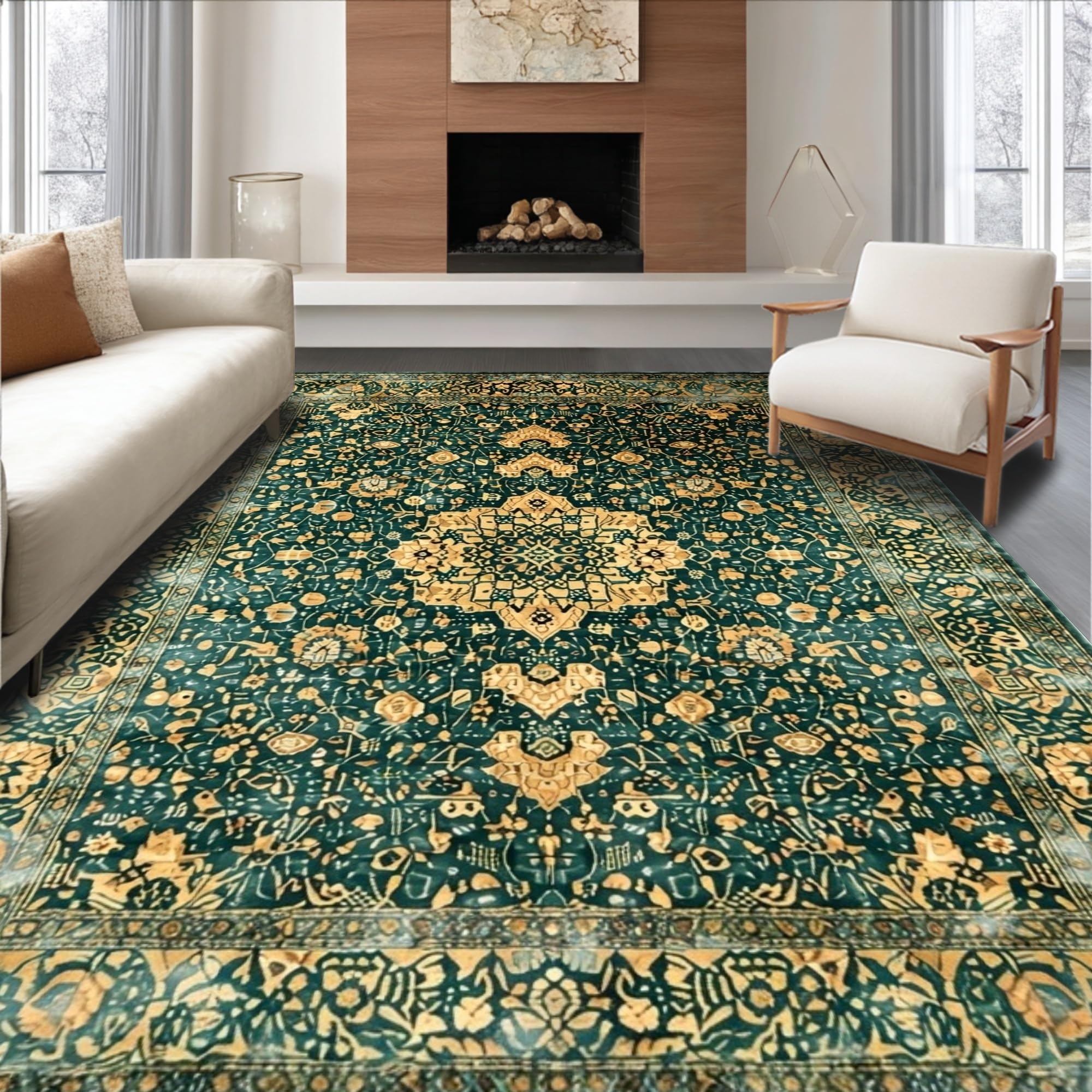 Ultra Soft Area Rug, Non Slip, Stain Resistant, Washable Area Rugs for Living Room, Bedroom, Distressed Earthy Medallion Aesthetic(Blue) Overview: