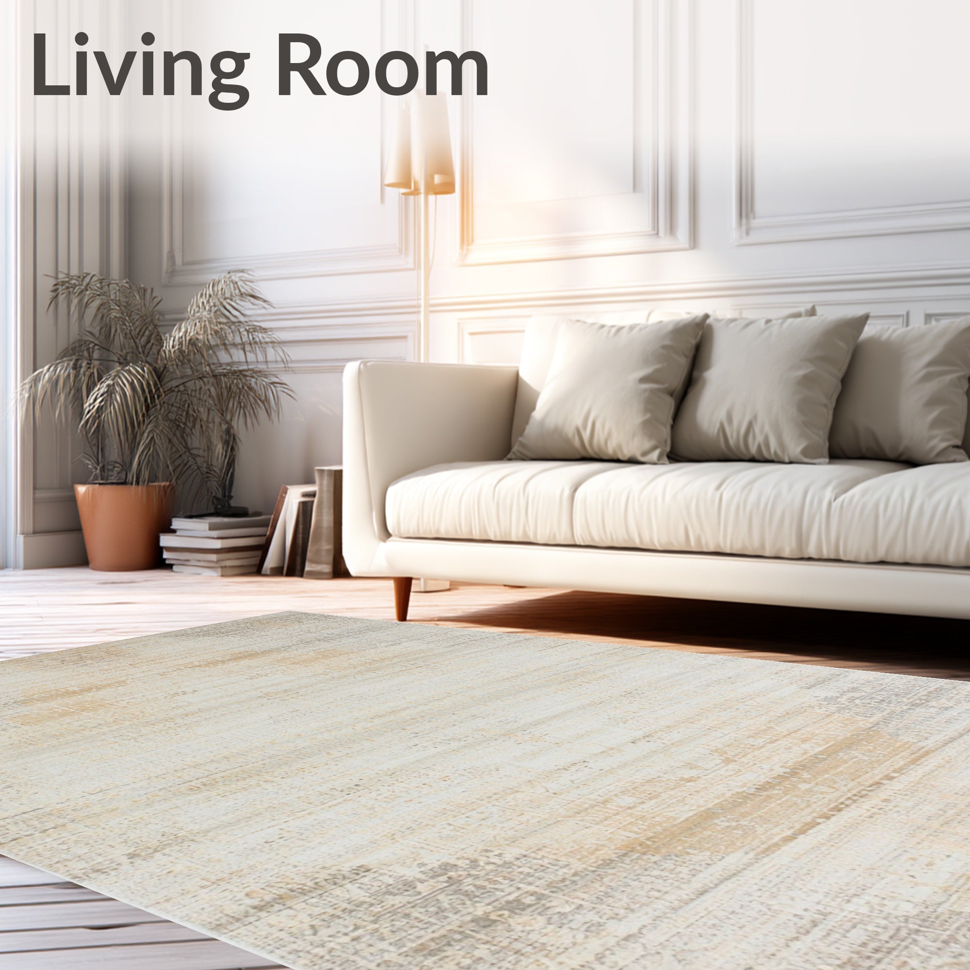 Ultra Soft Area Rug, Non Slip, Stain Resistant, Washable Area Rugs for Living Room, Bedroom, Distressed Floor with Retro Accent and Low Pile in Subtle Beige(Beige) Overview: