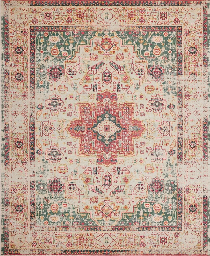 Distressed Global Area Easy Clean Printed Design(Ivory)