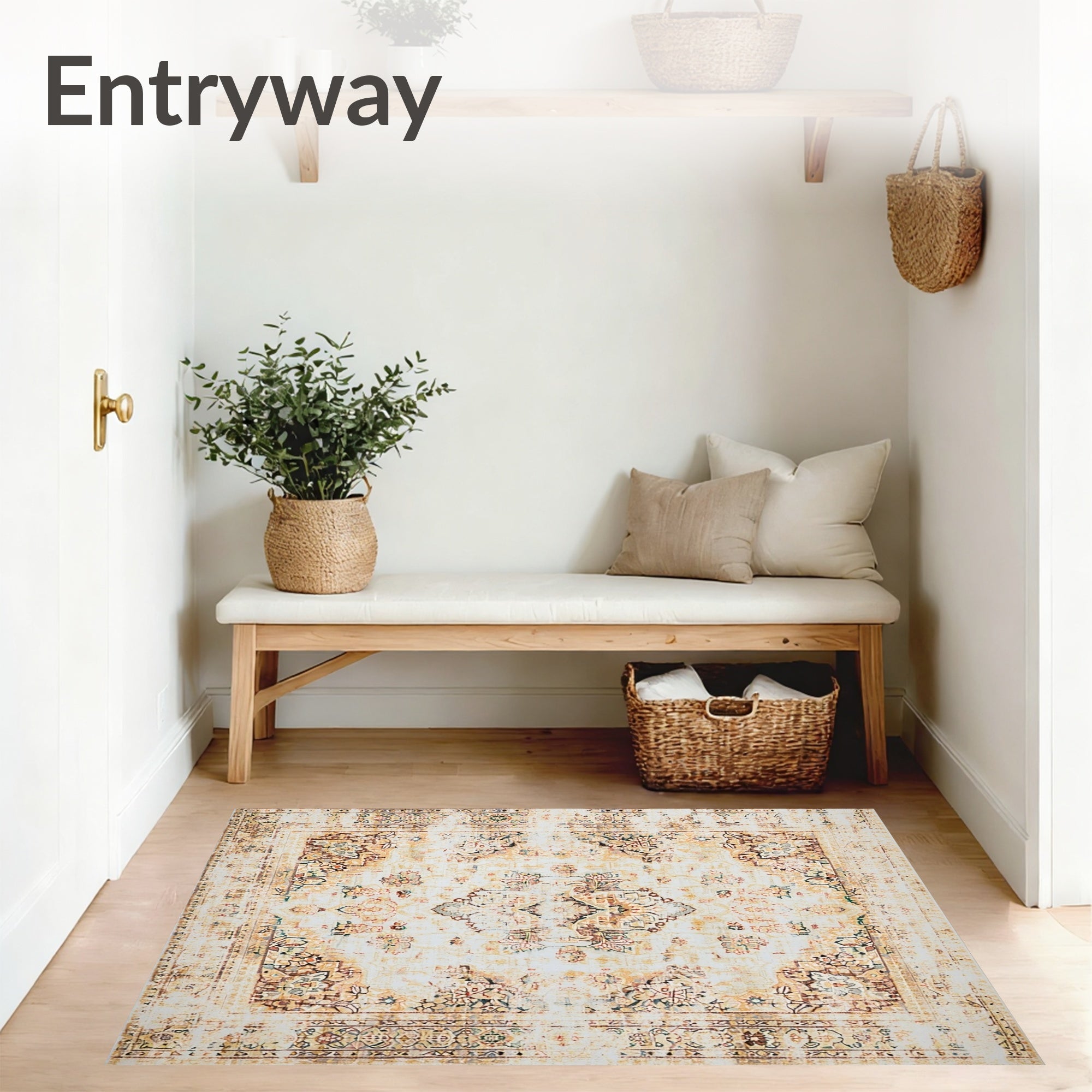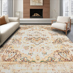 Ultra Soft Area Rug, Non Slip, Stain Resistant, Washable Area Rugs for Living Room, Bedroom, Distressed Medallion Area Beige & Brown Retro Floor(Beige) Overview: