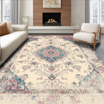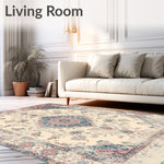 Ultra Soft Area Rug, Non Slip, Stain Resistant, Washable Area Rugs for Living Room, Bedroom, Distressed Medallion Area with Vintage Inspired Scrollwork and Faded Motifs(Beige) Overview: