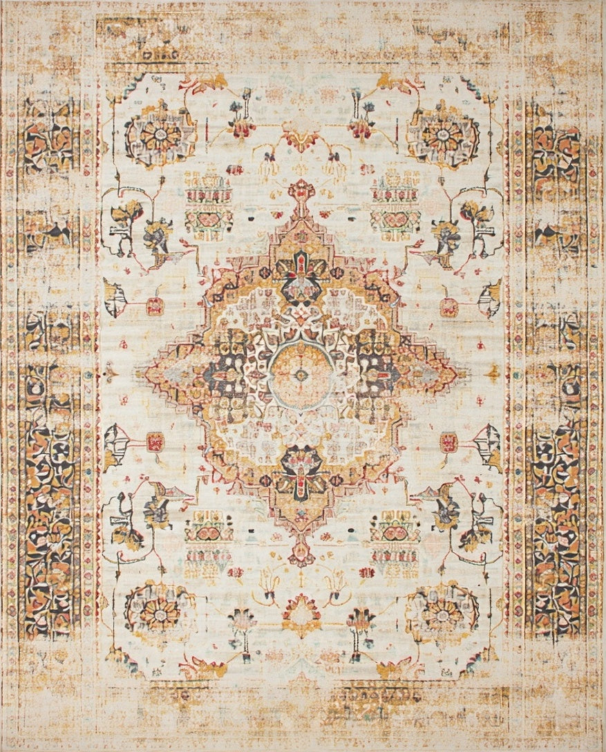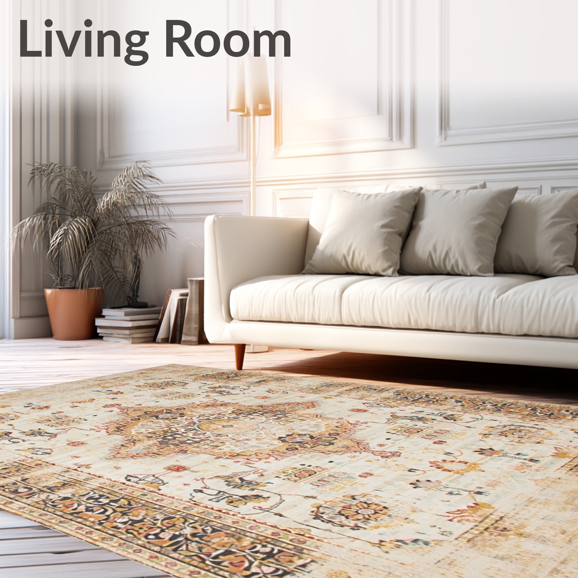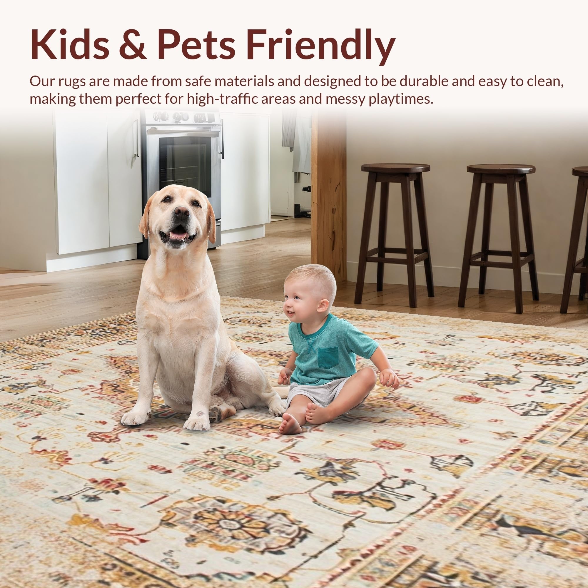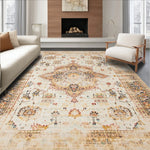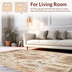 Ultra Soft Area Rug, Non Slip, Stain Resistant, Washable Area Rugs for Living Room, Bedroom, Distressed Medallion Geometric Area With Vintage Floral Motif Accents(Beige) Overview: