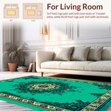 Ultra Soft Area Rug, Non Slip, Stain Resistant, Washable Area Rugs for Living Room, Bedroom, Distressed Medallion Non-Shedding(Green) Overview:
