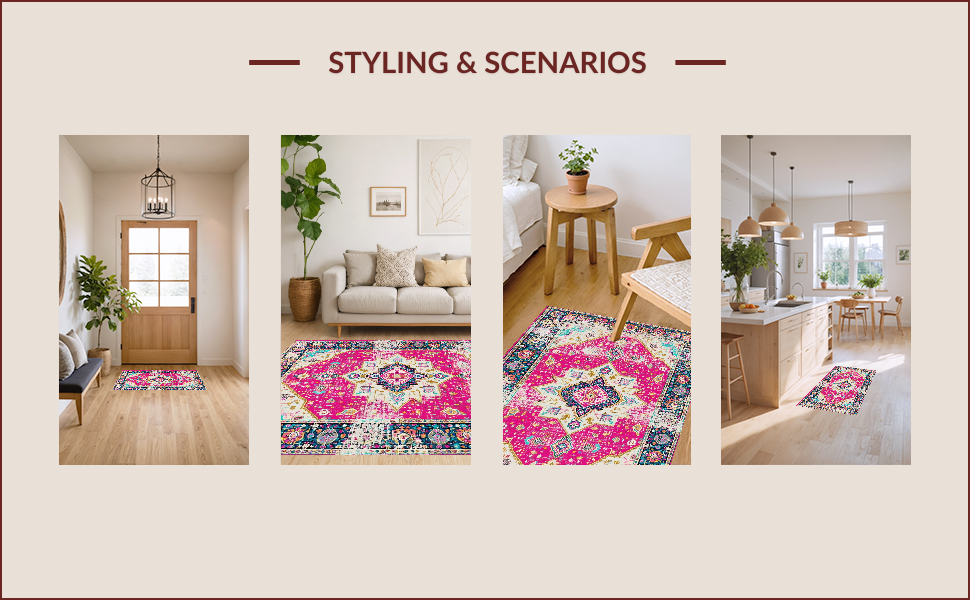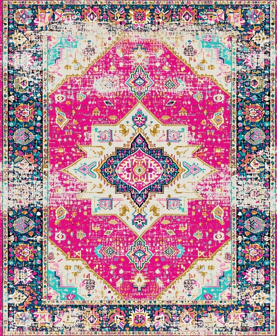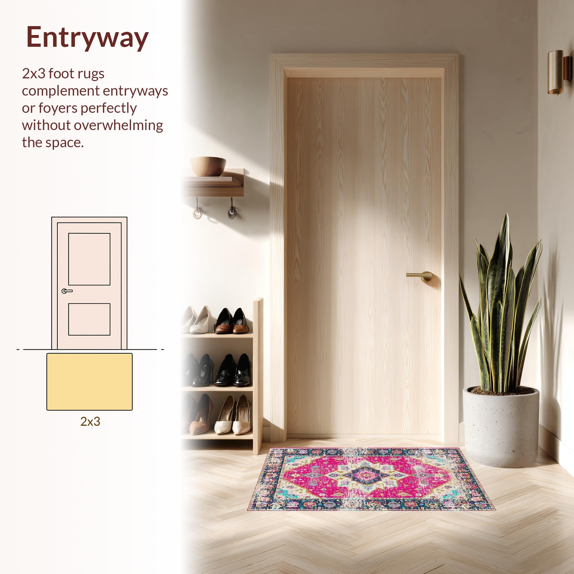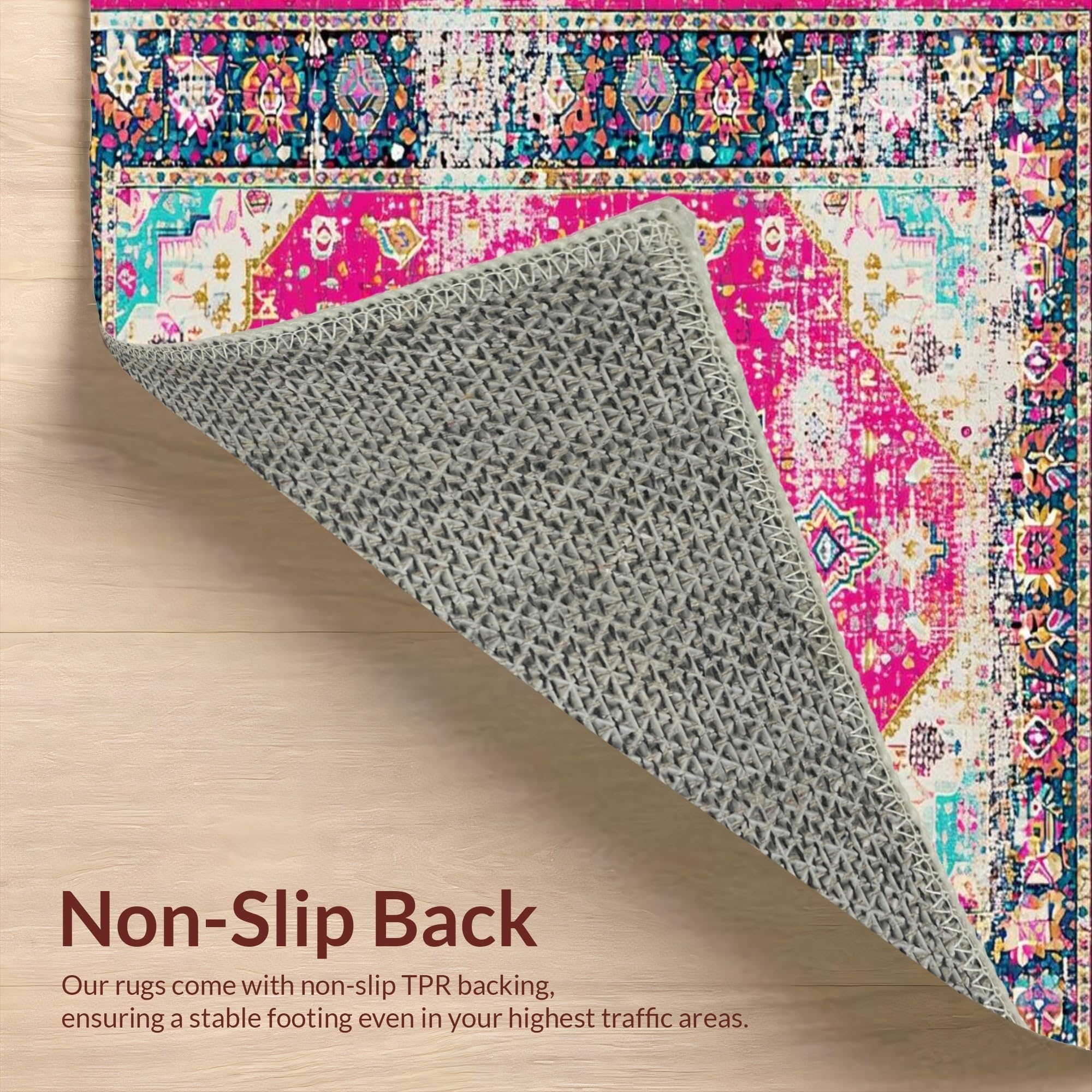Ultra Soft Area Rug, Non Slip, Stain Resistant, Washable Area Rugs for Living Room, Bedroom, Distressed Pink Geometric Elegance(Pink) Overview: