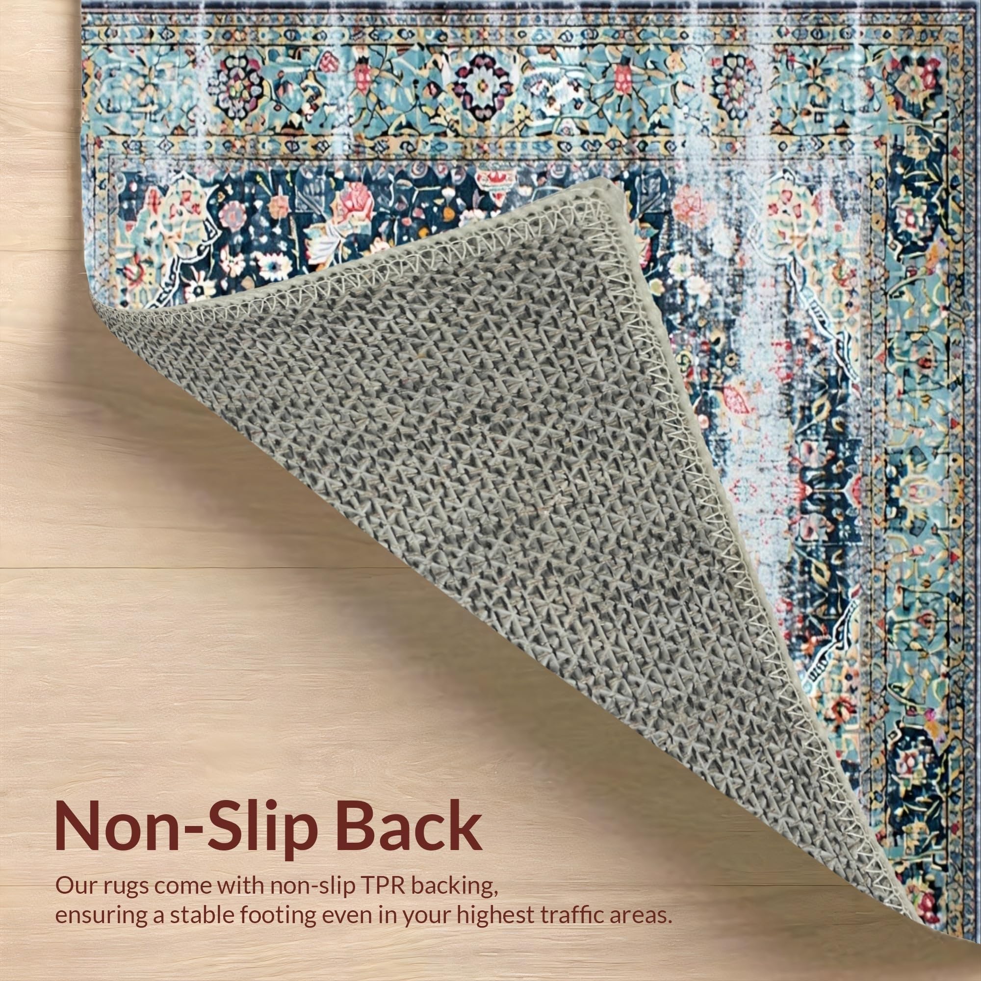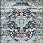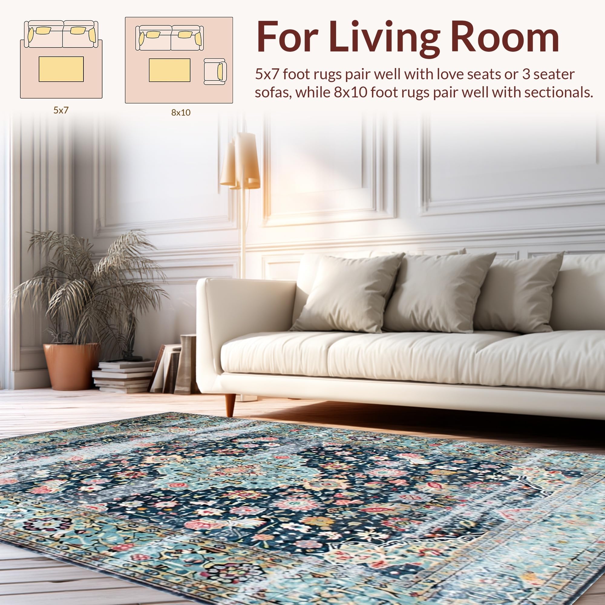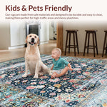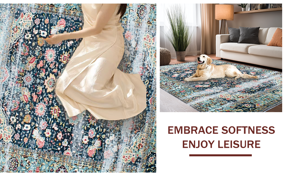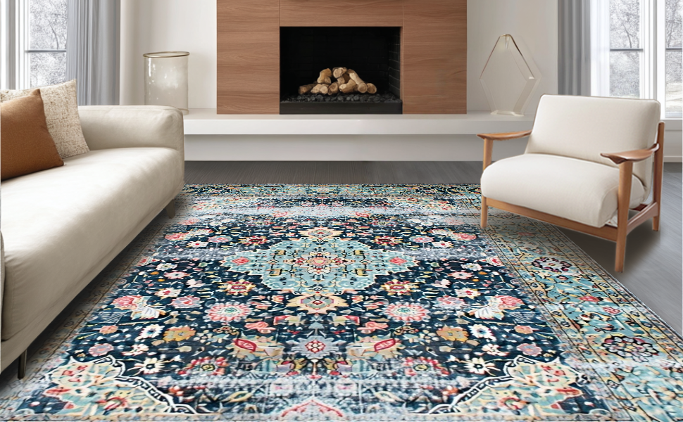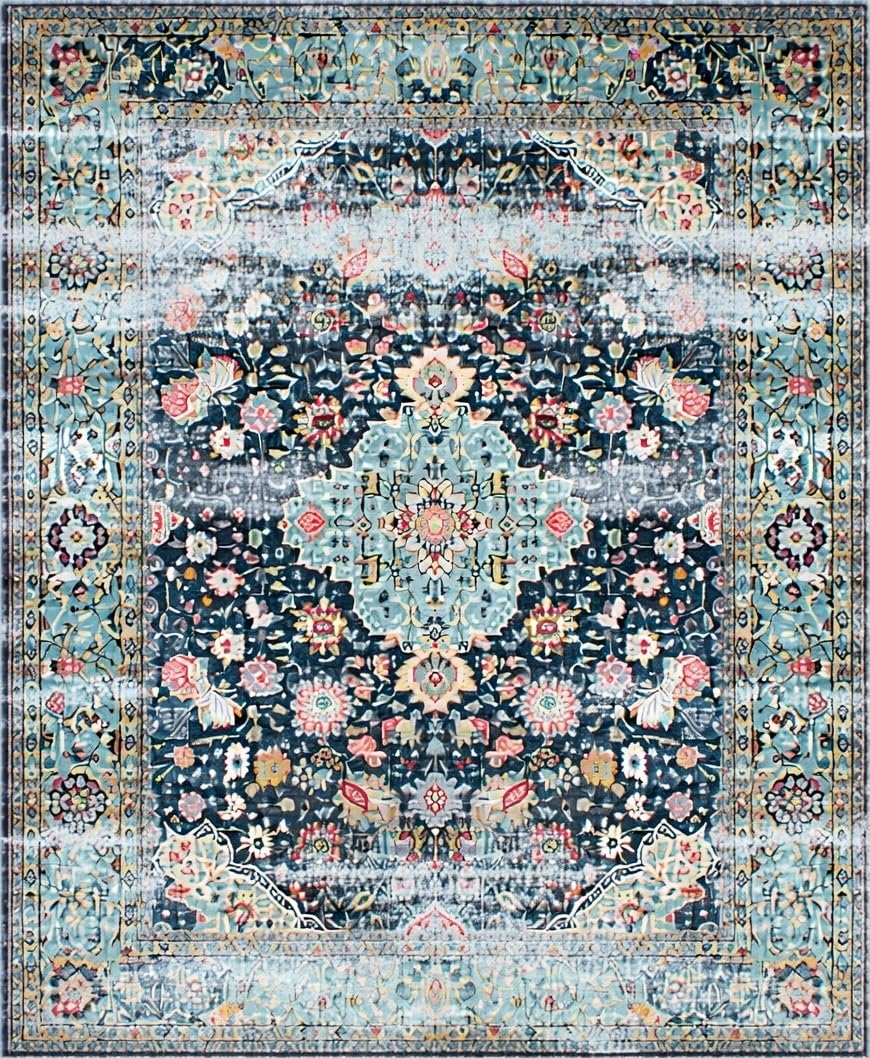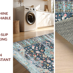 Ultra Soft Area Rug, Non Slip, Stain Resistant, Washable Area Rugs for Living Room, Bedroom, Distressed Retro Botanical Motif(Blue) Overview: