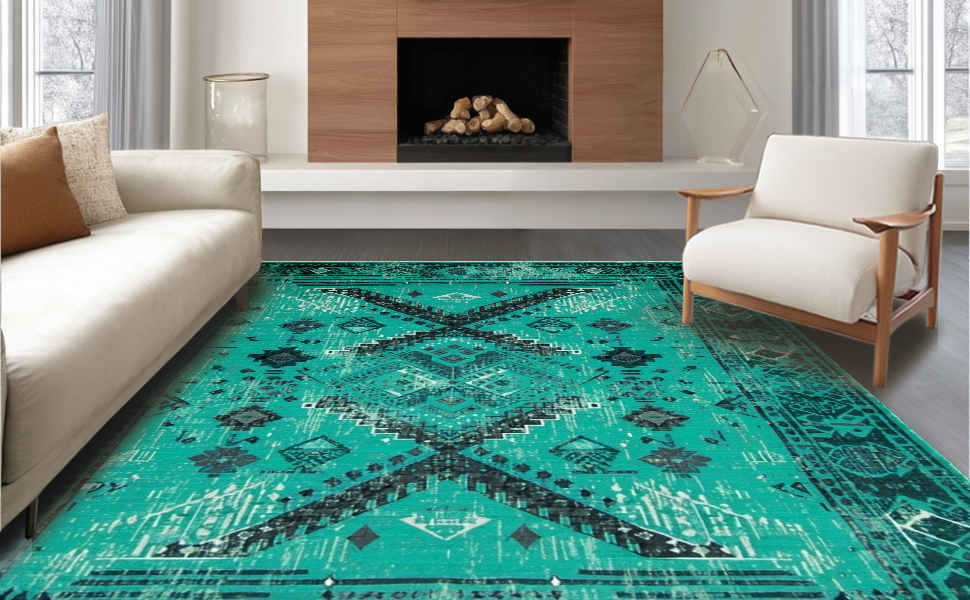 Ultra Soft Area Rug, Non Slip, Stain Resistant, Washable Area Rugs for Living Room, Bedroom, Distressed Rustic Gray Motif(Blue) Overview: