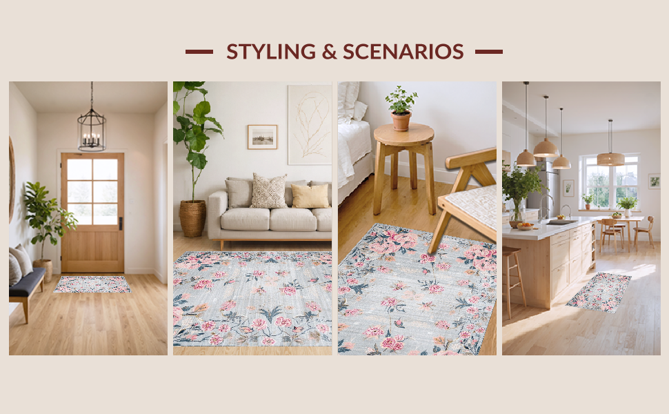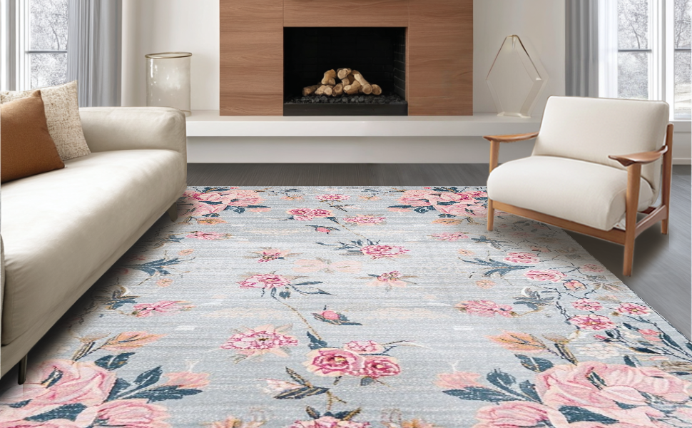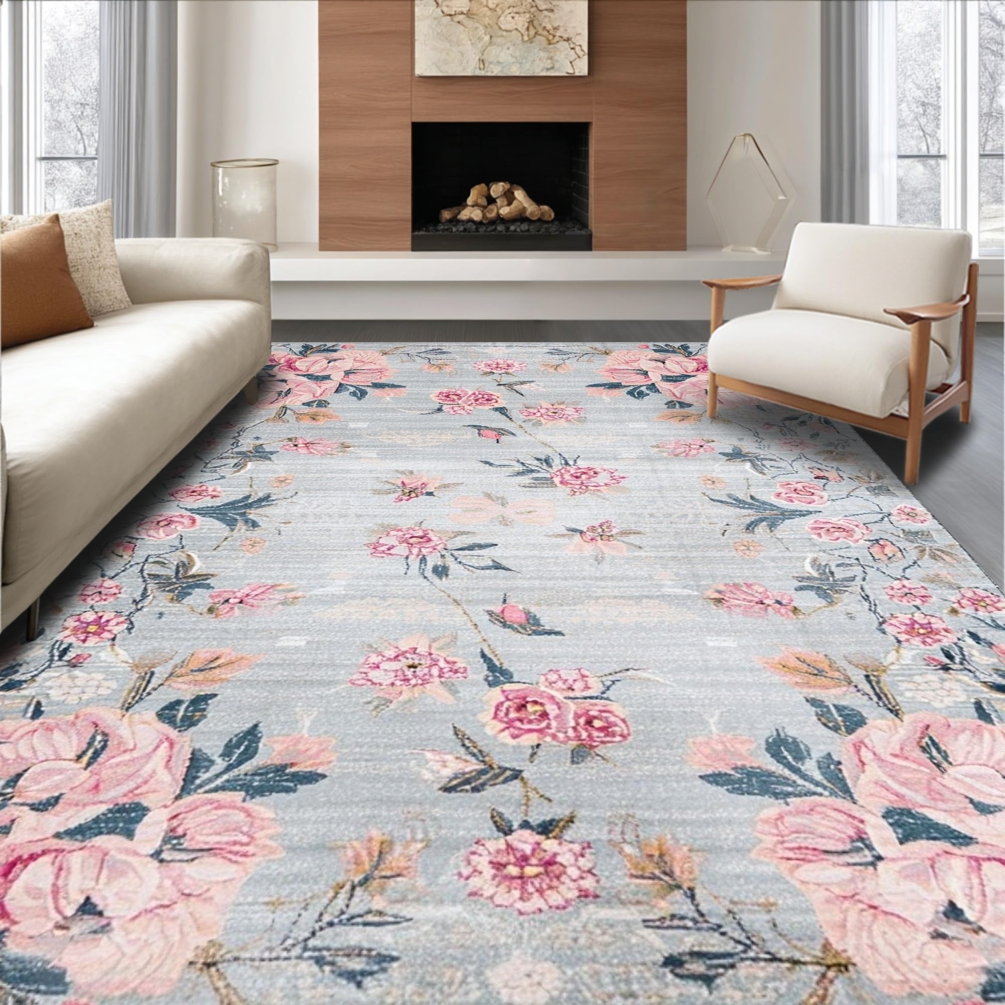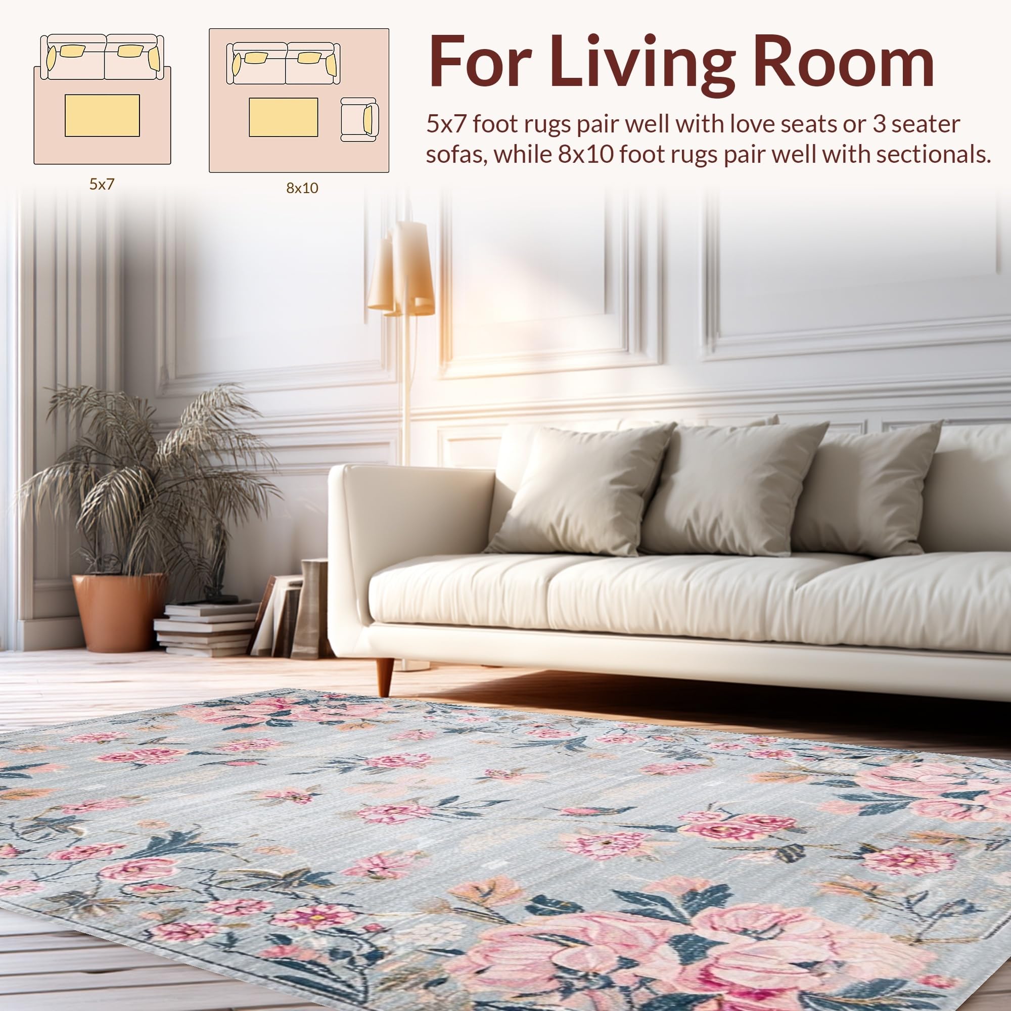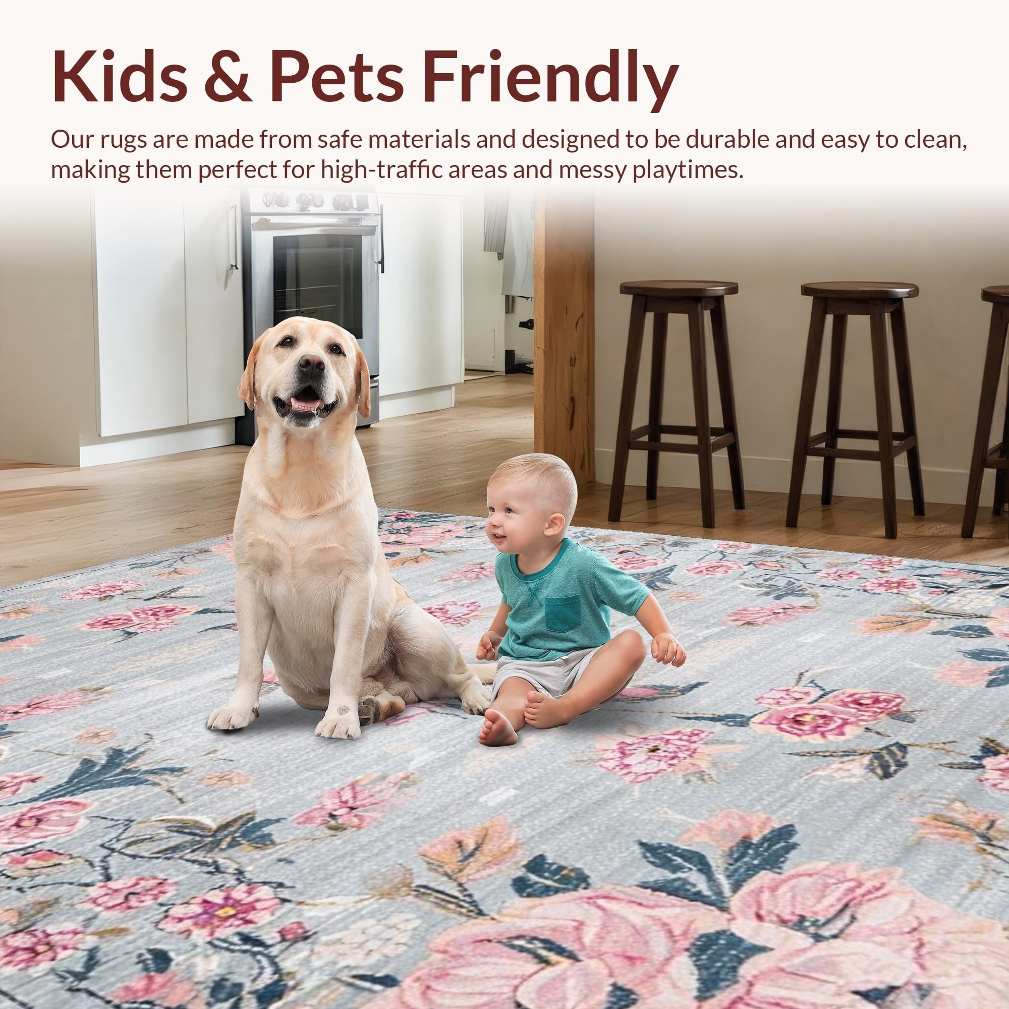 Ultra Soft Area Rug, Non Slip, Stain Resistant, Washable Area Rugs for Living Room, Bedroom, Distressed Soft Pastel Pattern(Gray) Overview: