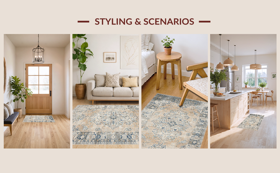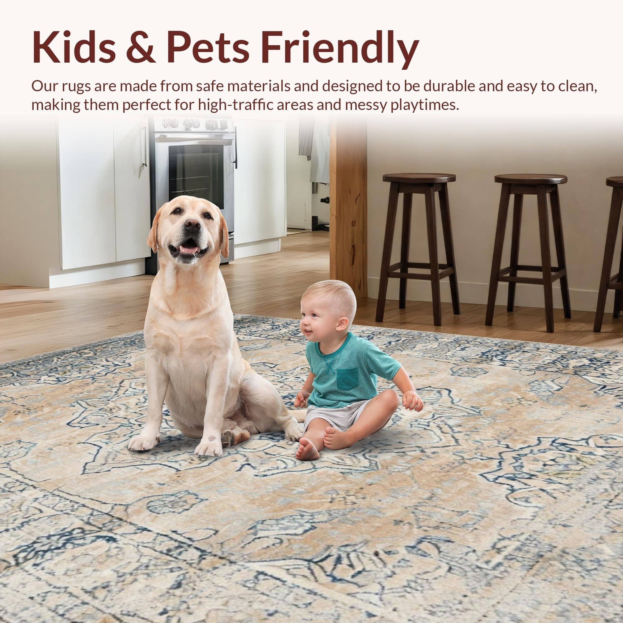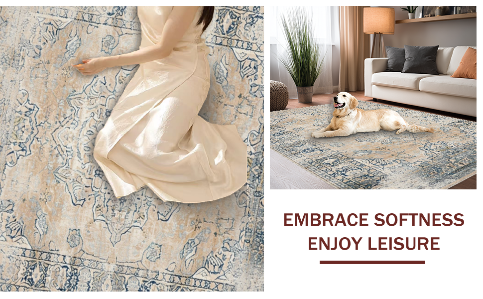 Ultra Soft Area Rug, Non Slip, Stain Resistant, Washable Area Rugs for Living Room, Bedroom, Distressed Taupe Rustic Charm(Beige) Overview: